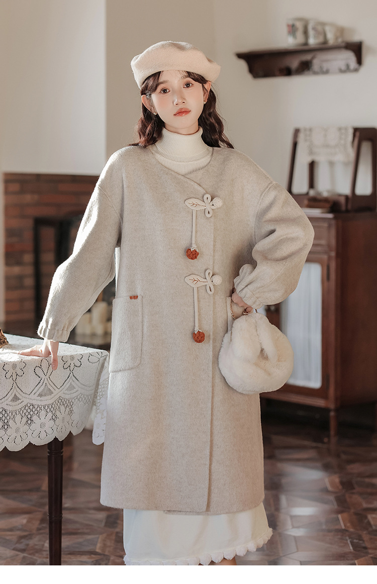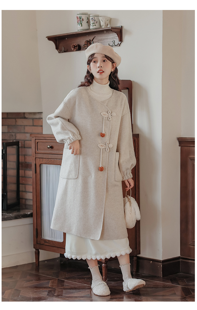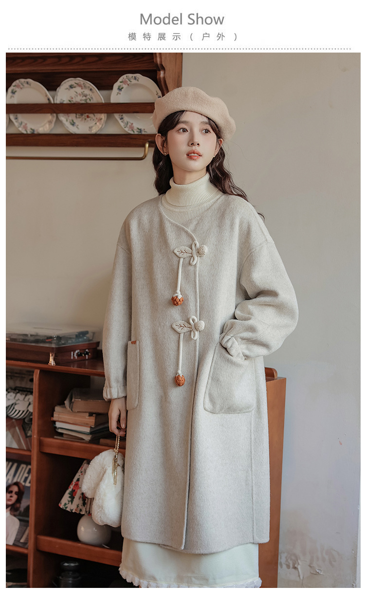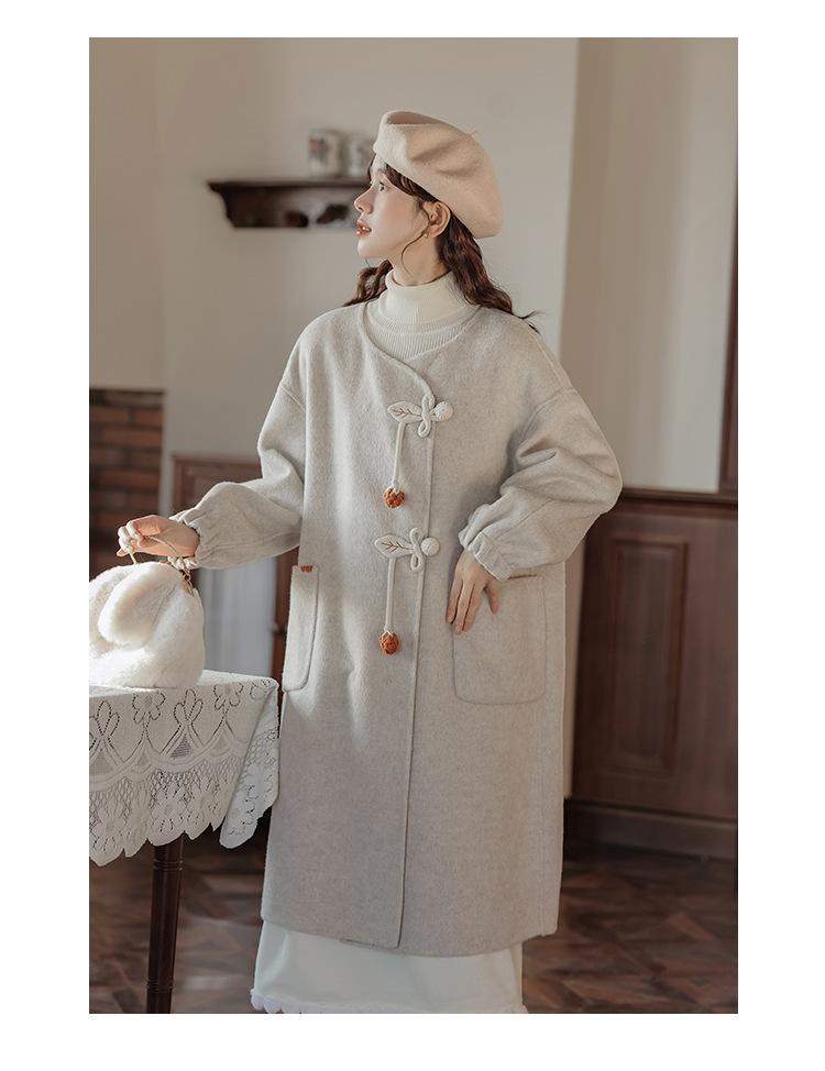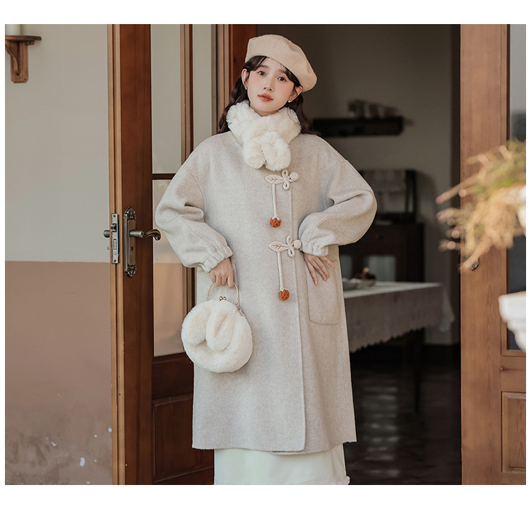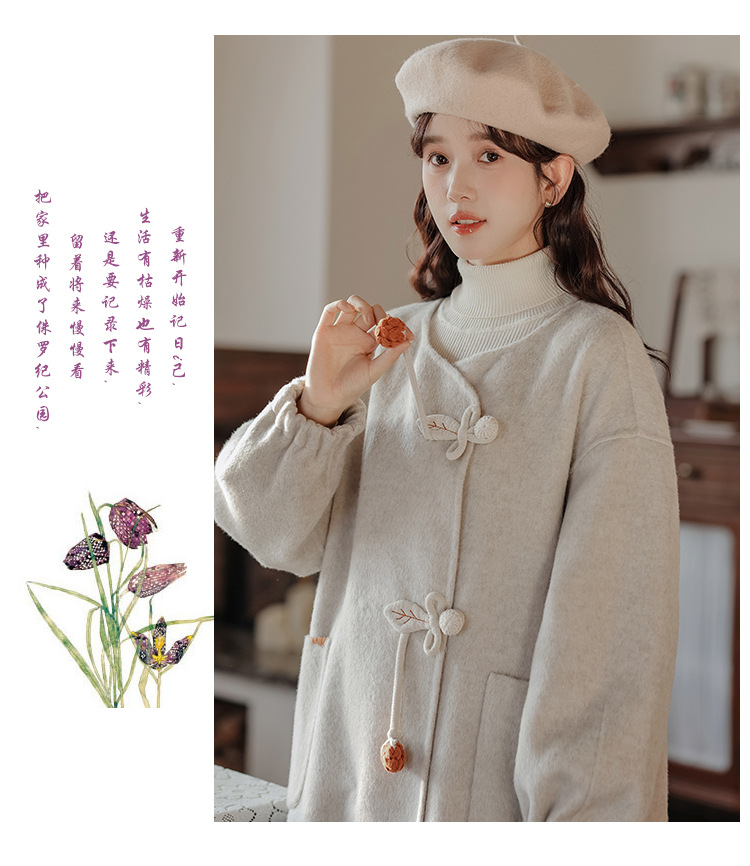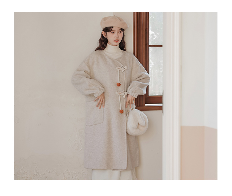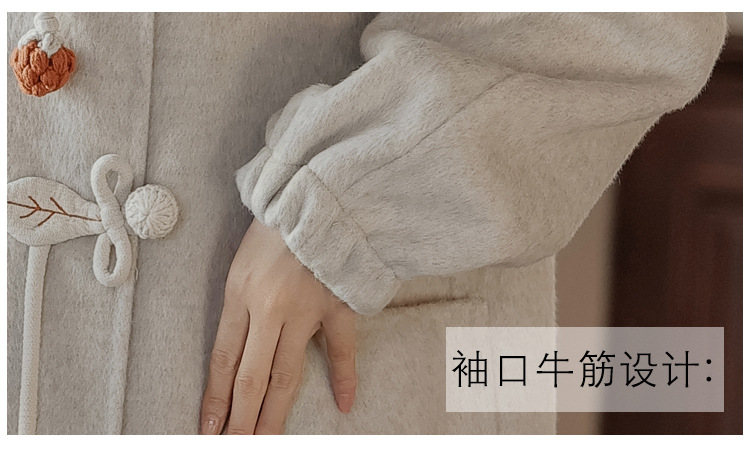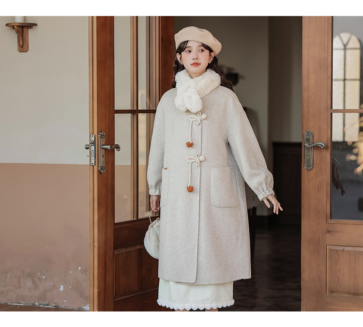 새로운 중국 스타일 국가 스타일 모직 코트 여성의 2024 겨울 부자 가족 딸 골드 디자인 꽃 버드 펜던트 중간 길이 코트스토어 가기