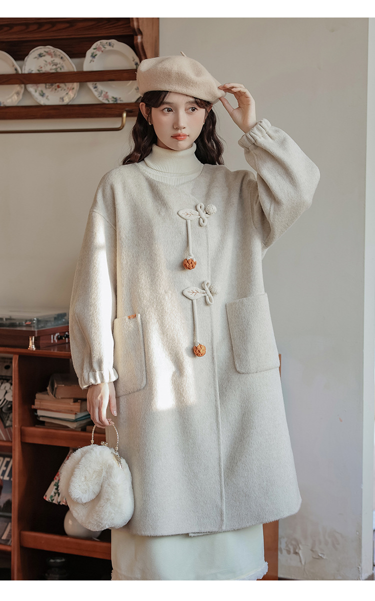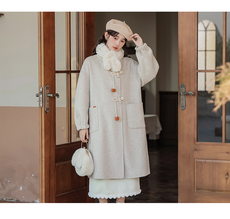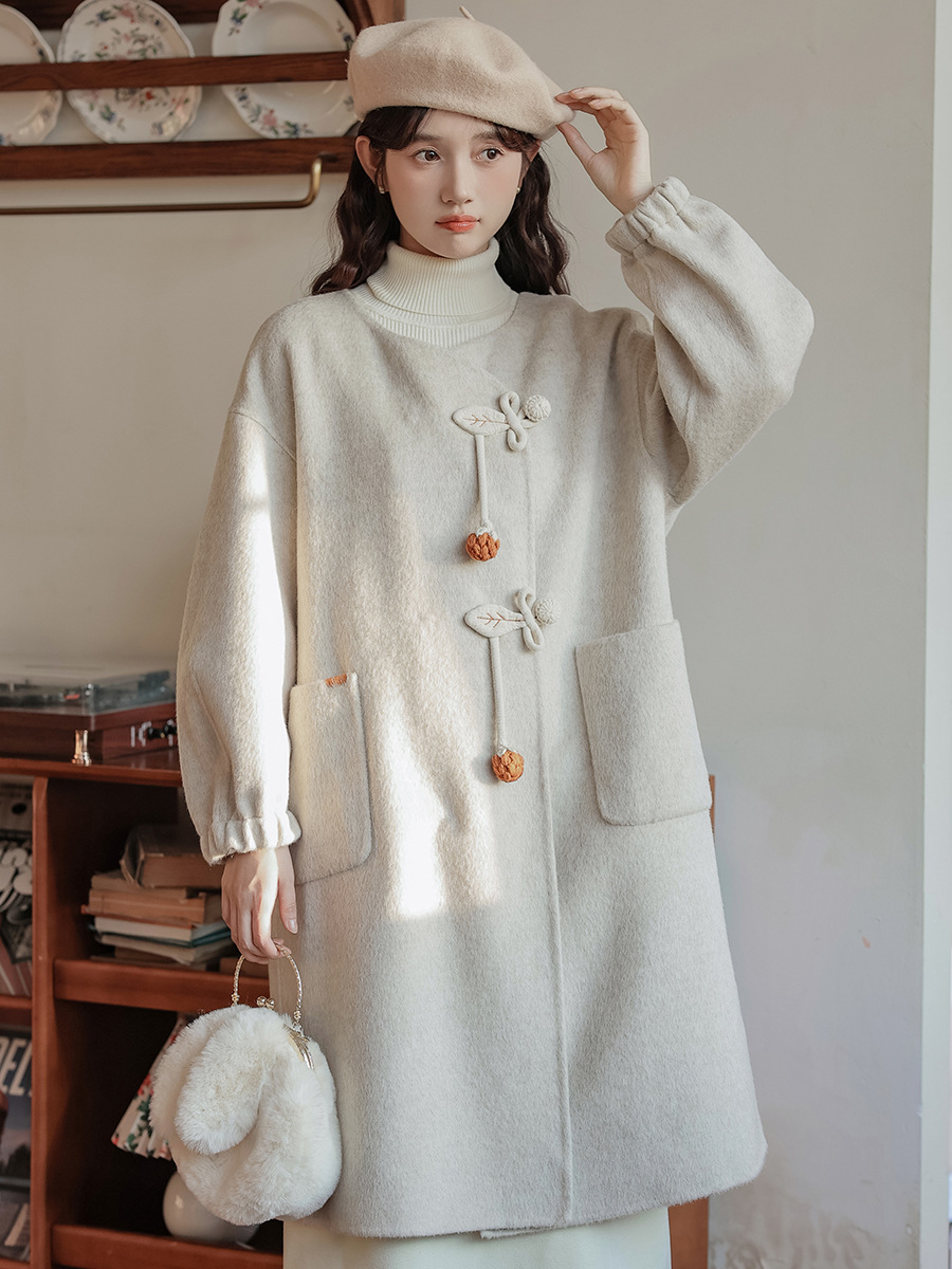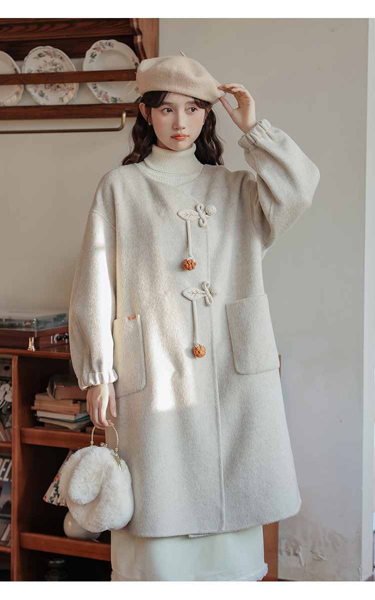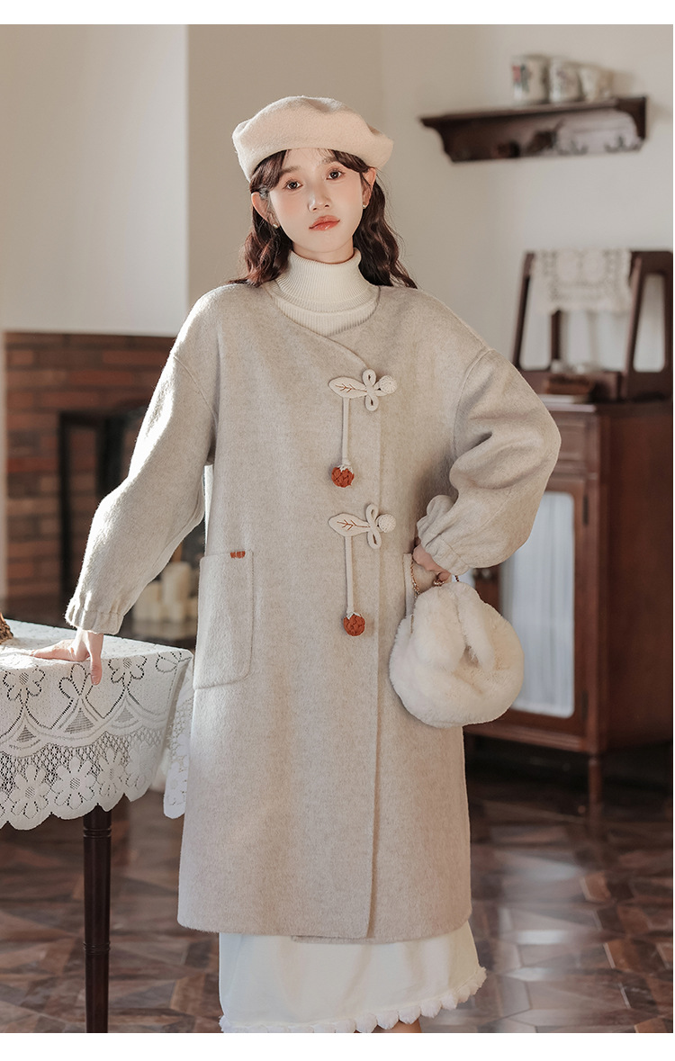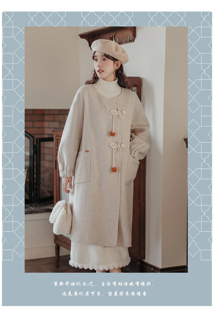 새로운 중국 스타일 국가 스타일 모직 코트 여성의 2024 겨울 부자 가족 딸 골드 디자인 꽃 버드 펜던트 중간 길이 코트스토어 가기