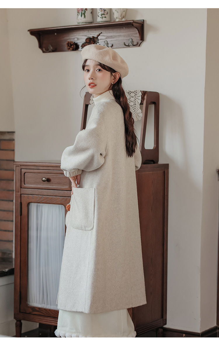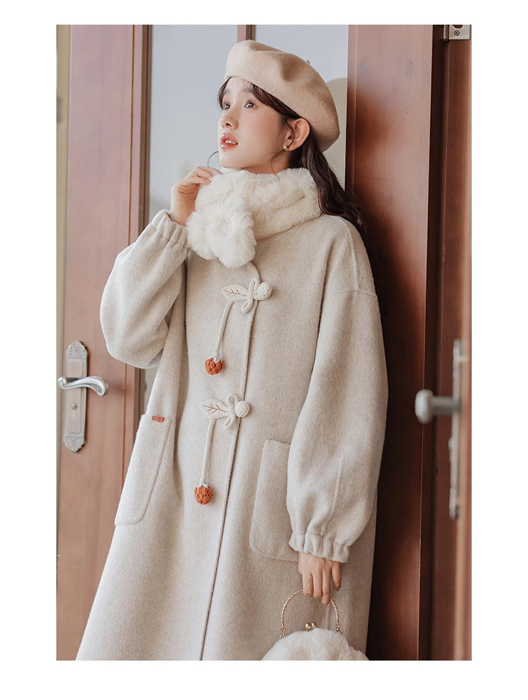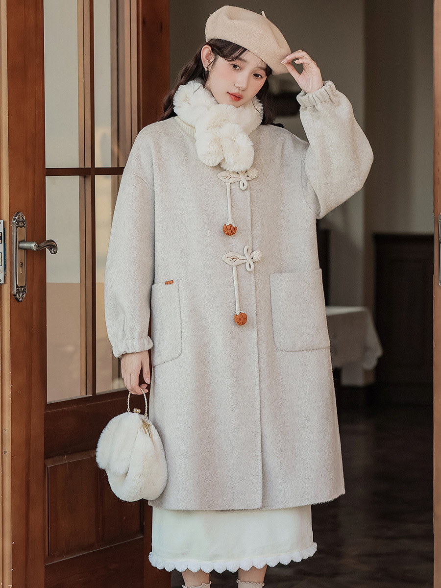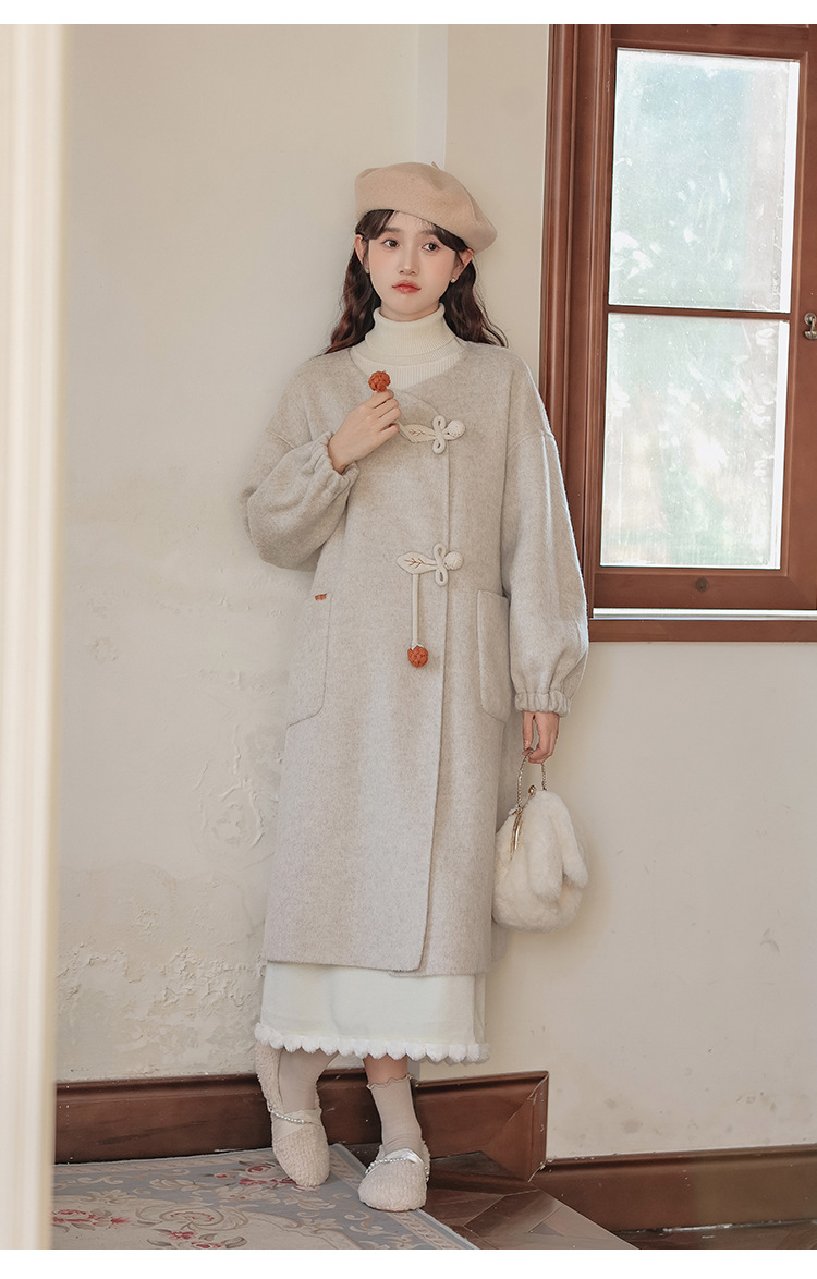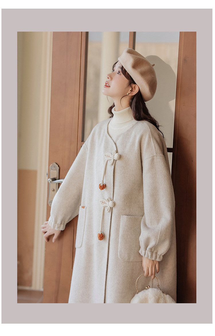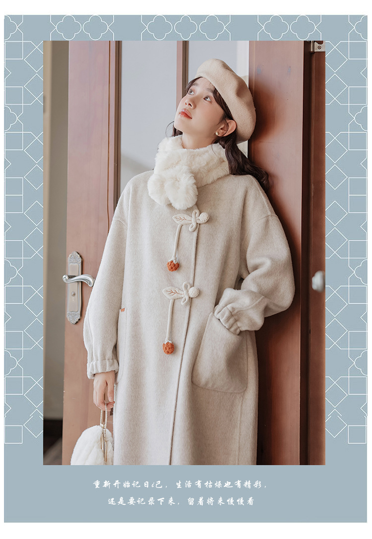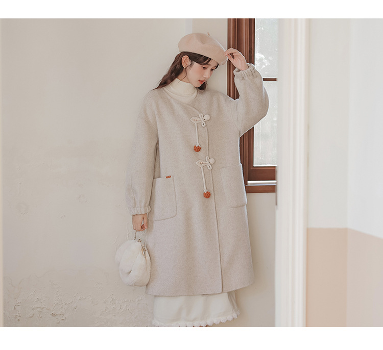 새로운 중국 스타일 국가 스타일 모직 코트 여성의 2024 겨울 부자 가족 딸 골드 디자인 꽃 버드 펜던트 중간 길이 코트스토어 가기