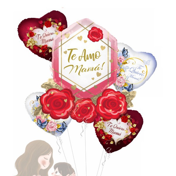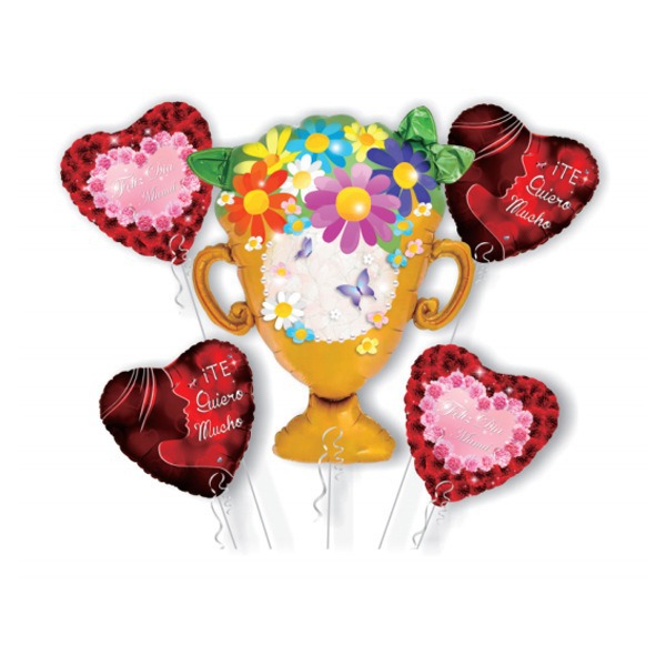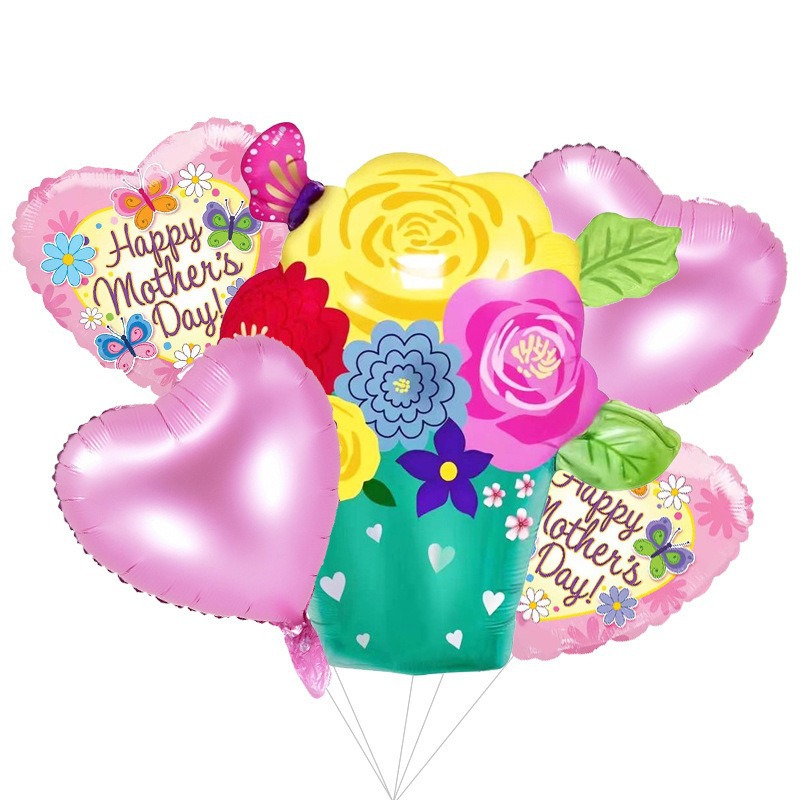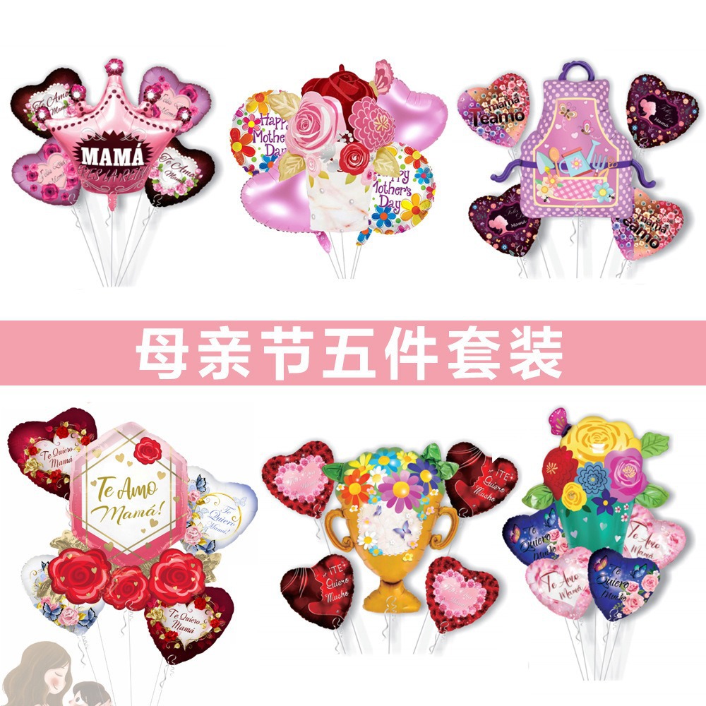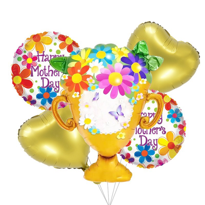 새로운 어머니의 날 다섯 조각 세트 꽃 바구니 화환 알루미늄 필름 알루미늄 호일 풍선 휴일 생일 축하 장식스토어 가기