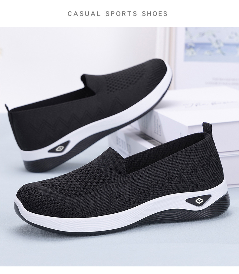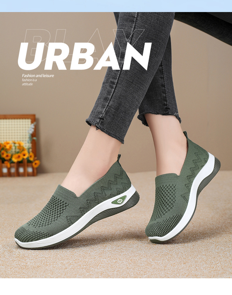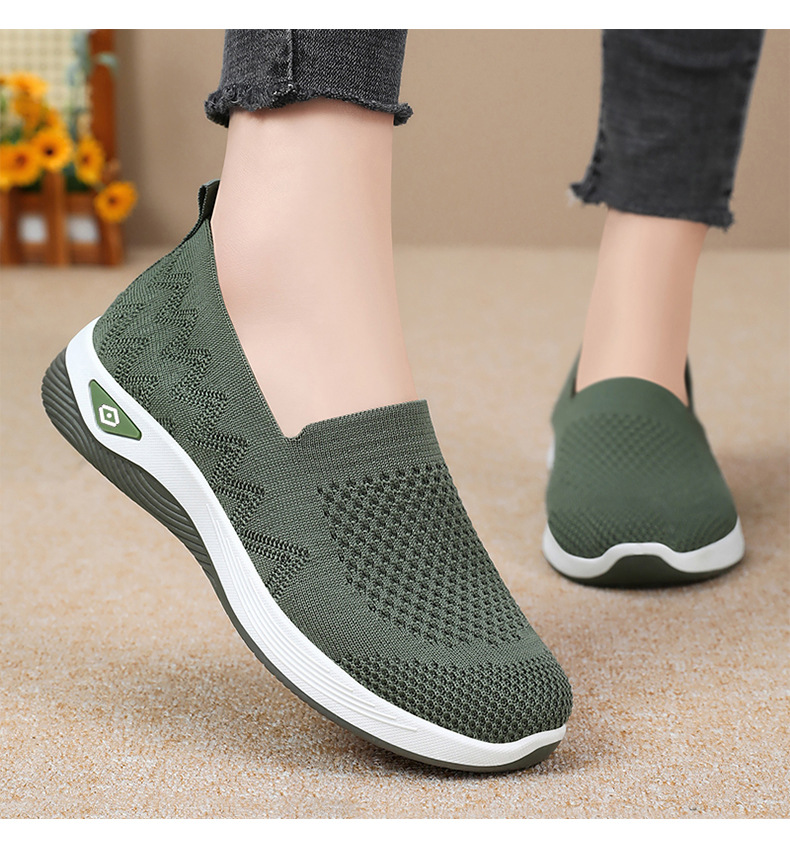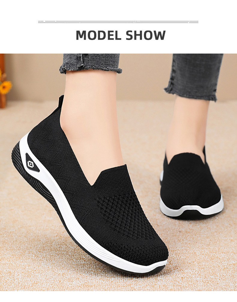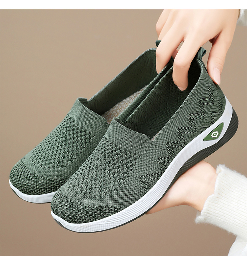 여성 신발 새로운 국경 비행 직조 통기성 캐주얼 신발 슬립 온 어머니 신발 오래 된 베이징 헝겊 신발 플랫 올 매치 싱글 레이어 신발