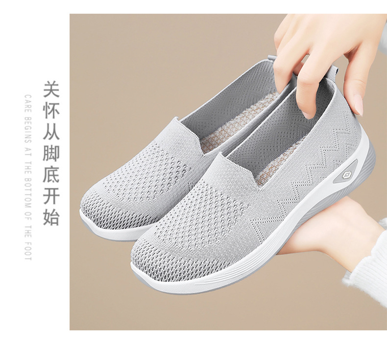 여성 신발 새로운 국경 비행 직조 통기성 캐주얼 신발 슬립 온 어머니 신발 오래 된 베이징 헝겊 신발 플랫 올 매치 싱글 레이어 신발스토어 가기