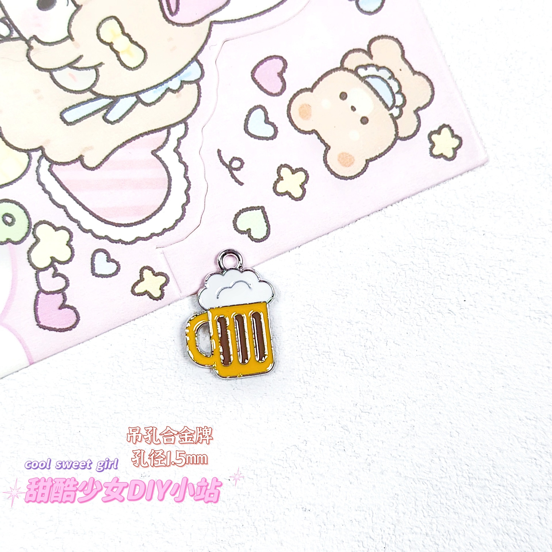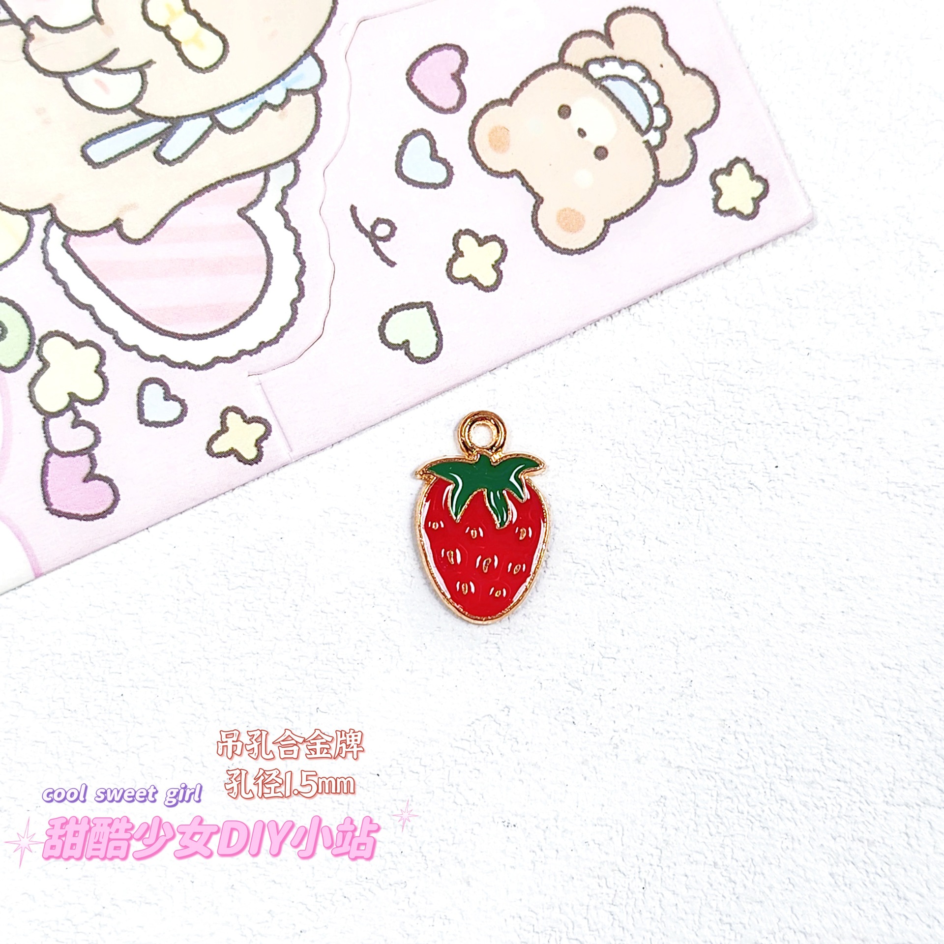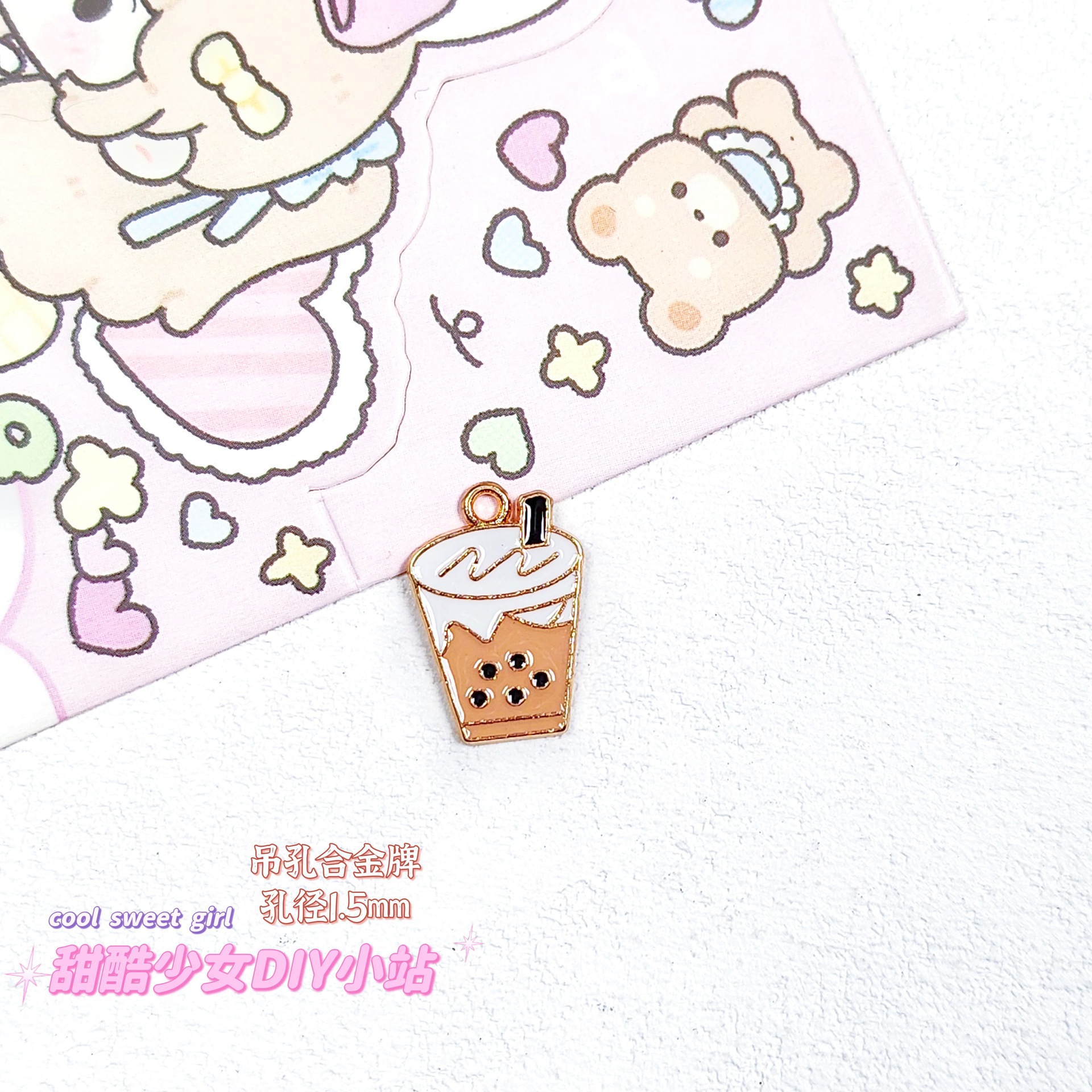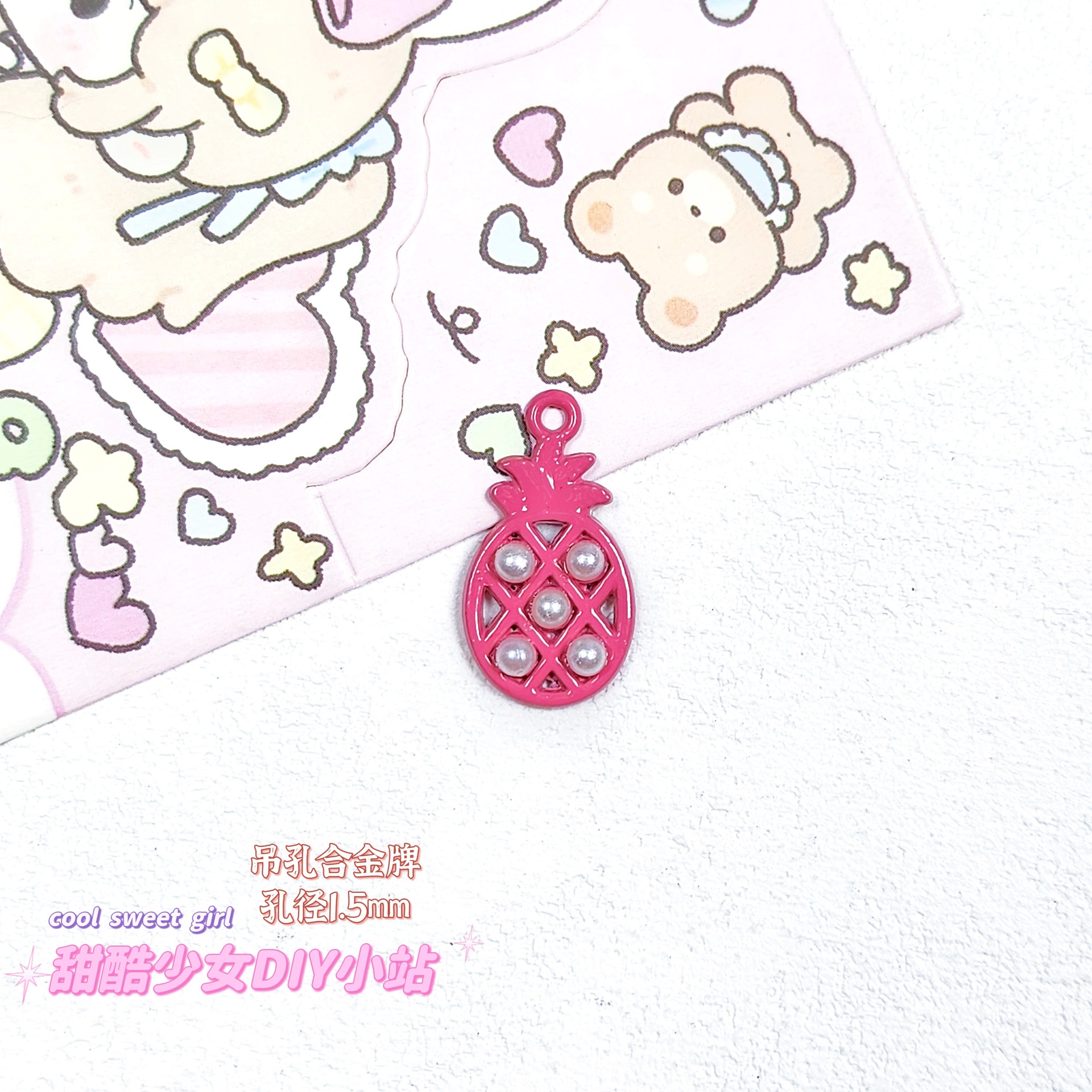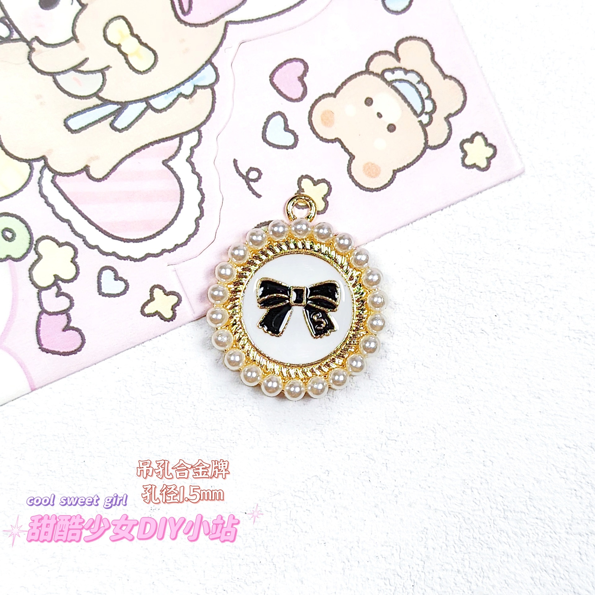 합금 태그 금속 만화 오일 진주 작은 펜던트 귀여운 휴대 전화 체인 구슬 소재 DIY 보석 액세서리스토어 가기