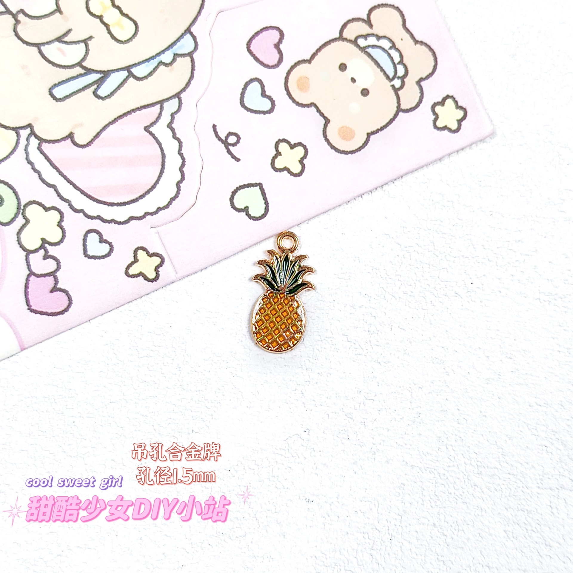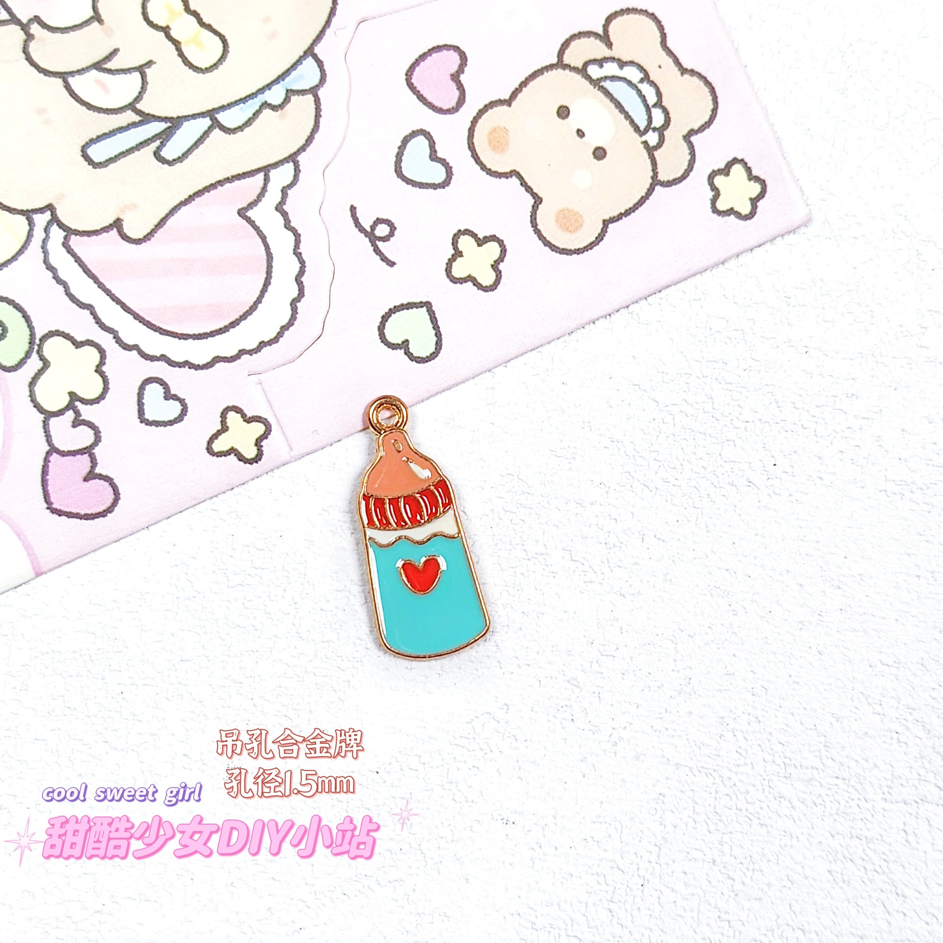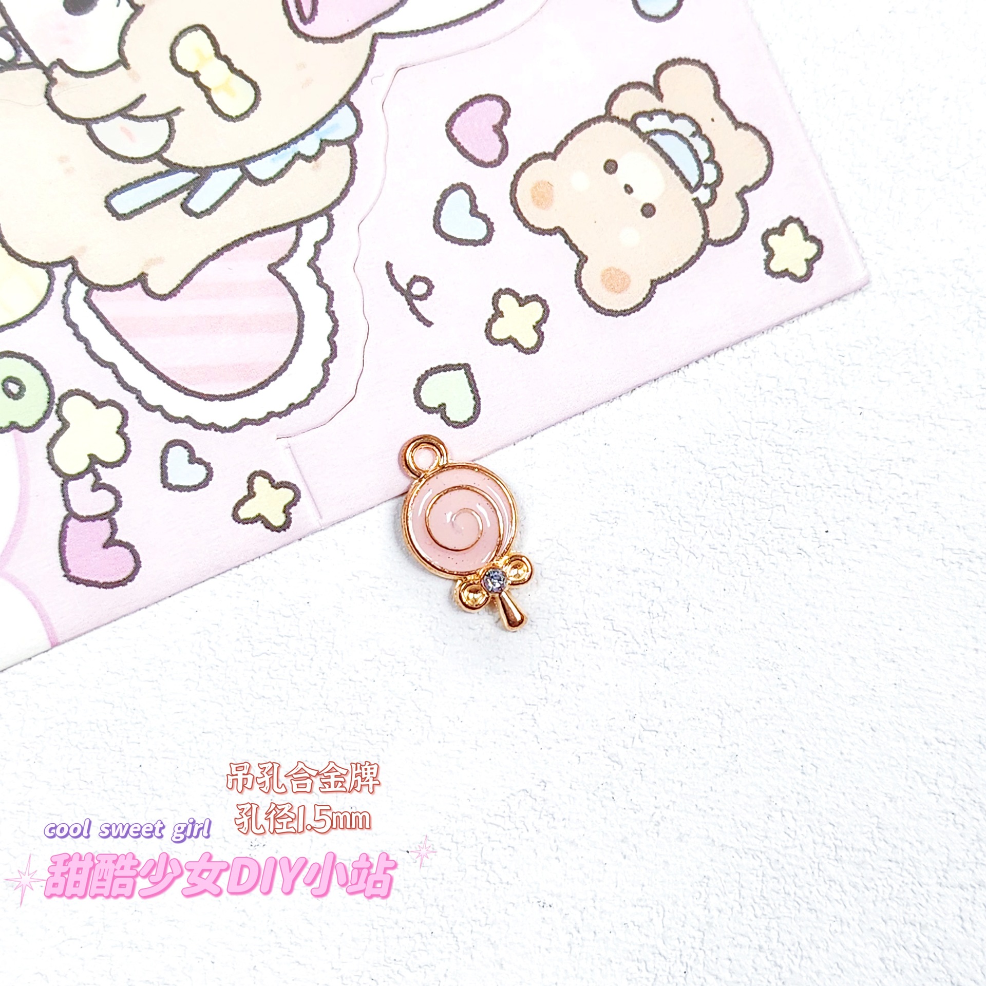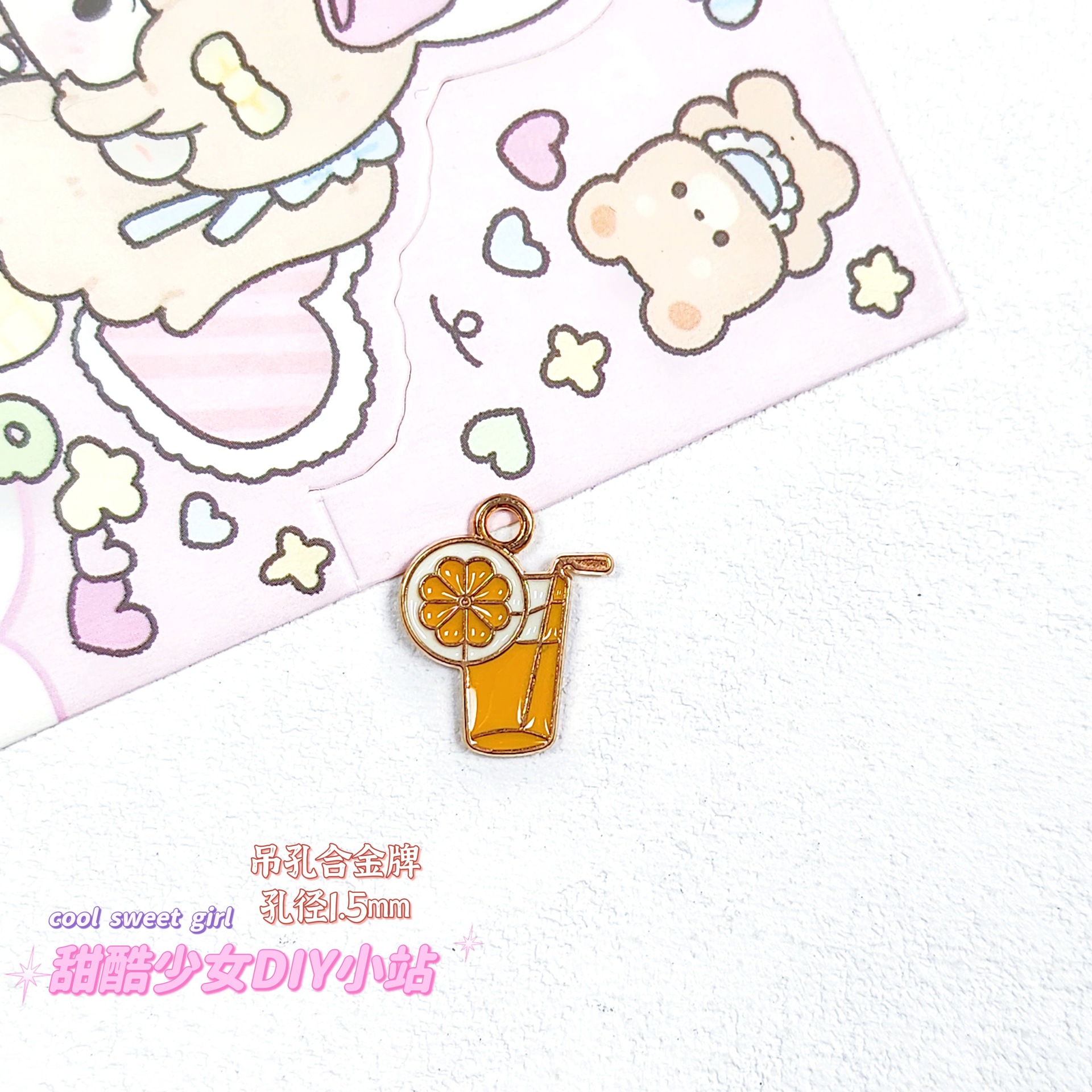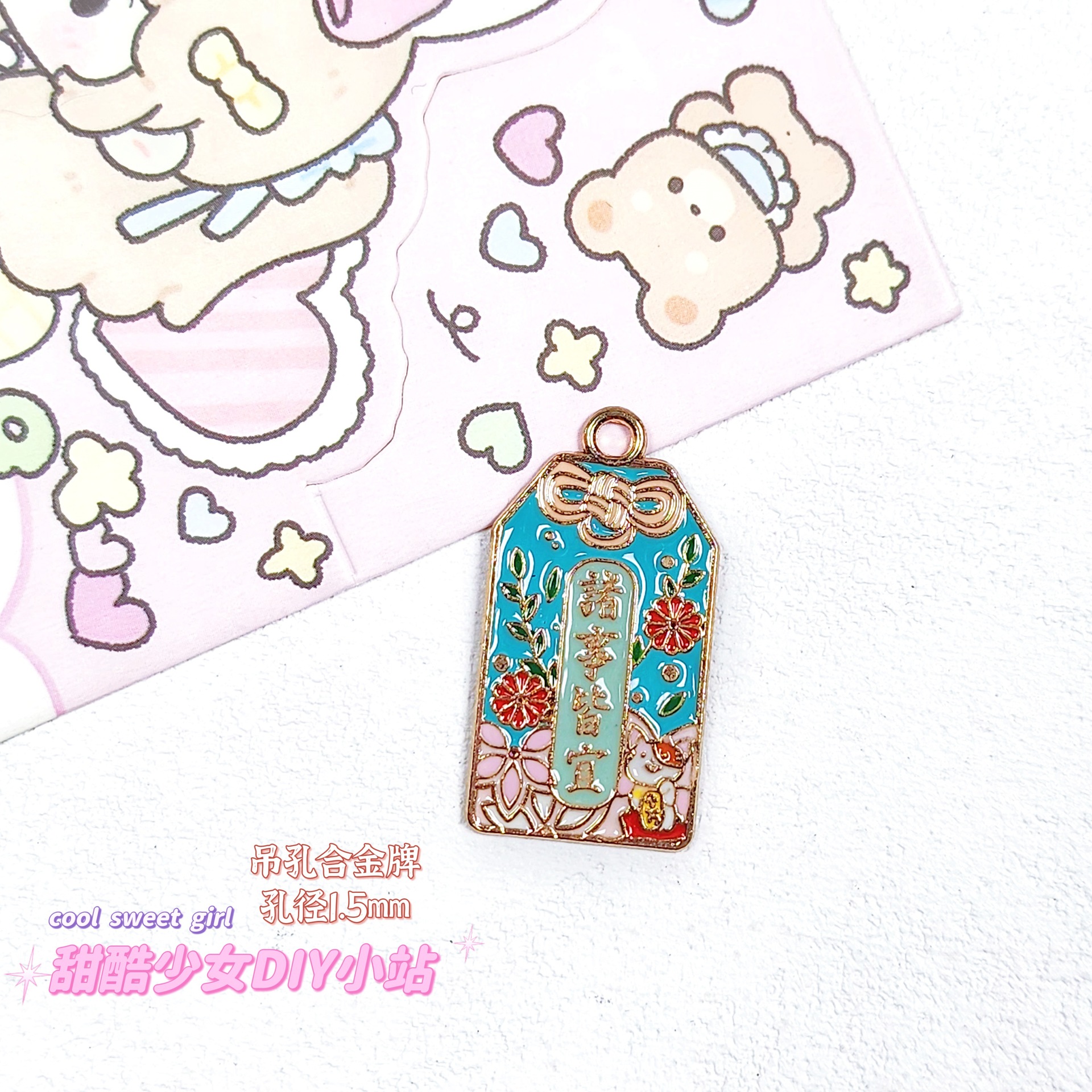 합금 태그 금속 만화 오일 진주 작은 펜던트 귀여운 휴대 전화 체인 구슬 소재 DIY 보석 액세서리스토어 가기