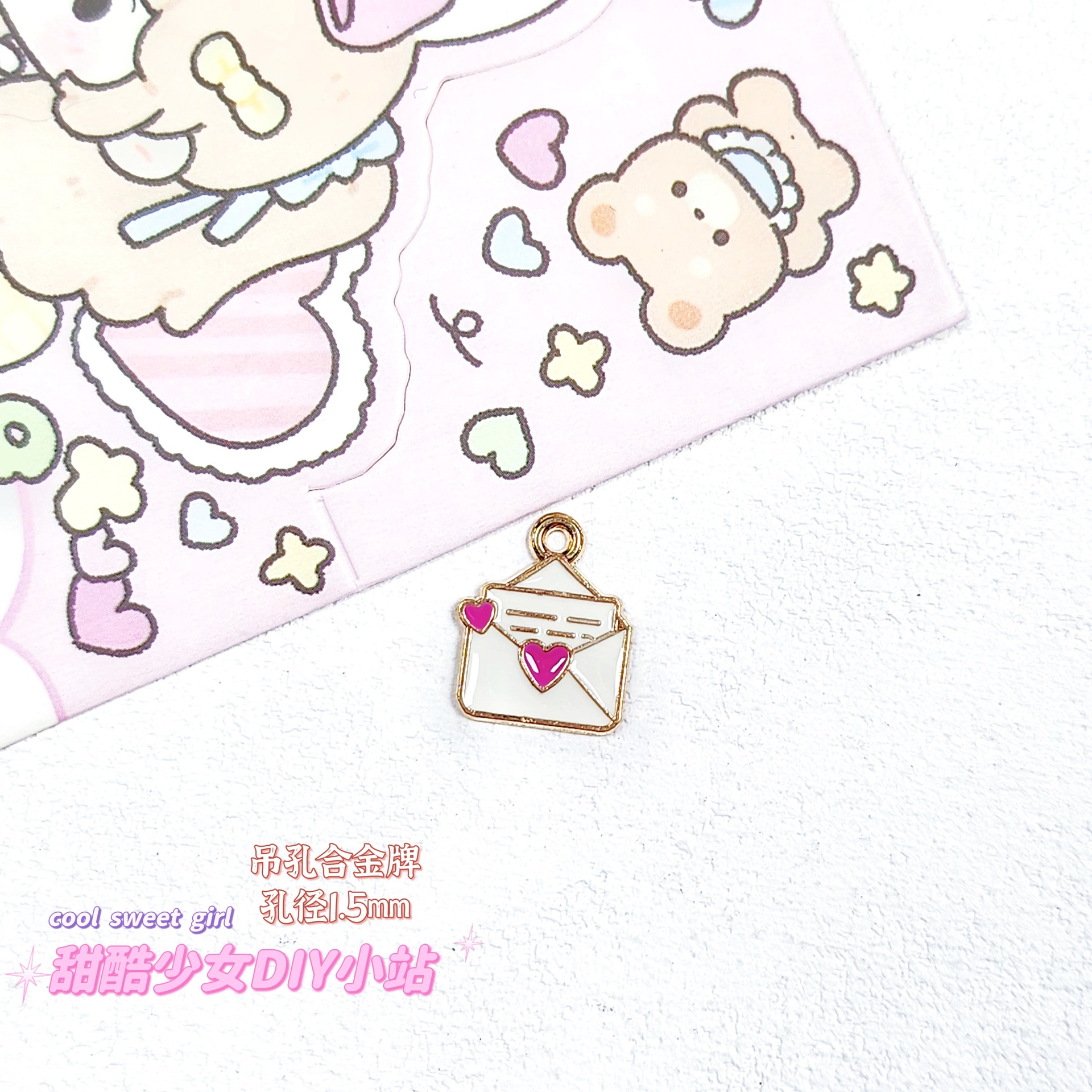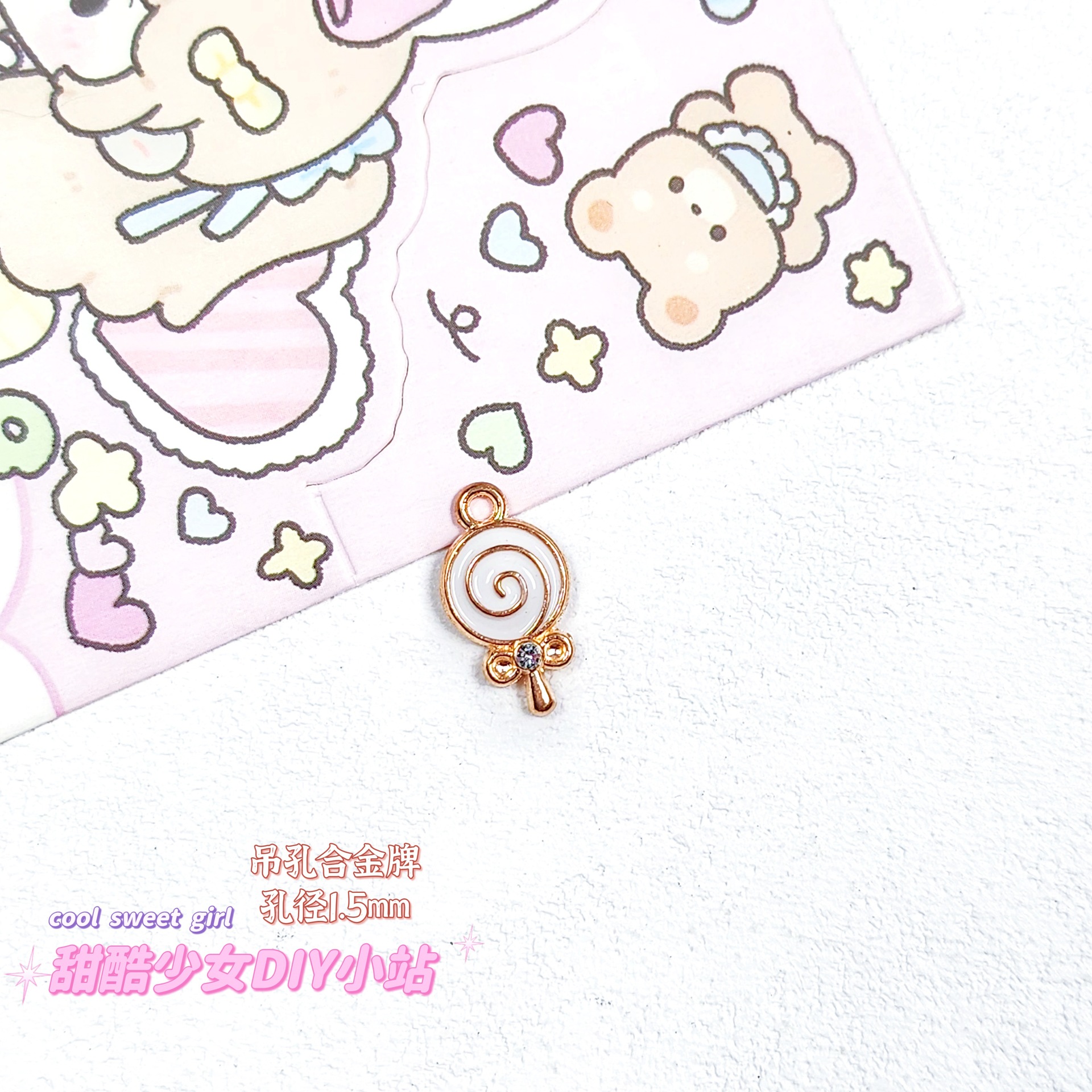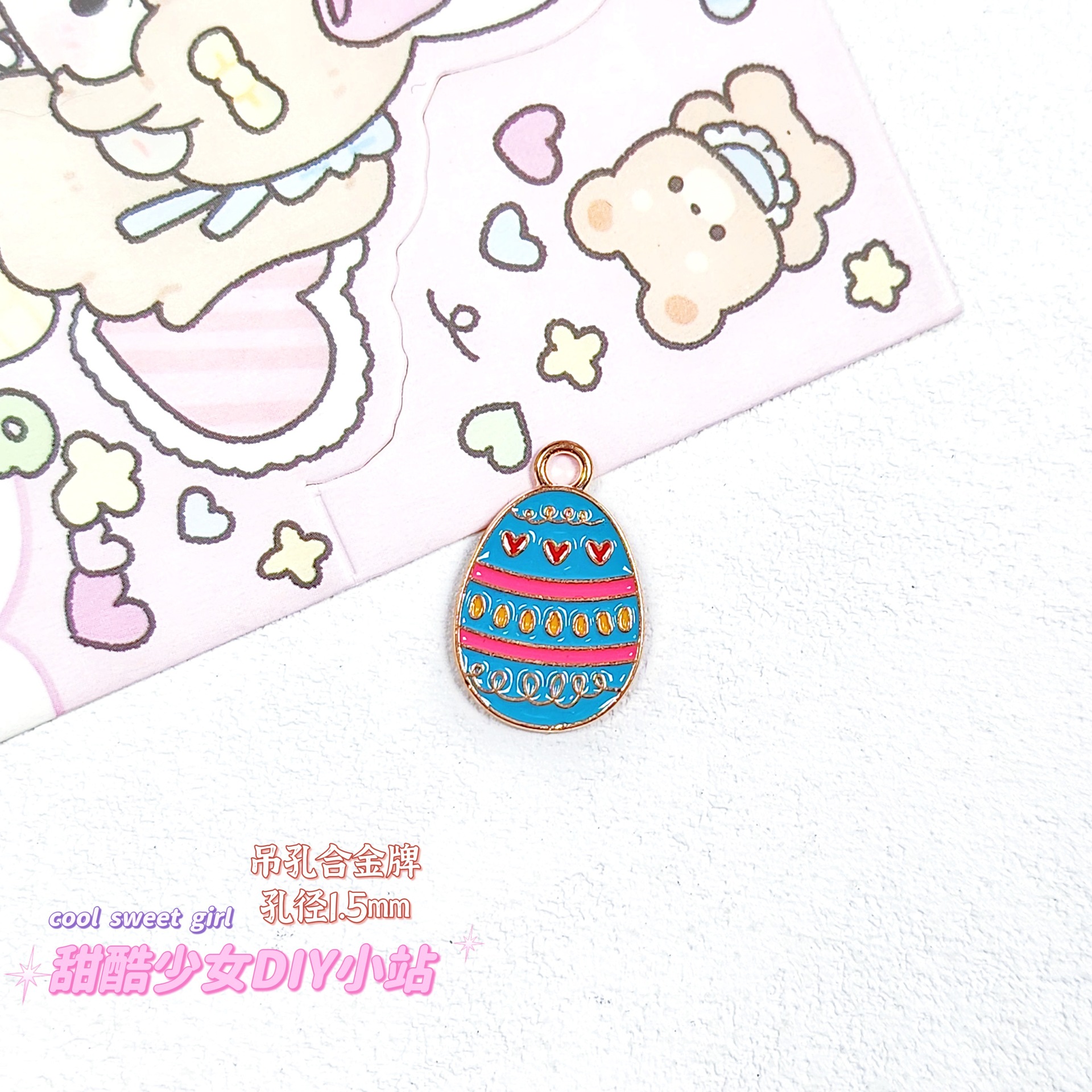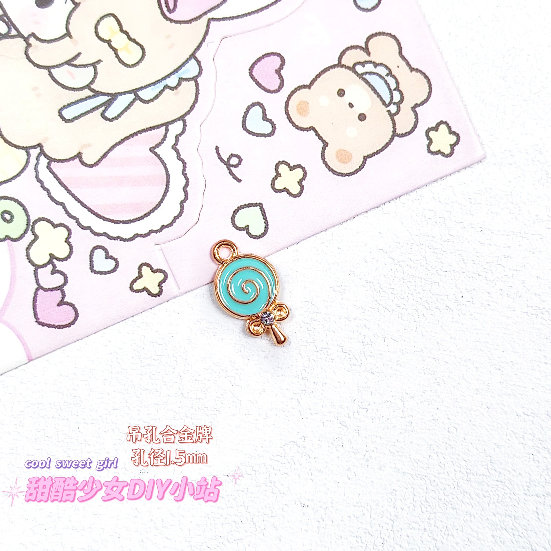 합금 태그 금속 만화 오일 진주 작은 펜던트 귀여운 휴대 전화 체인 구슬 소재 DIY 보석 액세서리스토어 가기