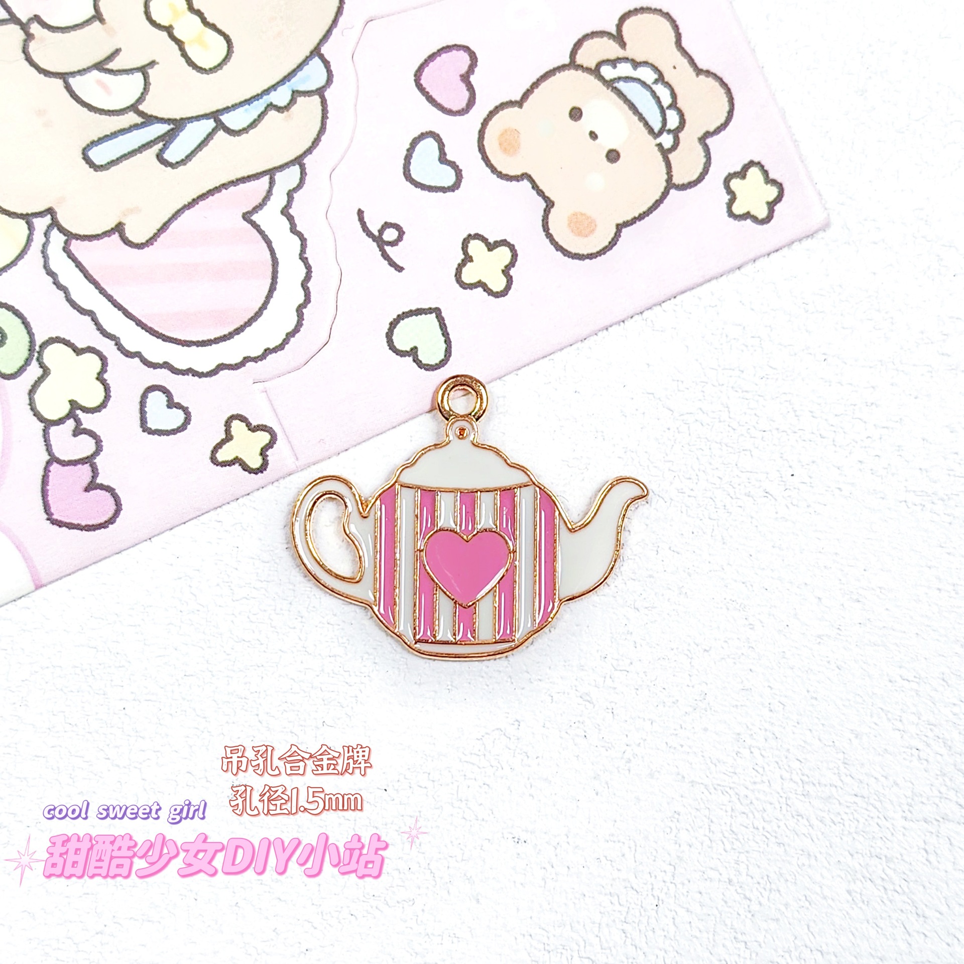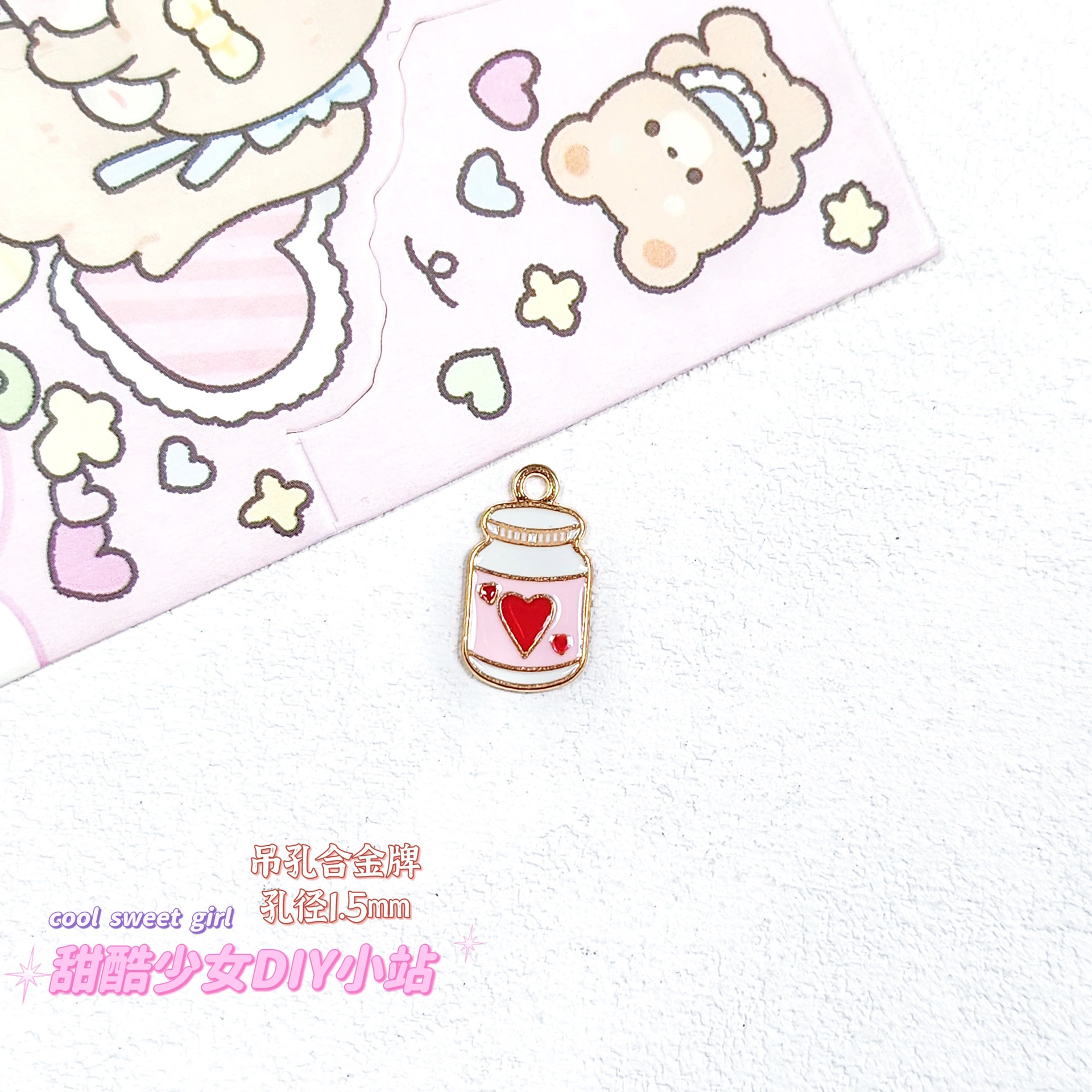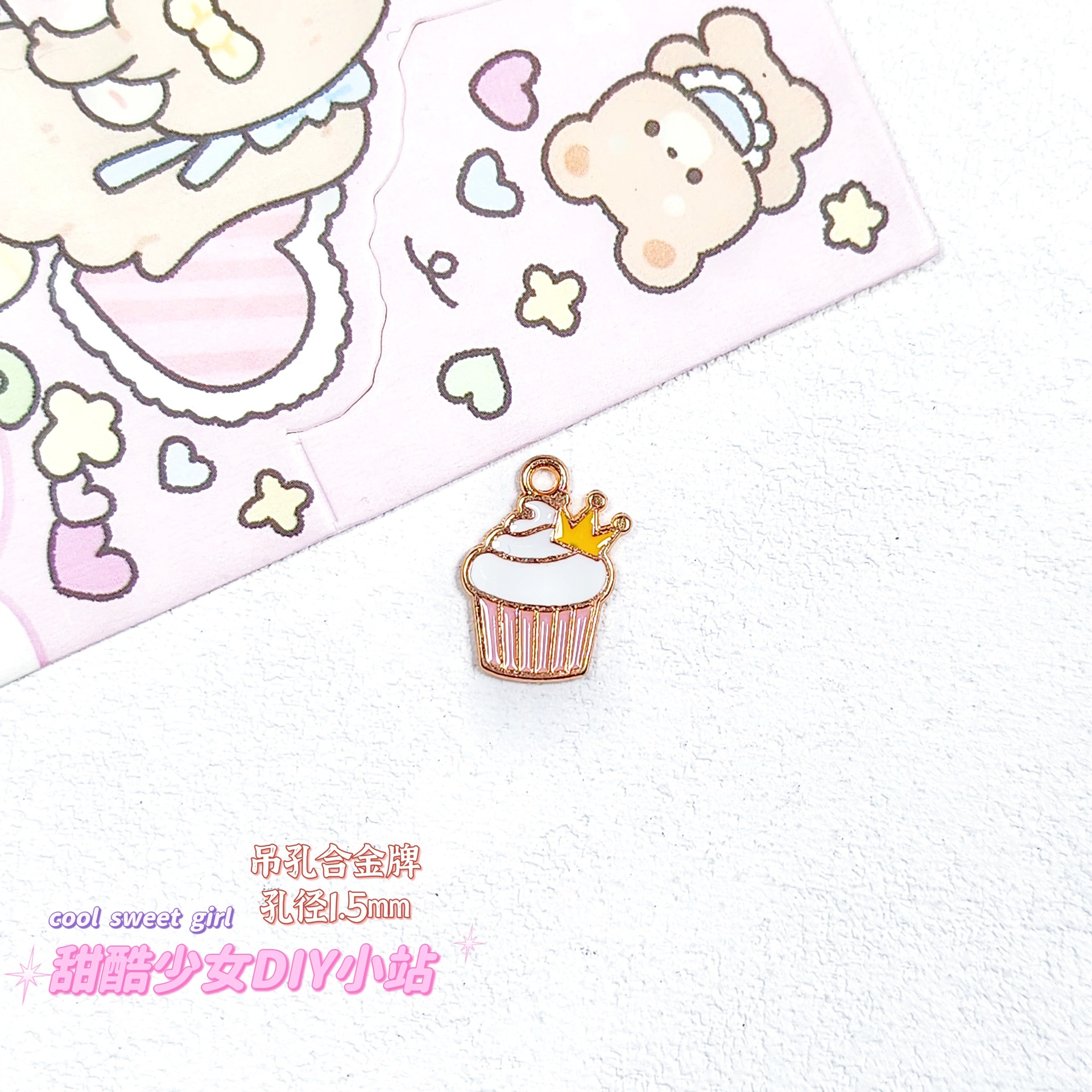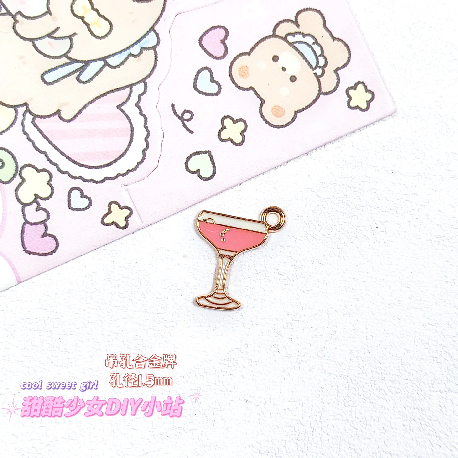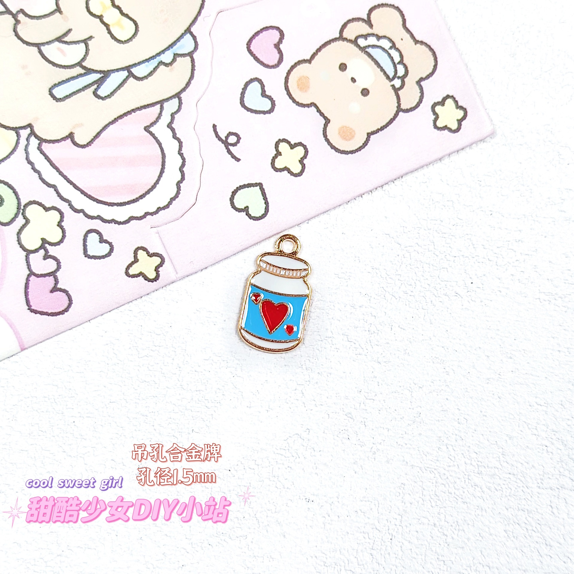 합금 태그 금속 만화 오일 진주 작은 펜던트 귀여운 휴대 전화 체인 구슬 소재 DIY 보석 액세서리스토어 가기