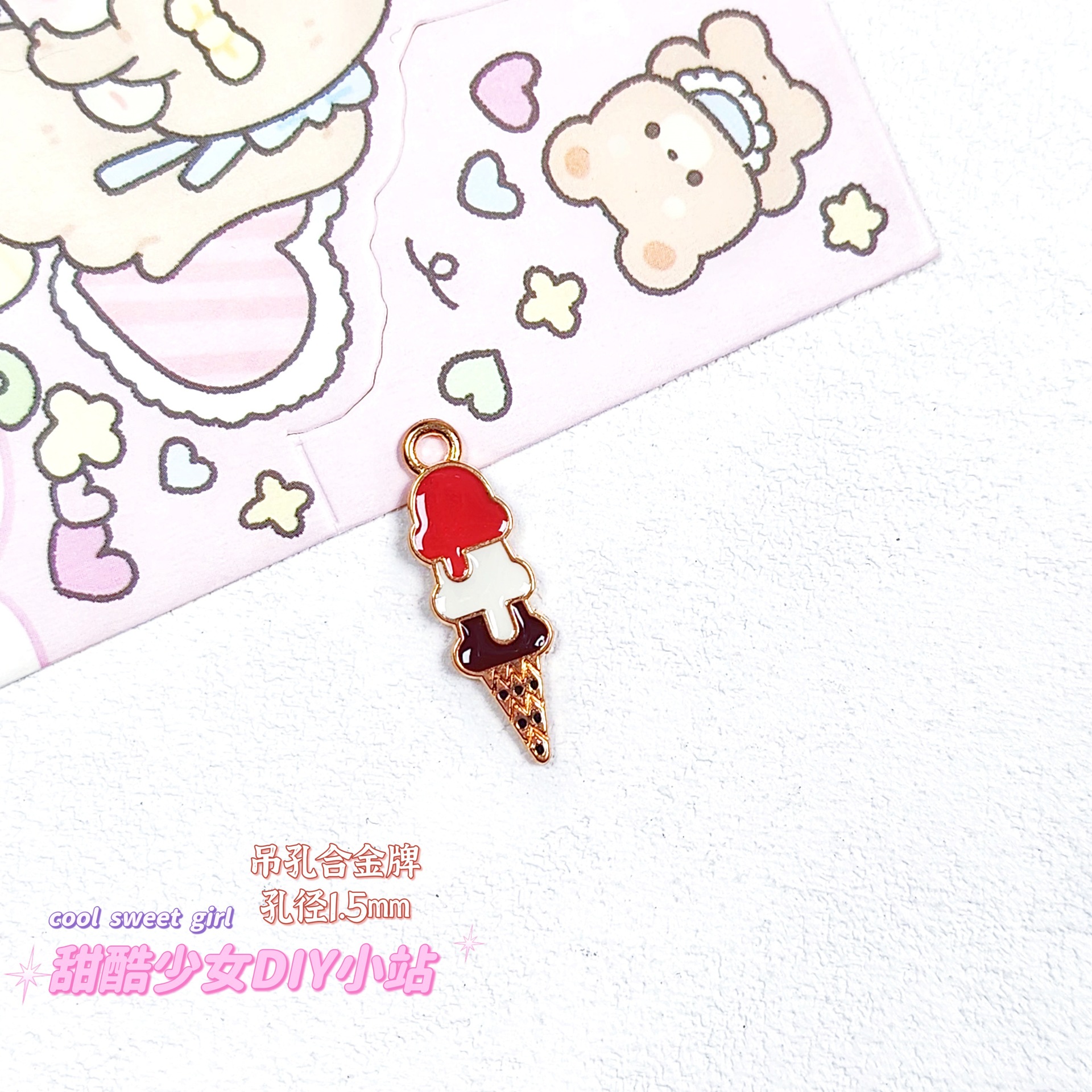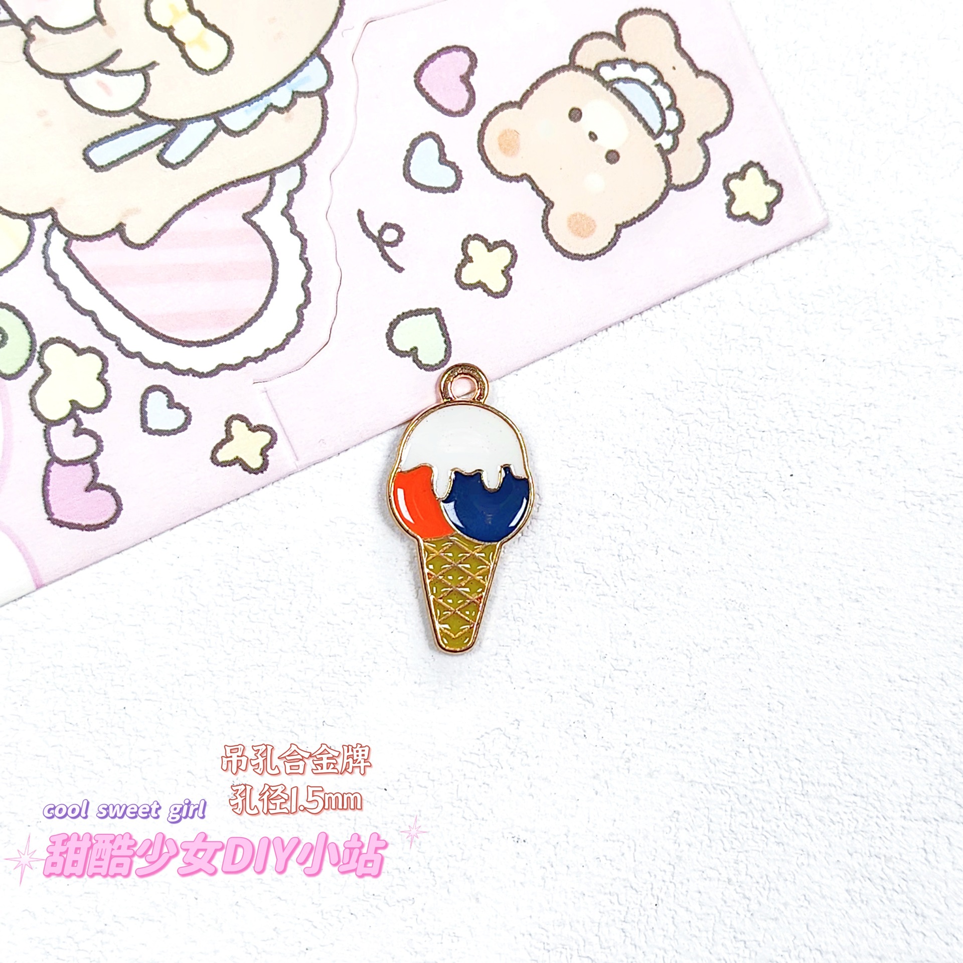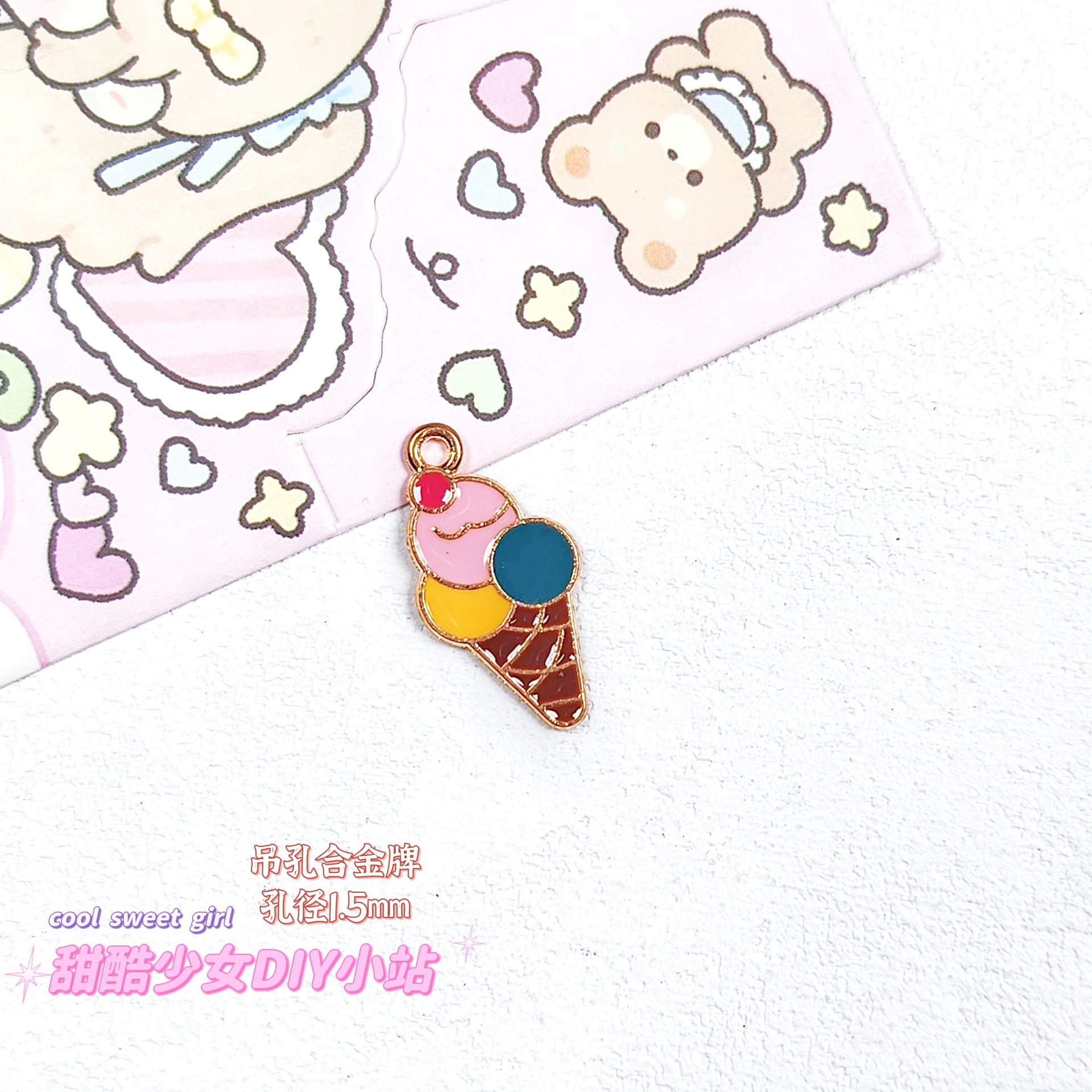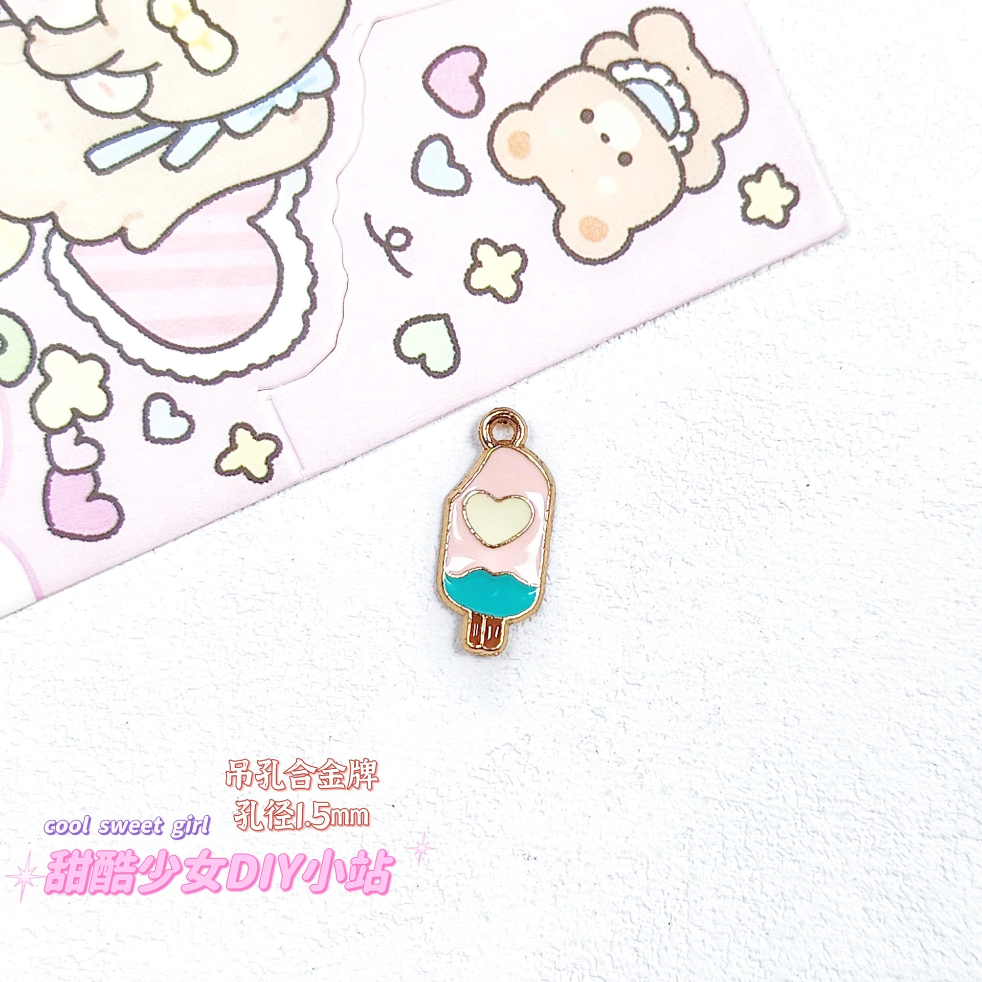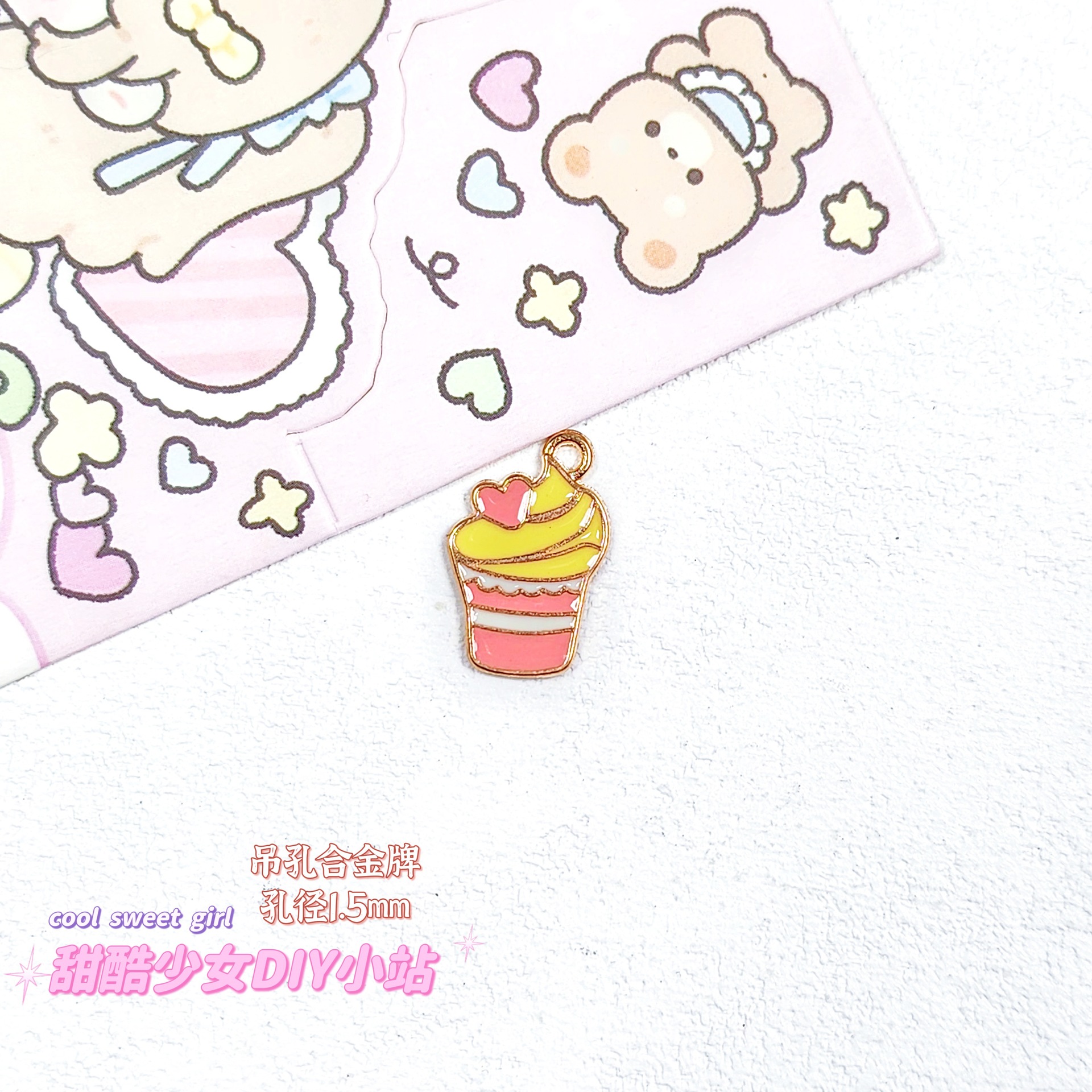 합금 태그 금속 만화 오일 진주 작은 펜던트 귀여운 휴대 전화 체인 구슬 소재 DIY 보석 액세서리스토어 가기