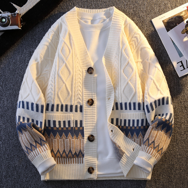 가을과 겨울 새로운 니트 카디건 남성용 패셔너블 루즈 트위스트 게으른 스타일 스웨터 코트 커플의 V-넥 스웨터 스웨터스토어 가기