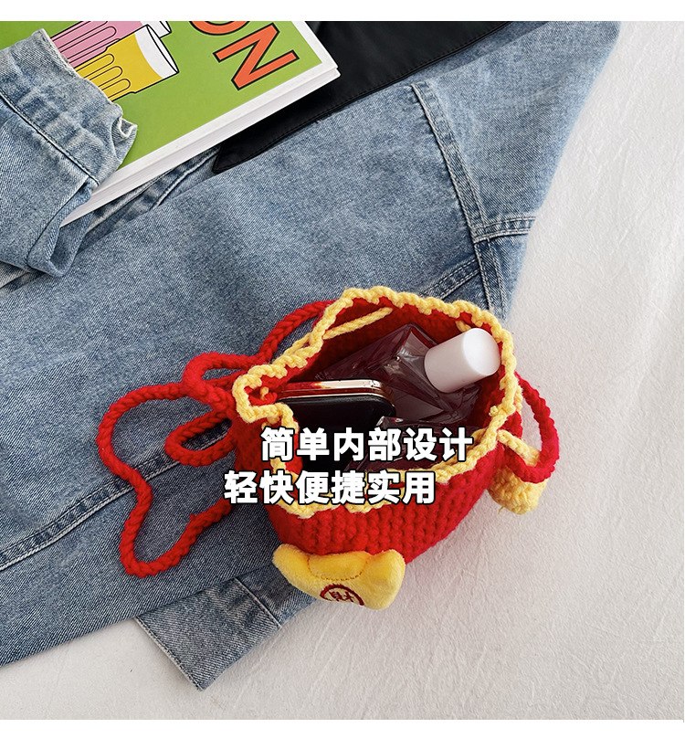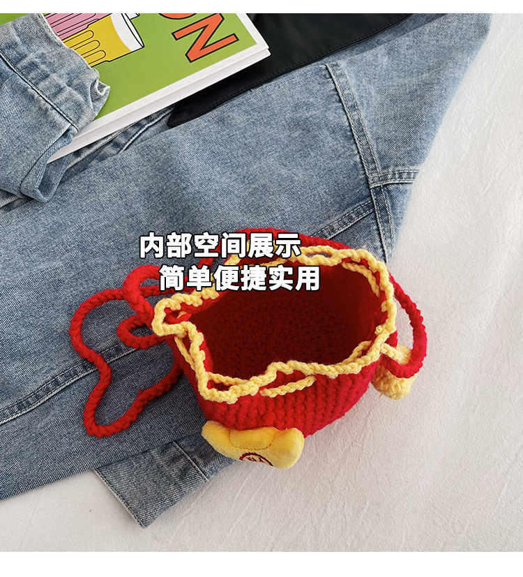 어린이 가방 2024 새로운 빨간 양모 니트 작은 포춘 가방 귀여운 소녀 미니 크로스 바디 가방 변경 버킷 가방스토어 가기