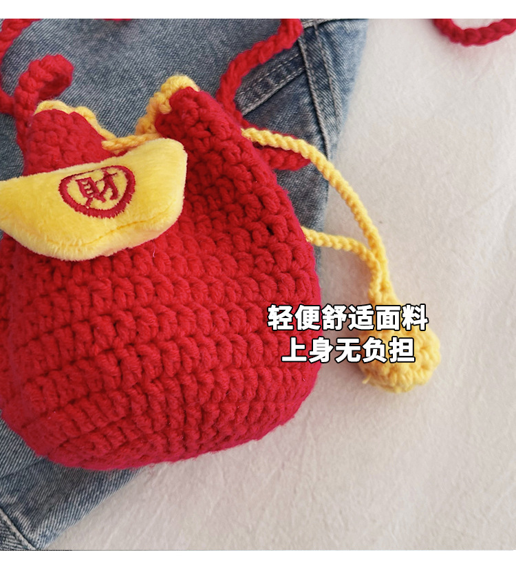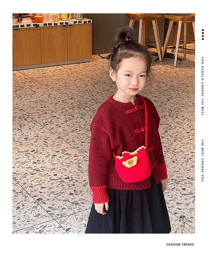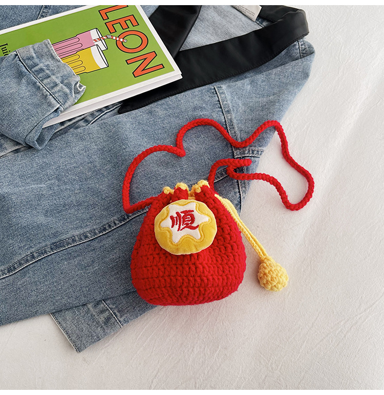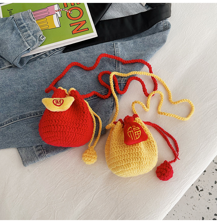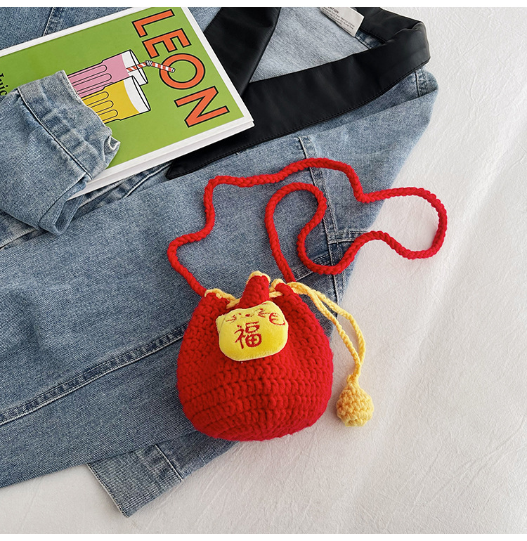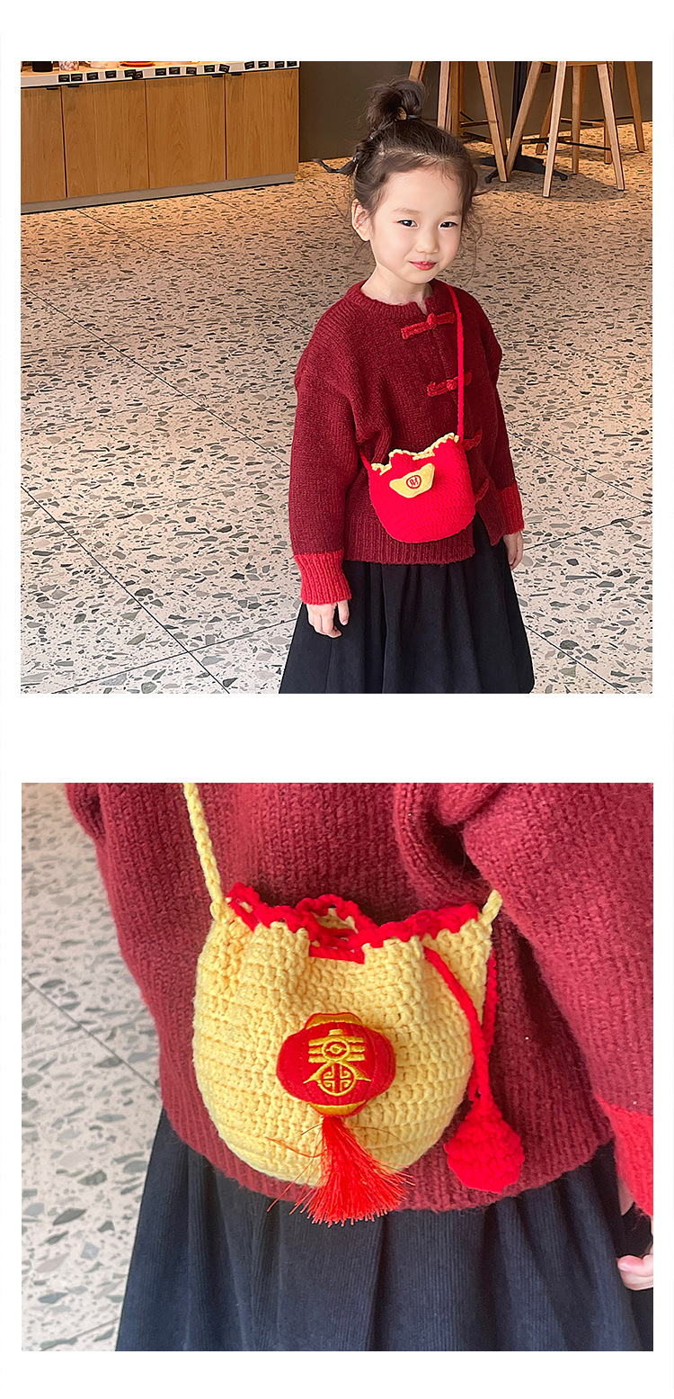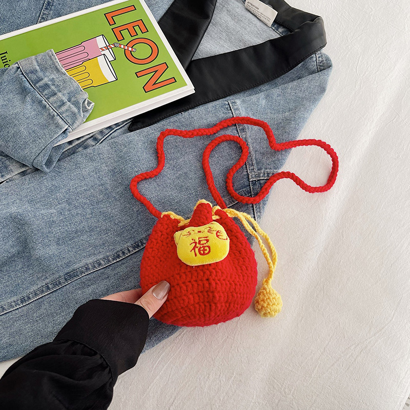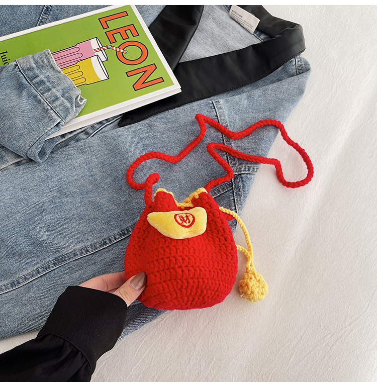 어린이 가방 2024 새로운 빨간 양모 니트 작은 포춘 가방 귀여운 소녀 미니 크로스 바디 가방 변경 버킷 가방