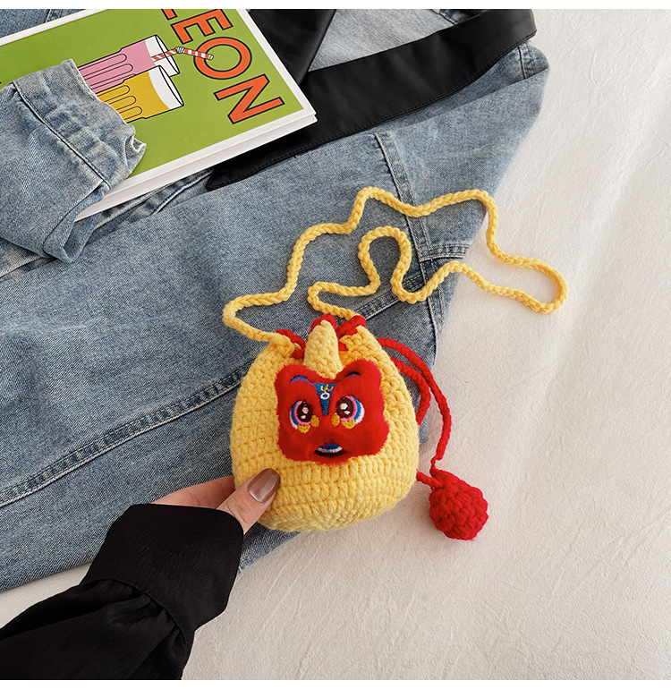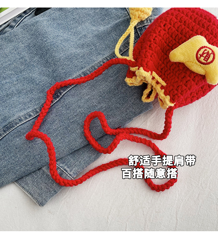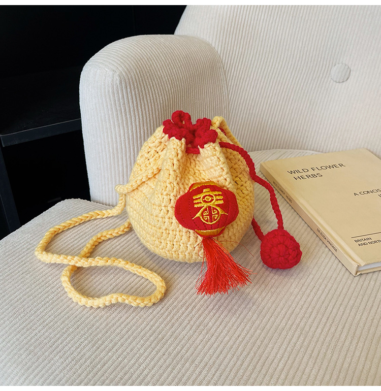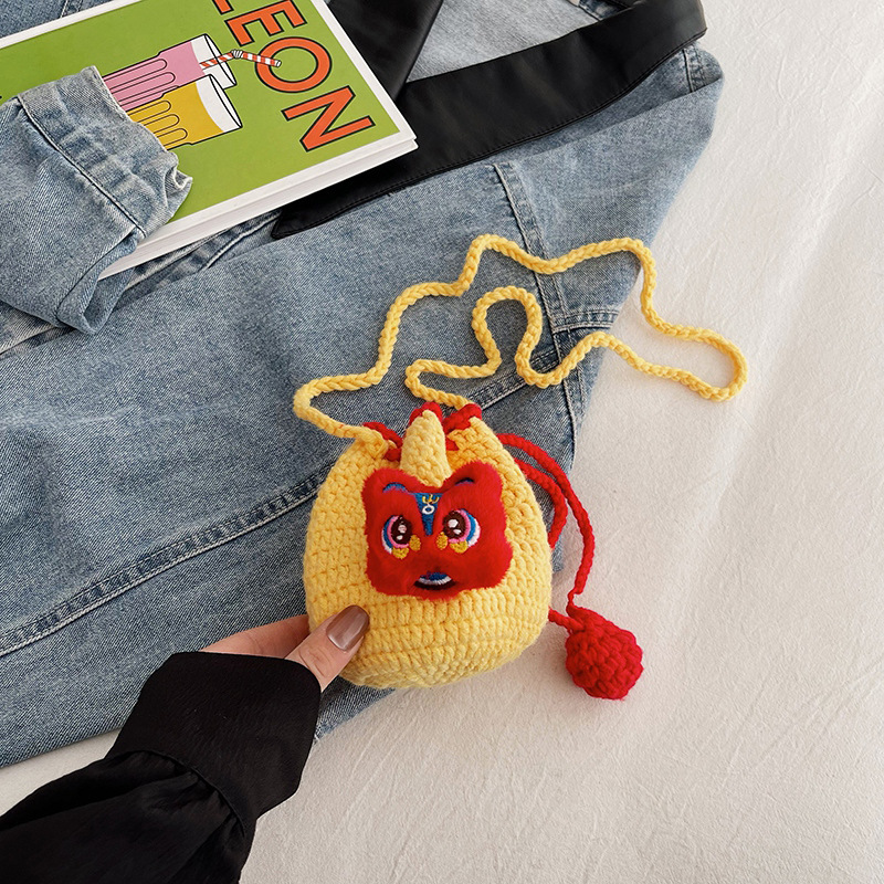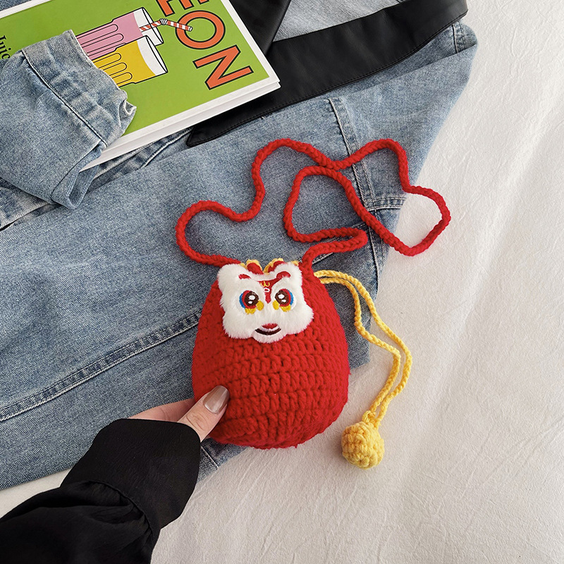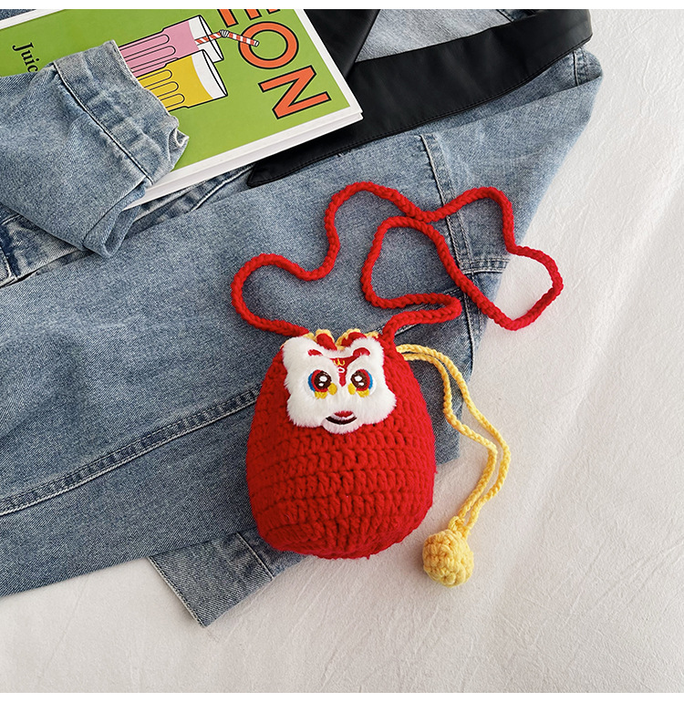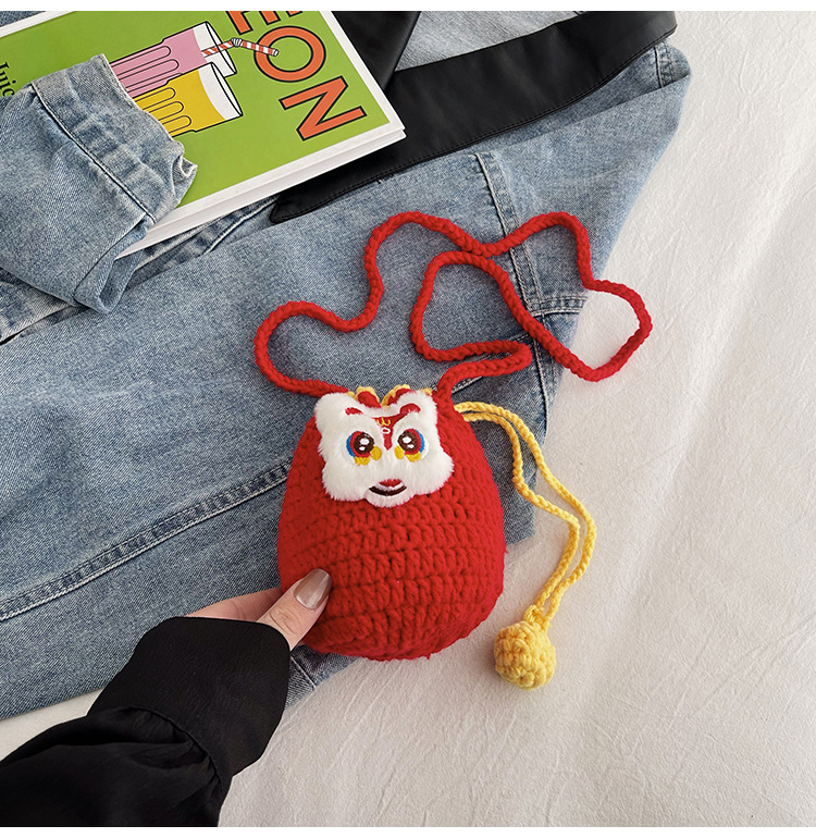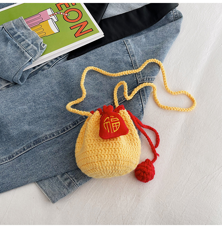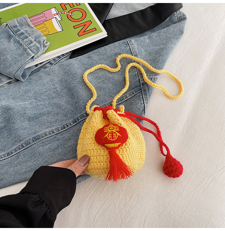 어린이 가방 2024 새로운 빨간 양모 니트 작은 포춘 가방 귀여운 소녀 미니 크로스 바디 가방 변경 버킷 가방