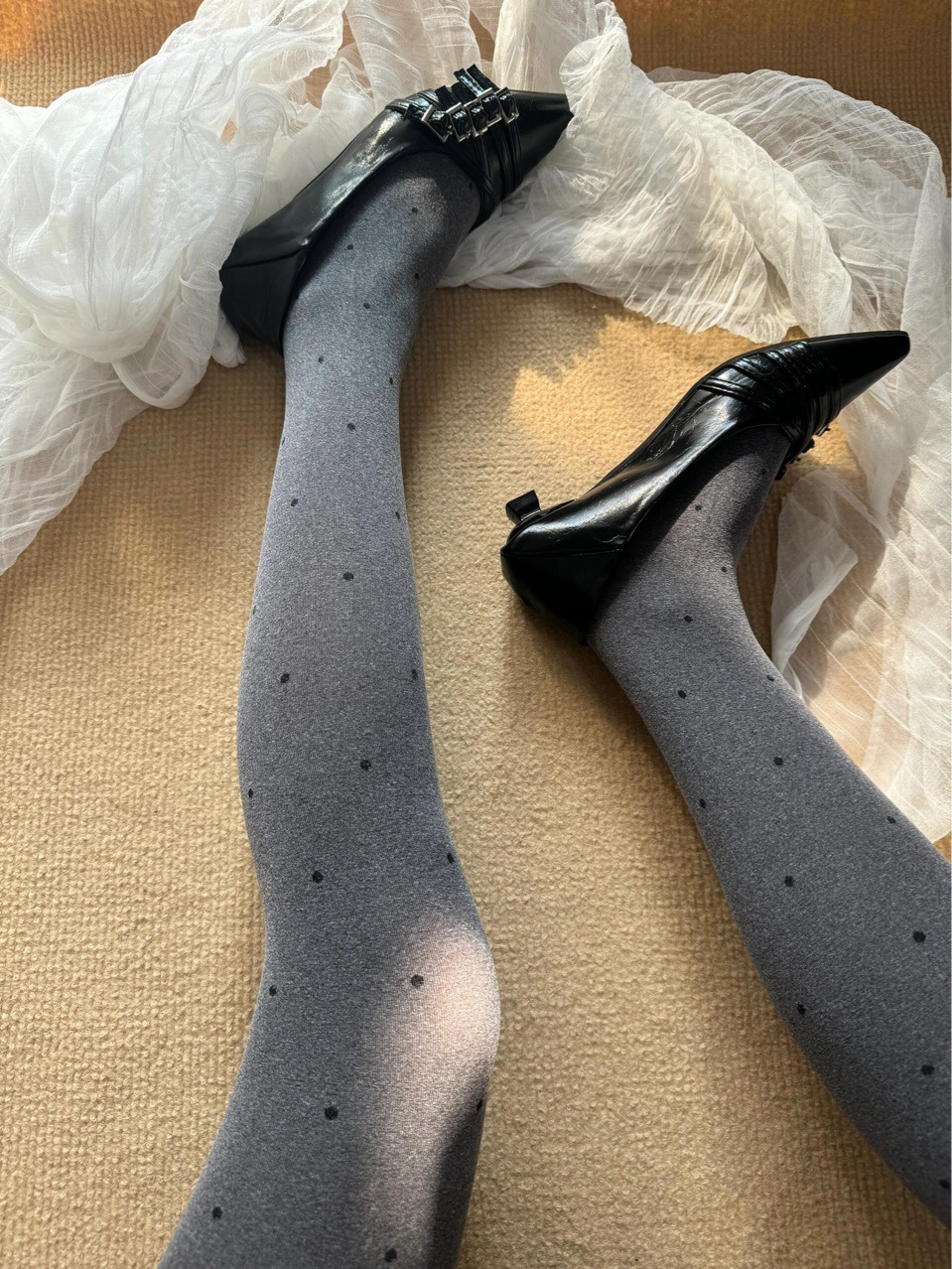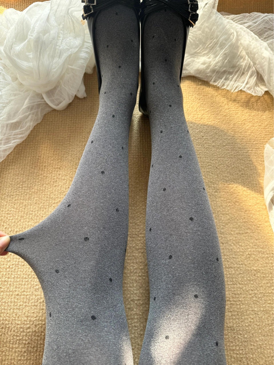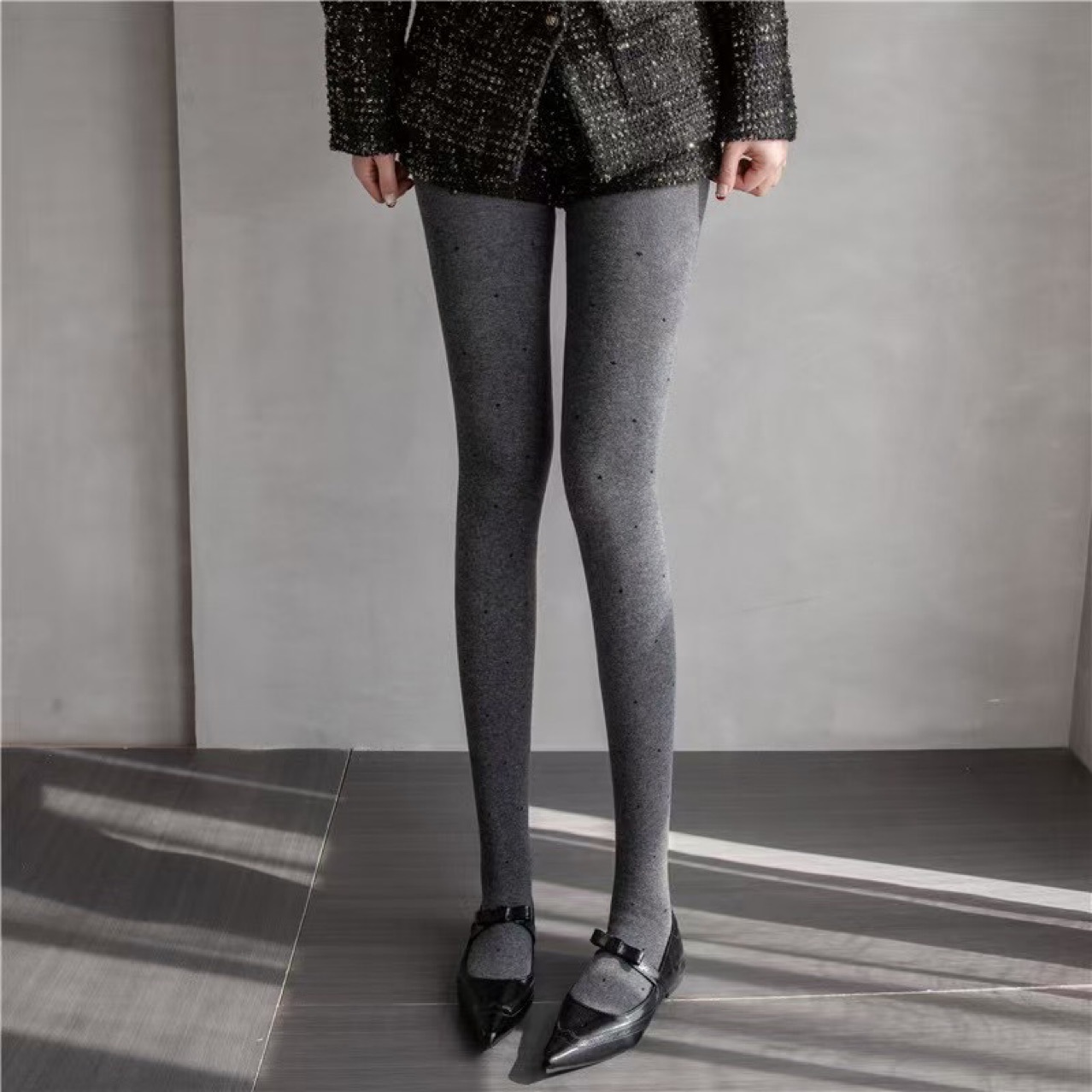 한 리 한 치 그레이 웨이브 도트 잠금 팬티 스타킹 니트 코튼 얇은 핏 슬림 기모 베이스 양말 가을 겨울
