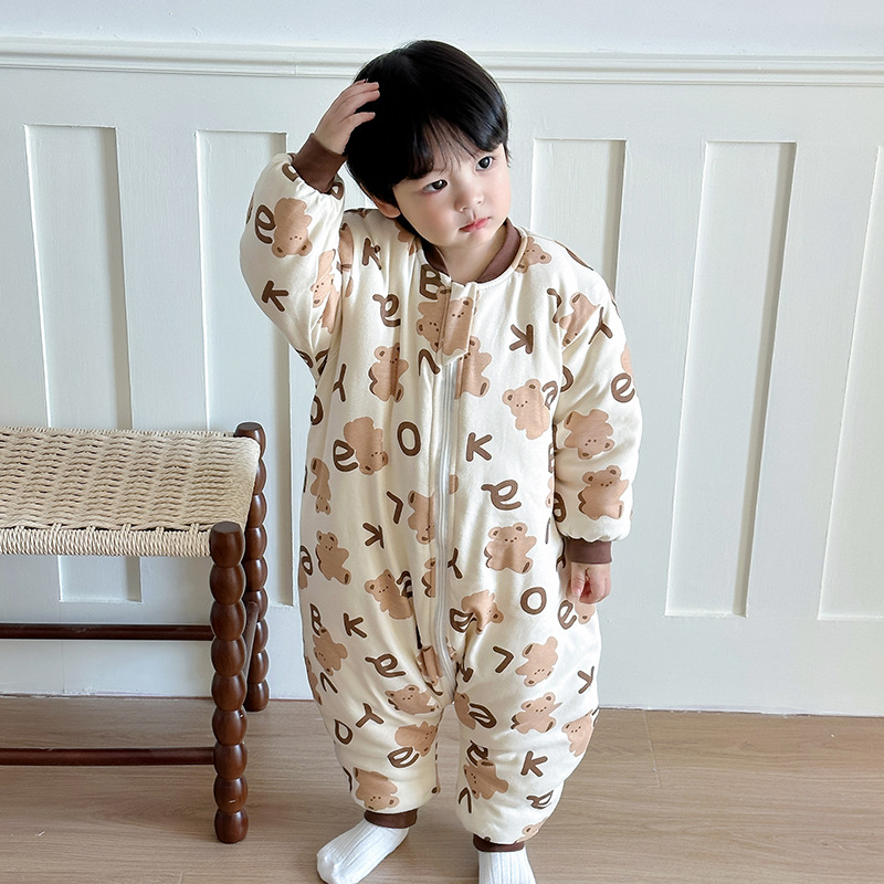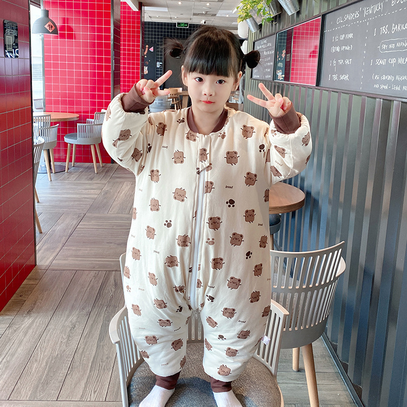 아기 슬리핑 백 가을과 겨울 두꺼운 면화 다리-분할 어린이 킥 방지 퀼트 유물 겨울 아기의 순수한면 잠옷