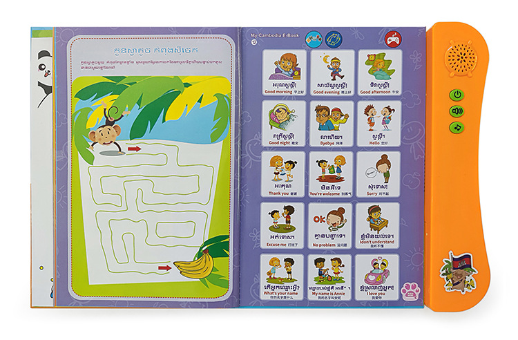 국경 간 캄보디아 영어 중국어 포인트 읽기 어린이 조기 교육 장난감 오디오 북 캄보디아 전자 책스토어 가기