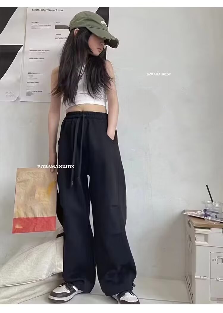 어린이 착용 소녀 스트레이트 다리 바지 어린이 캐주얼 바지 2024 봄과 가을 어린이 넓은 다리 바지 스포츠 바지 바지스토어 가기