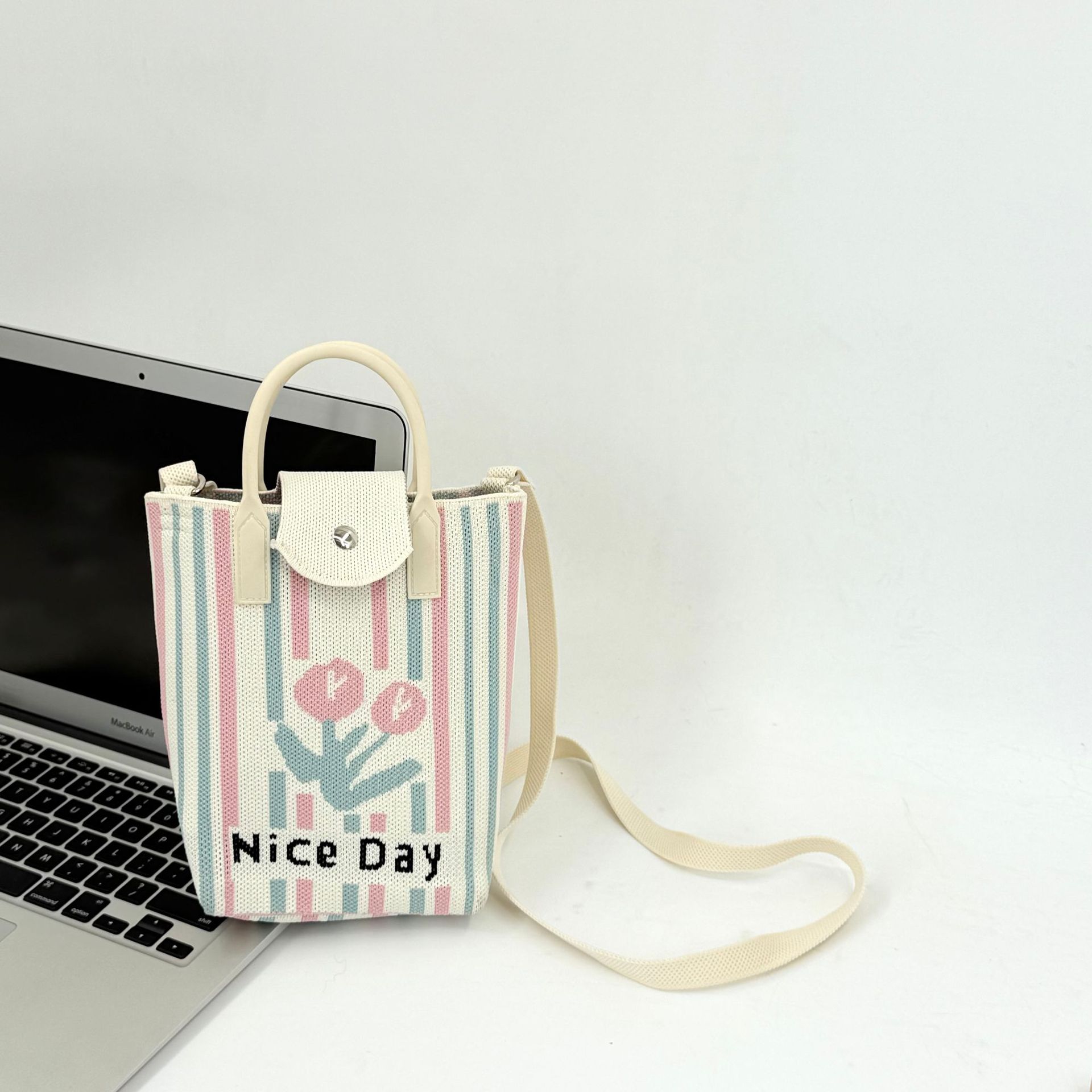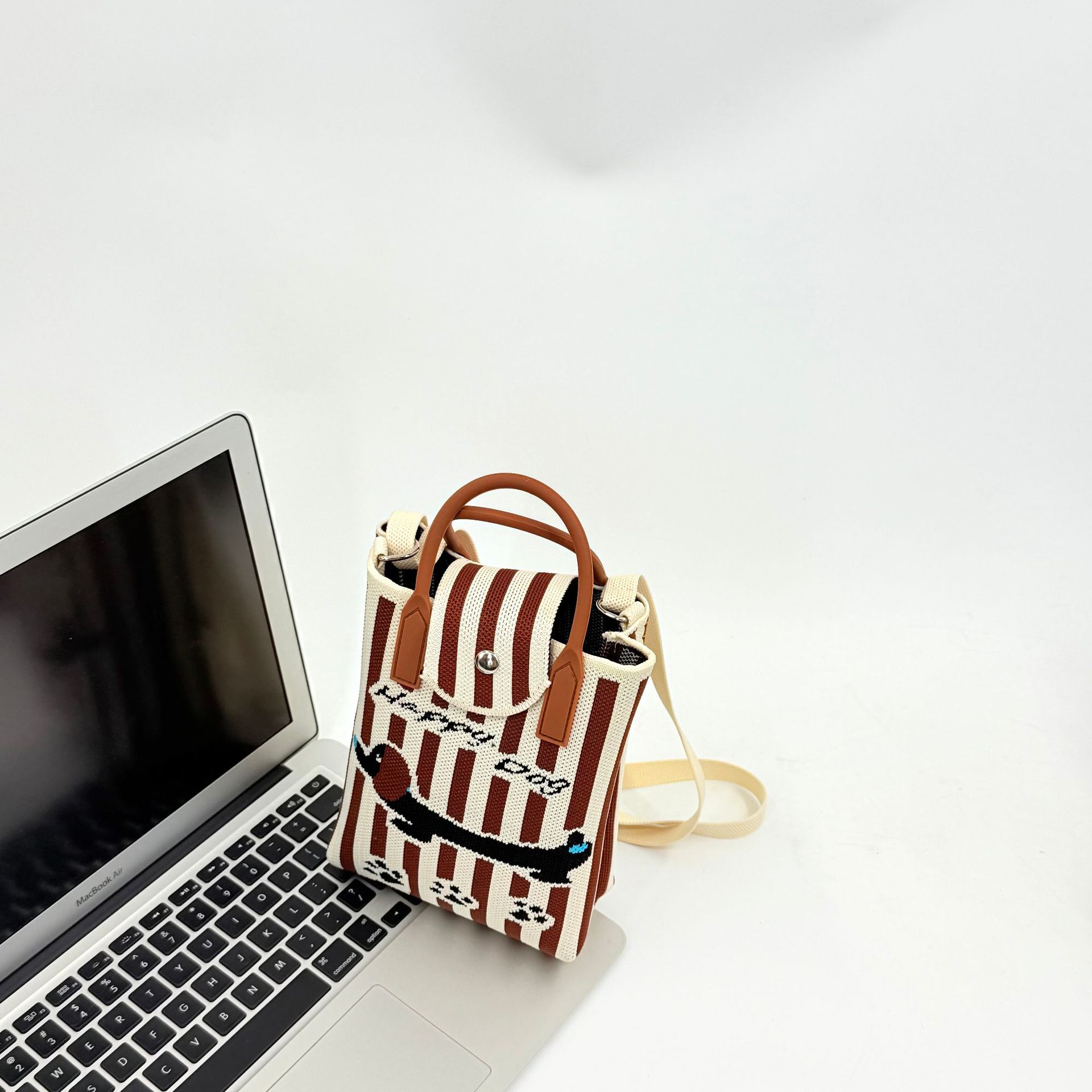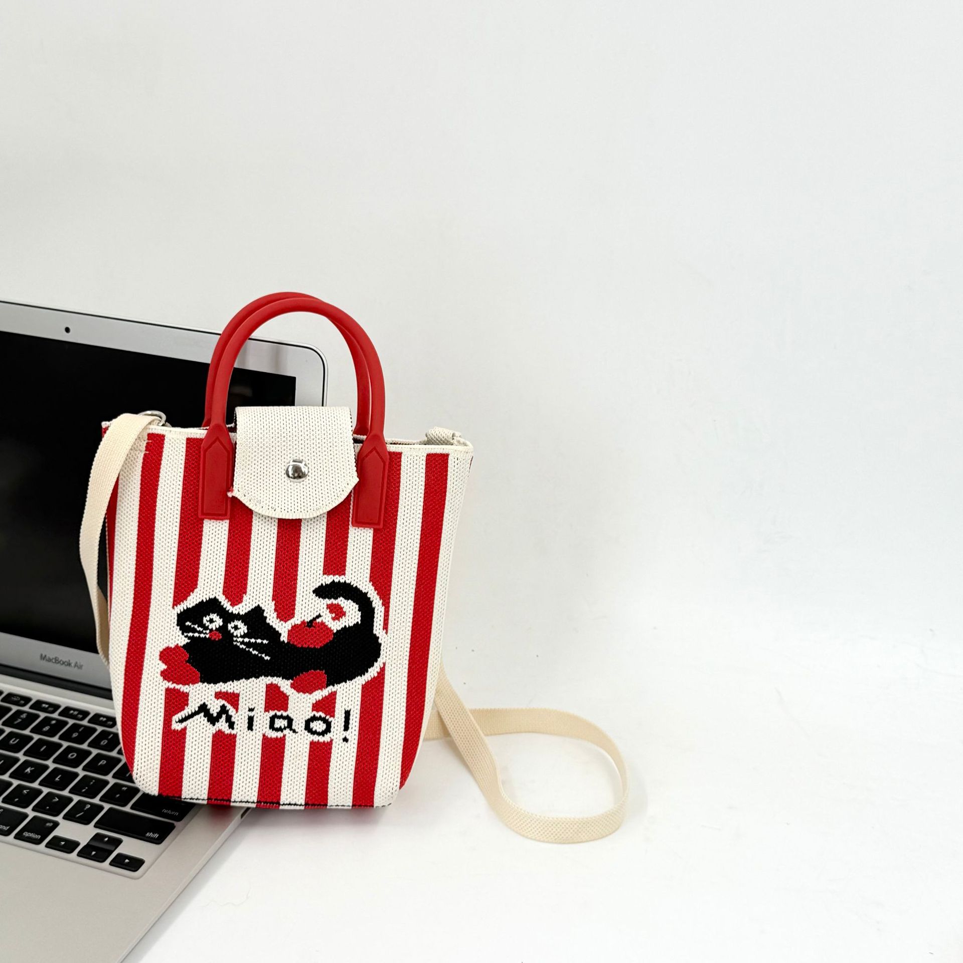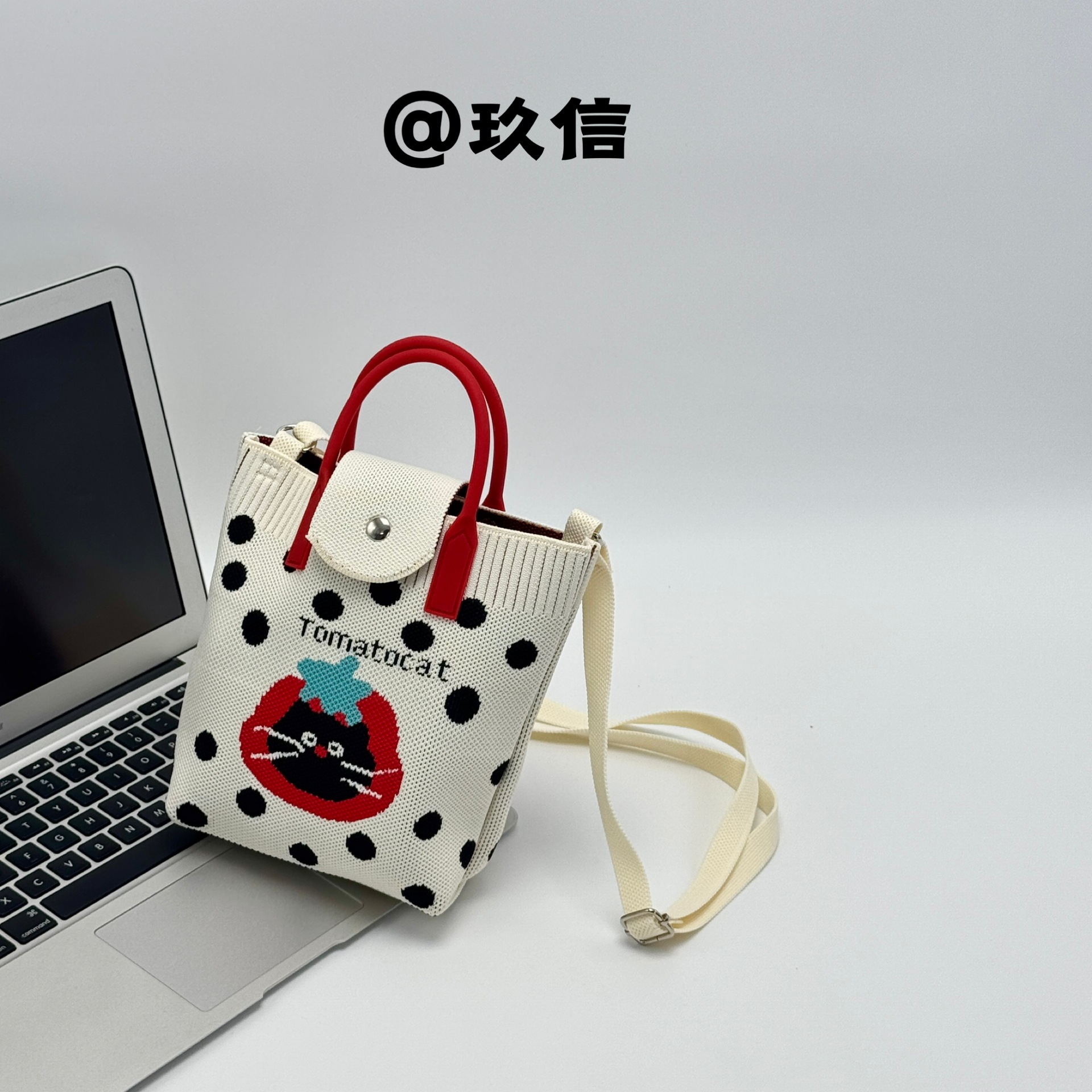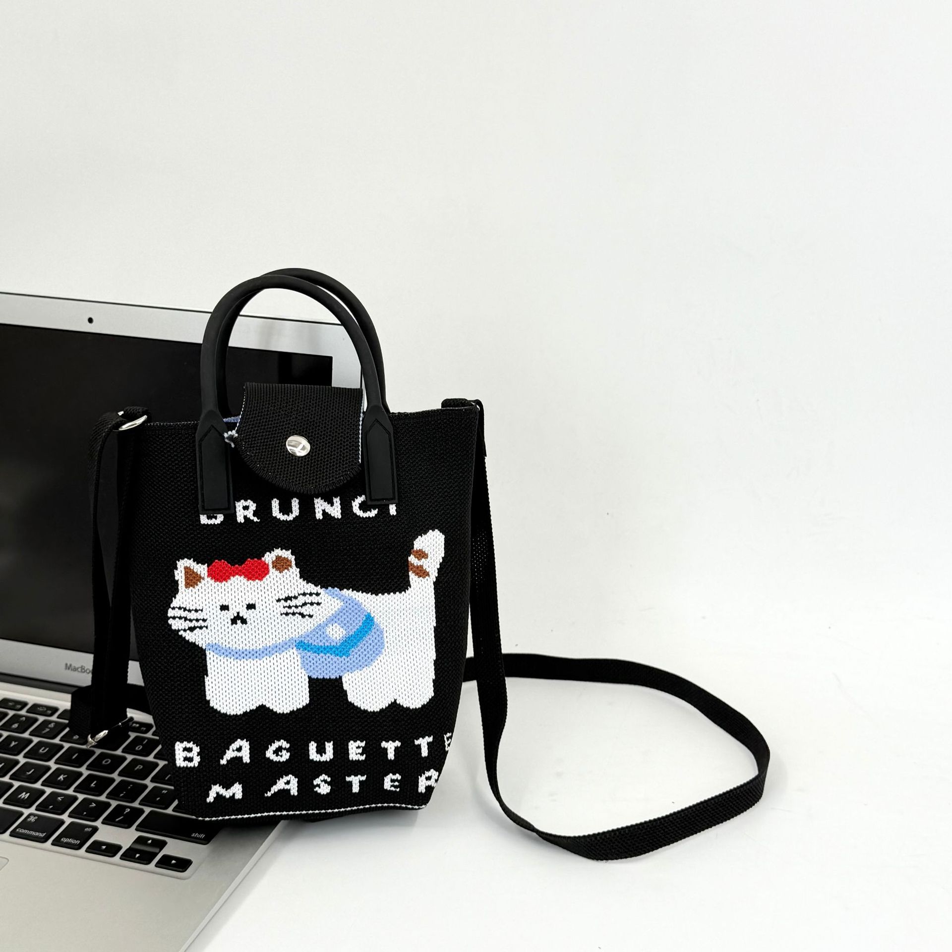 가을과 겨울 새로운 틈새 디자인 귀여운 만화 니트 가방 여성 여행 휴대용 크로스 바디 전화 가방 올 매치 핸드백스토어 가기