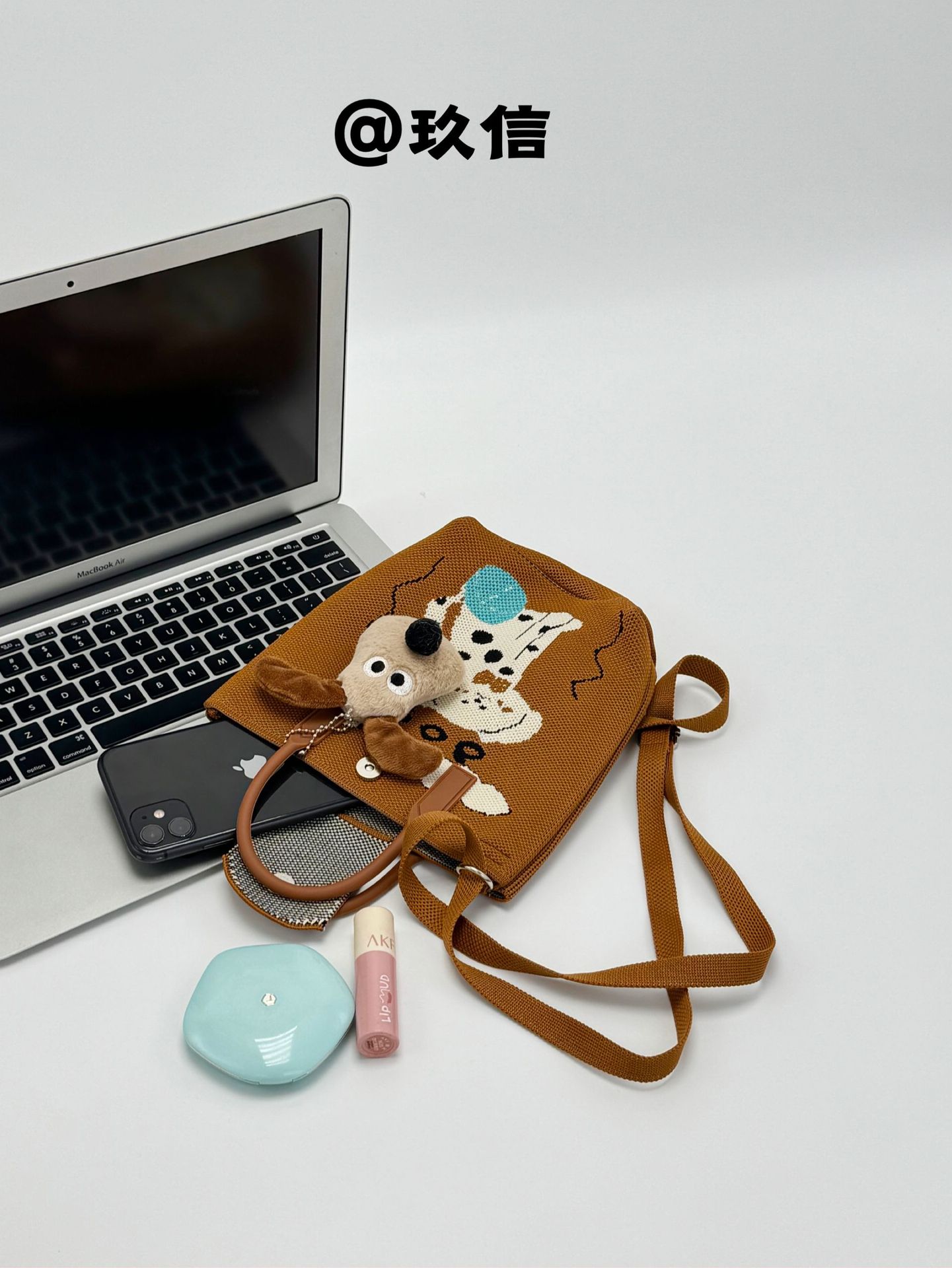 가을과 겨울 새로운 틈새 디자인 귀여운 만화 니트 가방 여성 여행 휴대용 크로스 바디 전화 가방 올 매치 핸드백