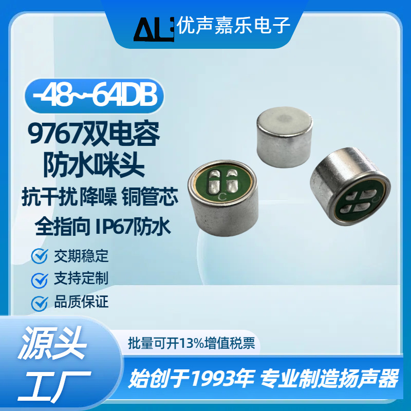 9.7*6.7mm9767 마이크 헤드 솔더 조인트 IP67 방수 듀얼 커패시터 간섭 방지 마이크 마이크 송신기스토어 가기