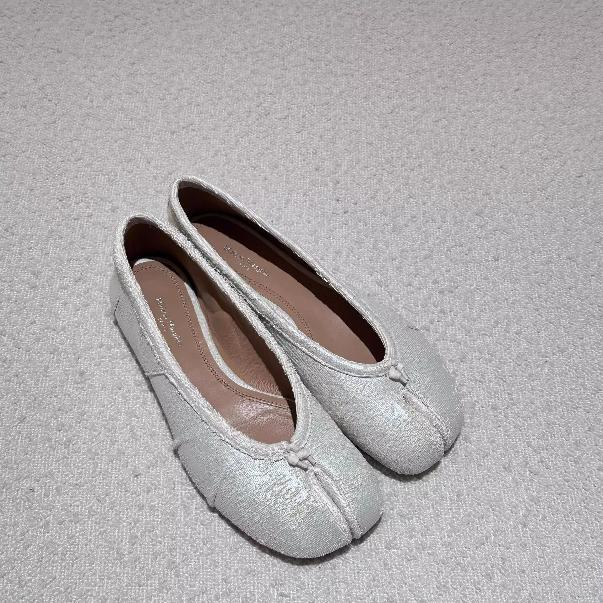 양가죽 새틴 발가락 신발 여성용 돼지 발 신발 주름 플랫 신발 게으른 가죽 돼지의 발 신발 슬립 온 발레 슈즈