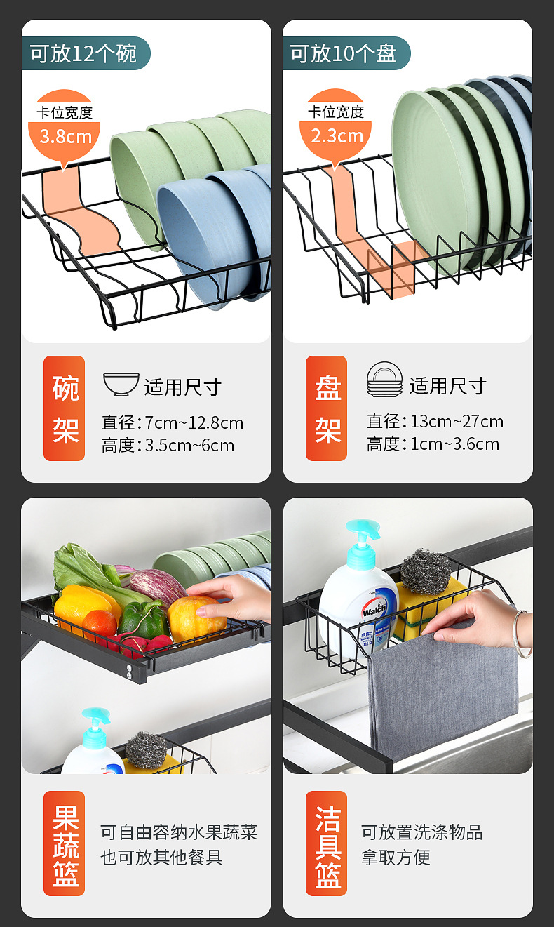 주방 싱크 저장 랙 요리 배수 랙 접시 세척 싱크 야채 분지 풀 요리 다기능 저장 랙 카운터 탑스토어 가기