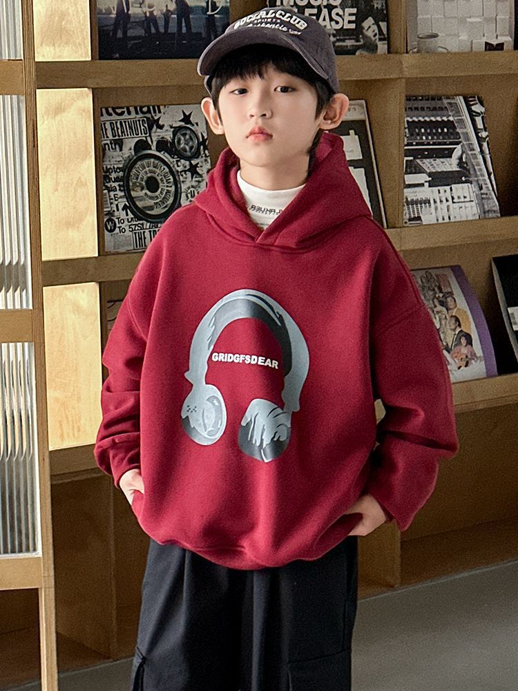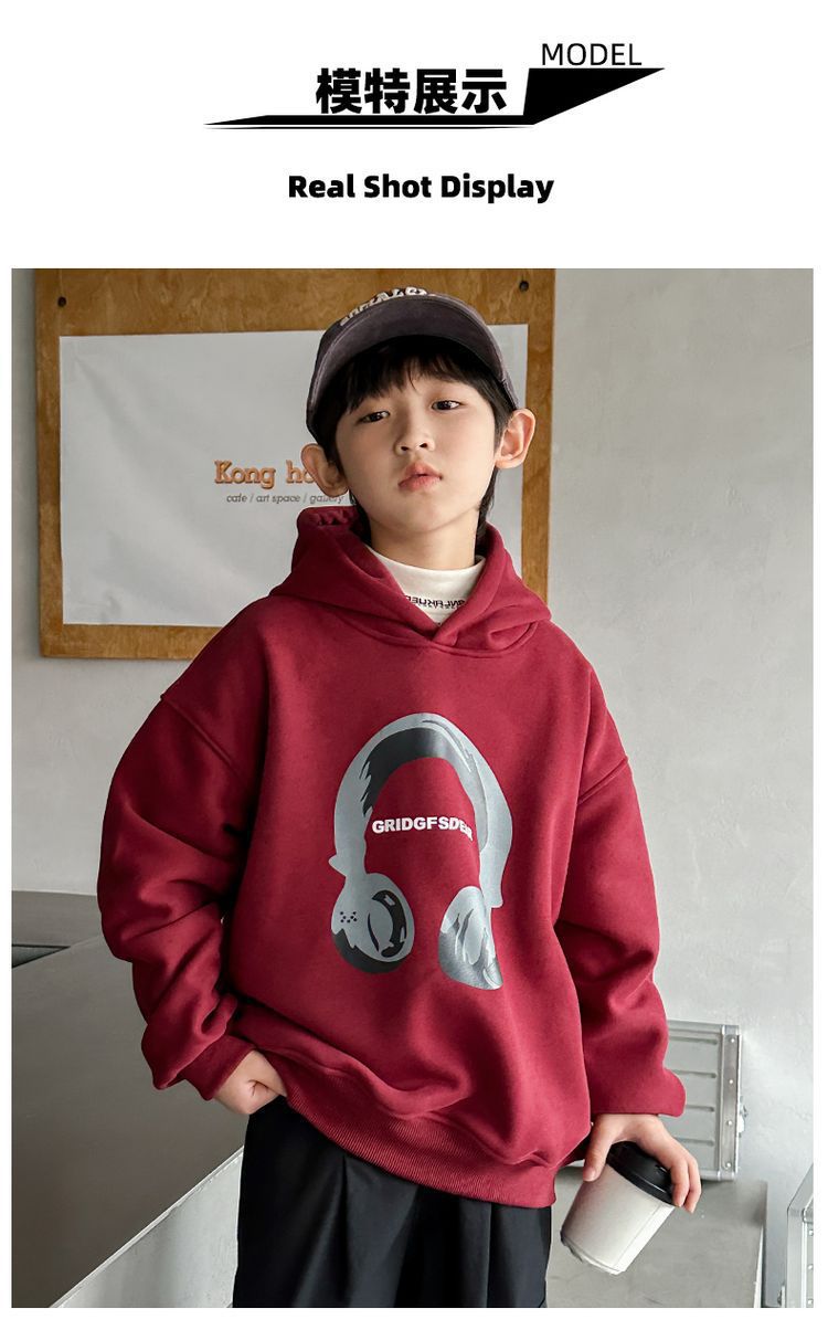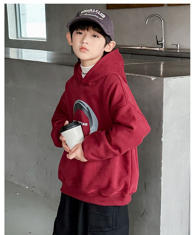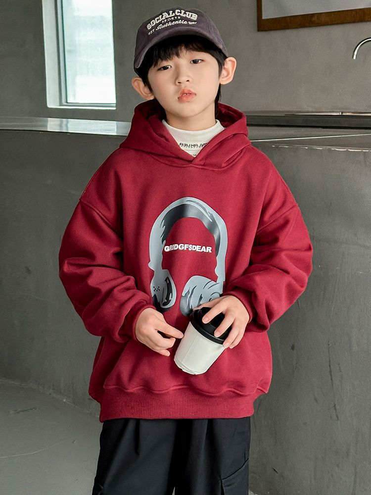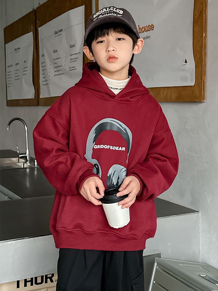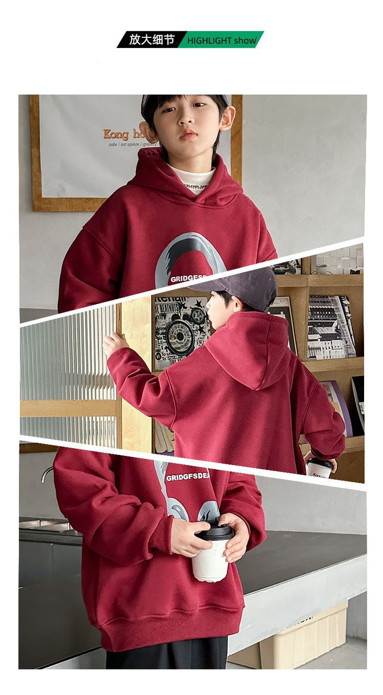 소년 '후드 프린트 스웨터 가을과 겨울 유행 한국식 풀오버 기모 두꺼운 소년 탑스토어 가기