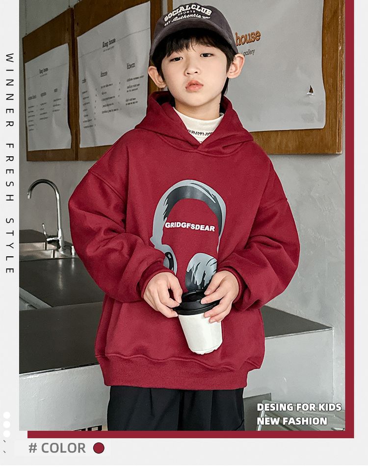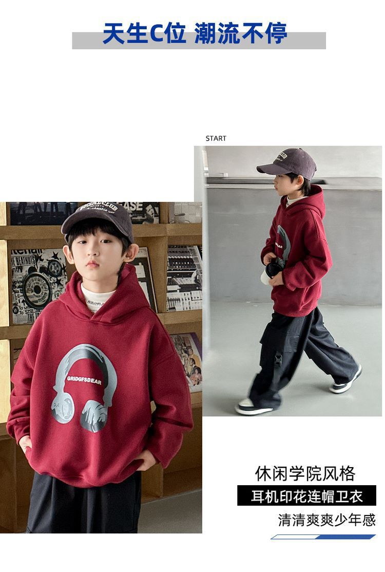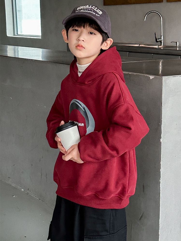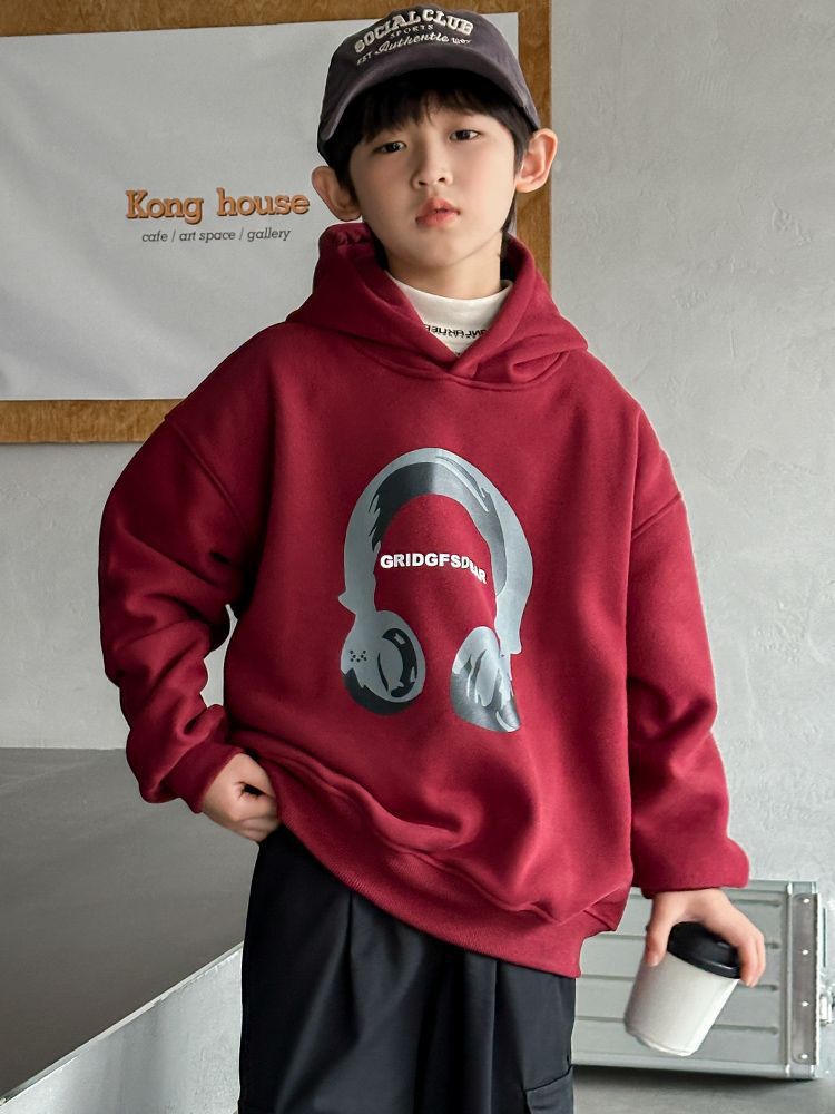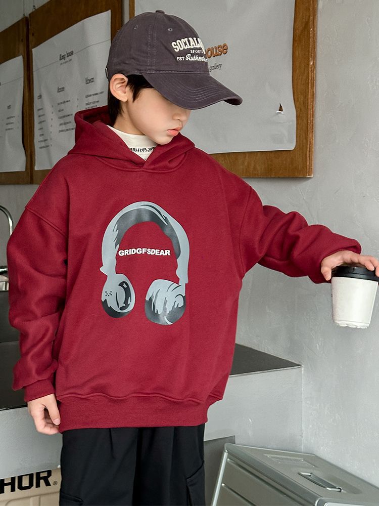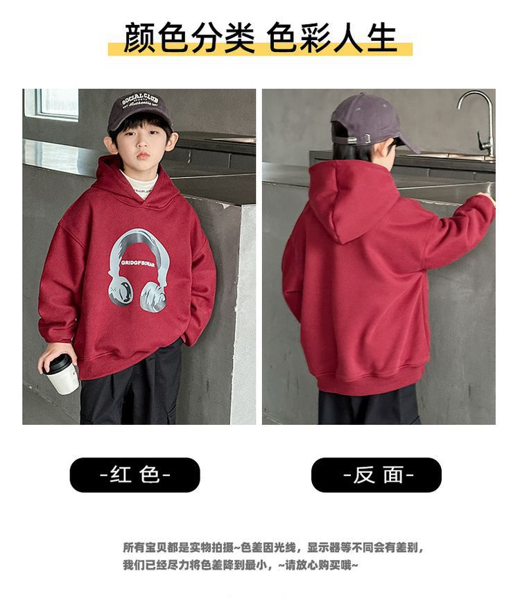 소년 '후드 프린트 스웨터 가을과 겨울 유행 한국식 풀오버 기모 두꺼운 소년 탑스토어 가기