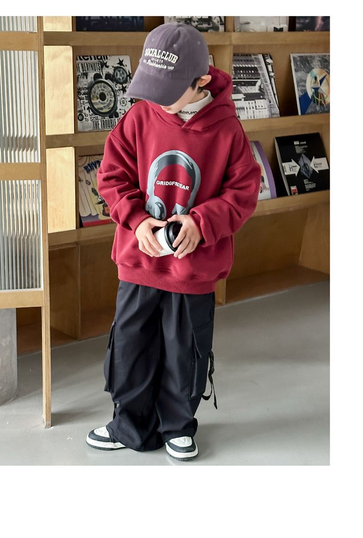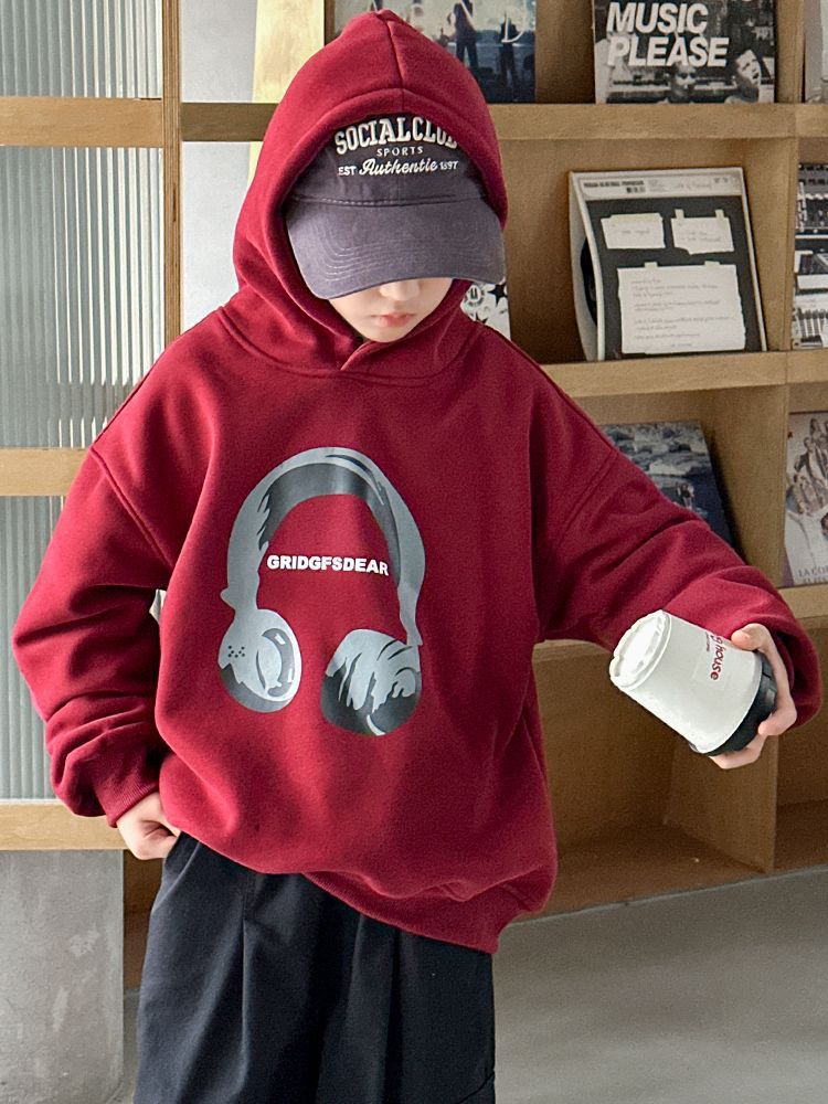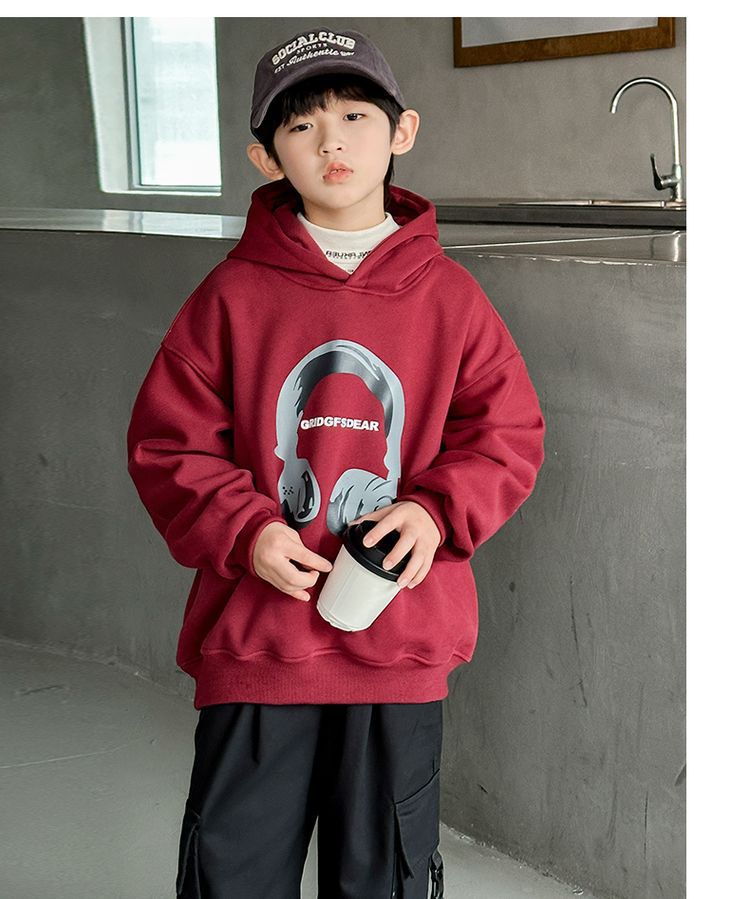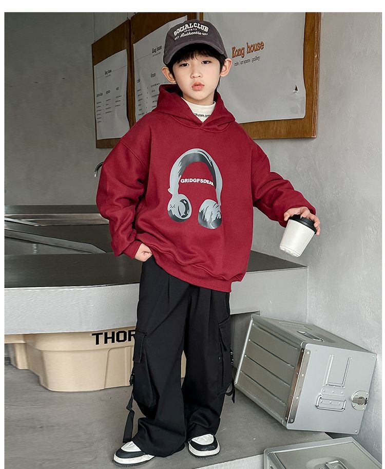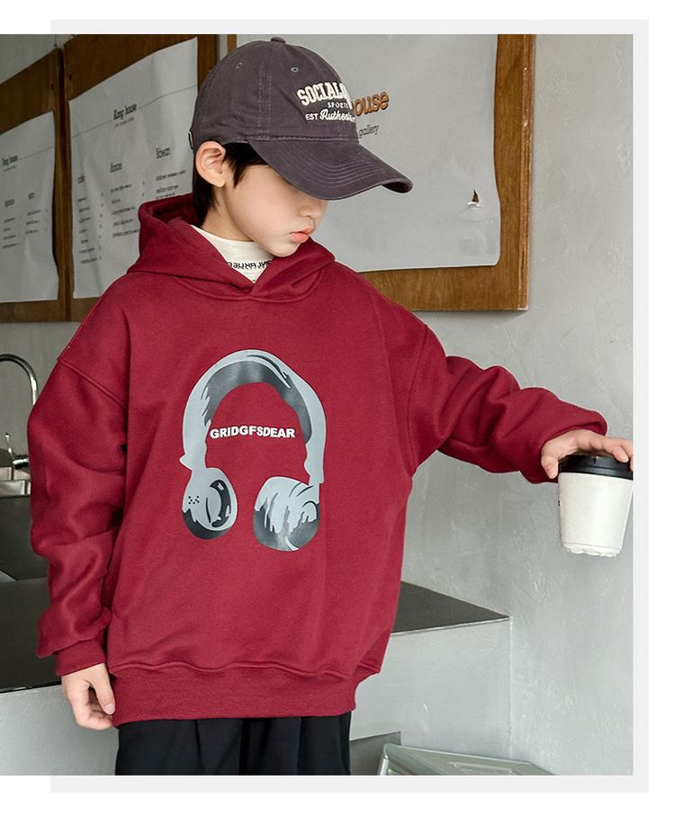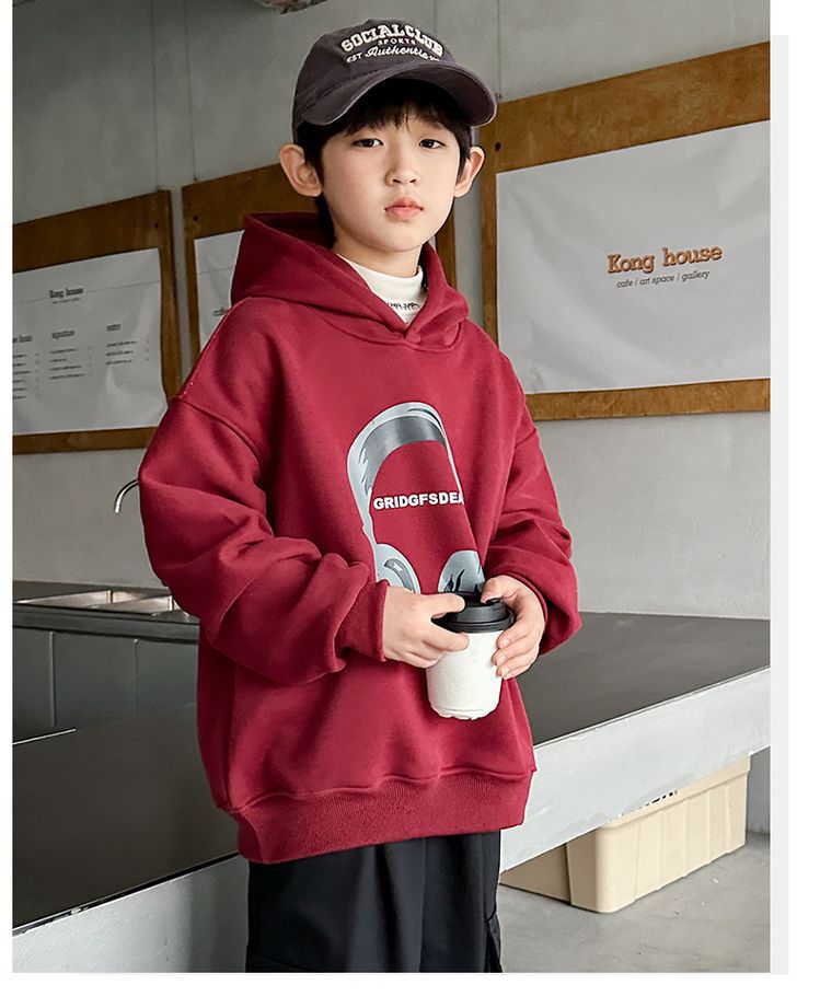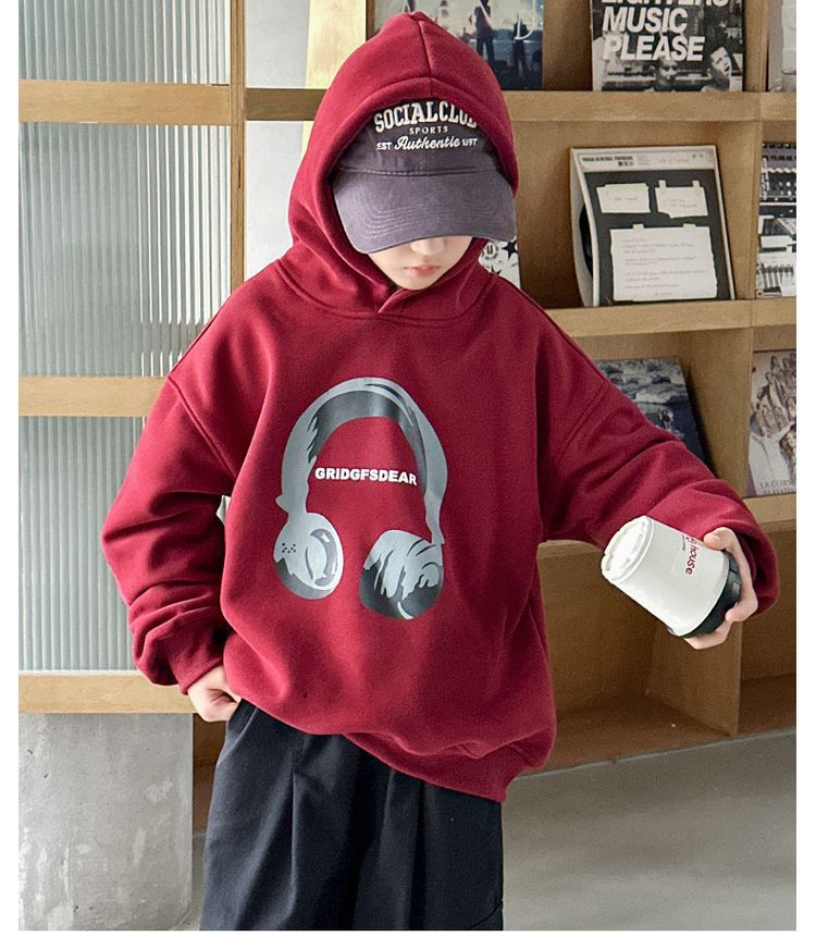 소년 '후드 프린트 스웨터 가을과 겨울 유행 한국식 풀오버 기모 두꺼운 소년 탑스토어 가기