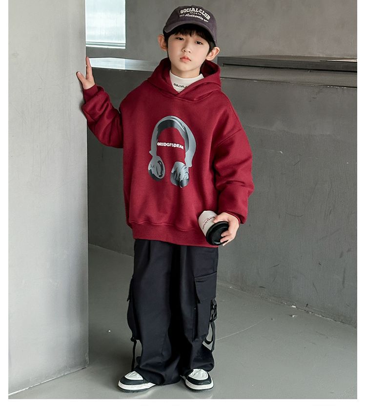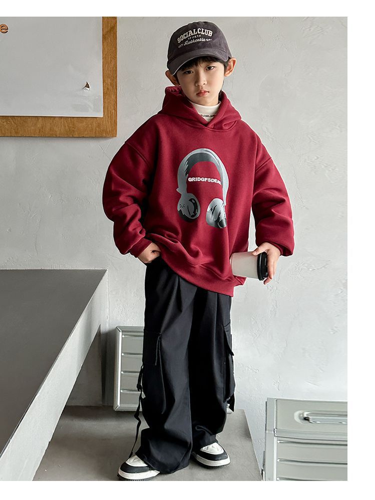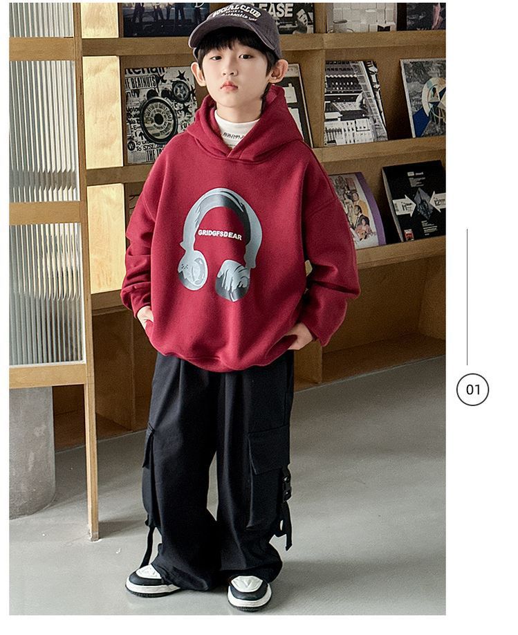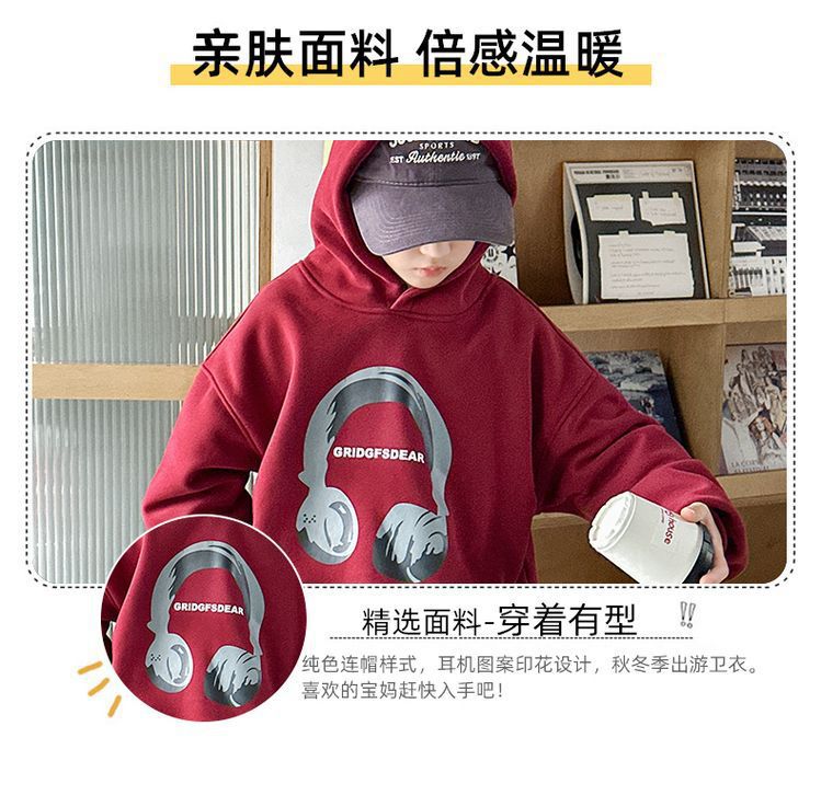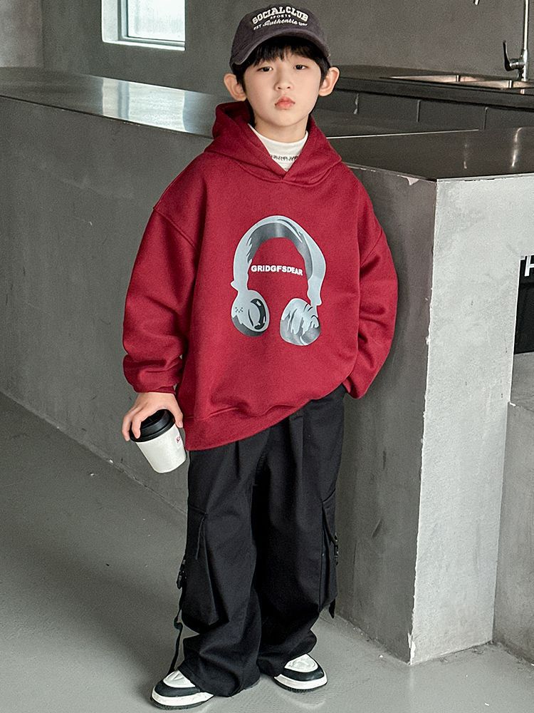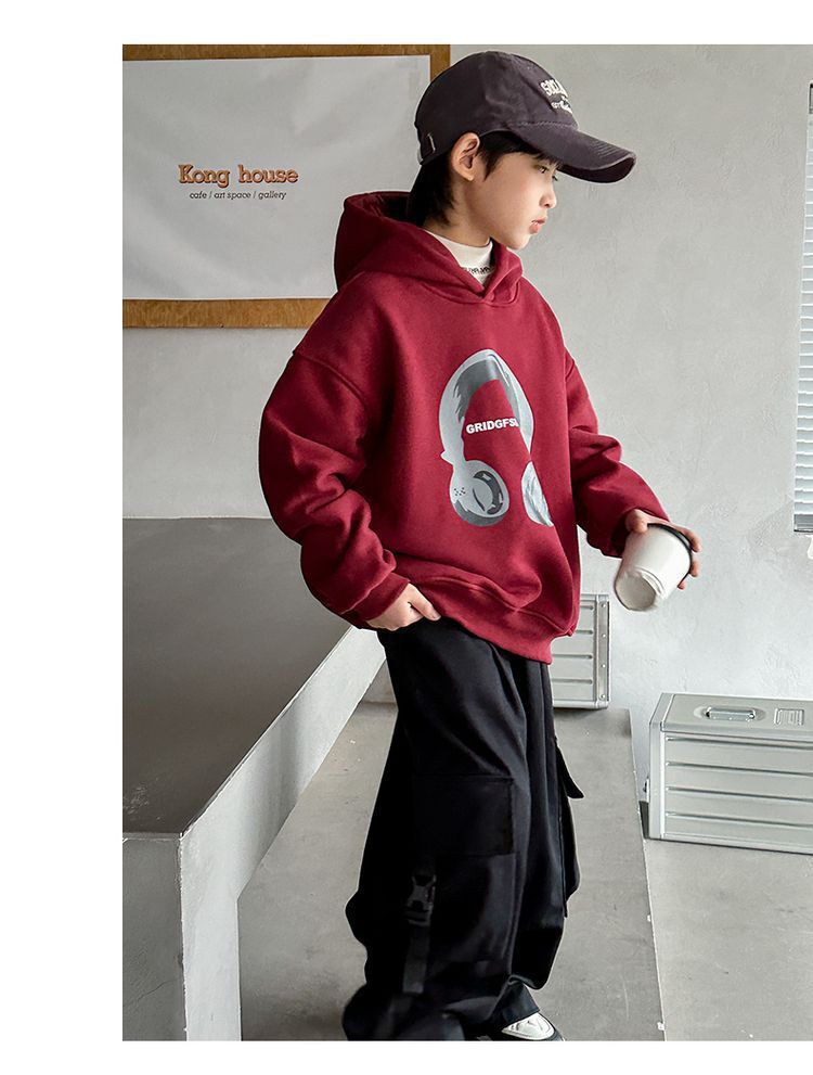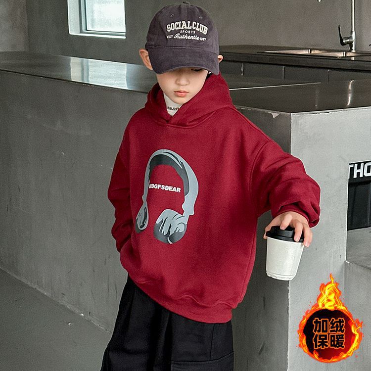 소년 '후드 프린트 스웨터 가을과 겨울 유행 한국식 풀오버 기모 두꺼운 소년 탑