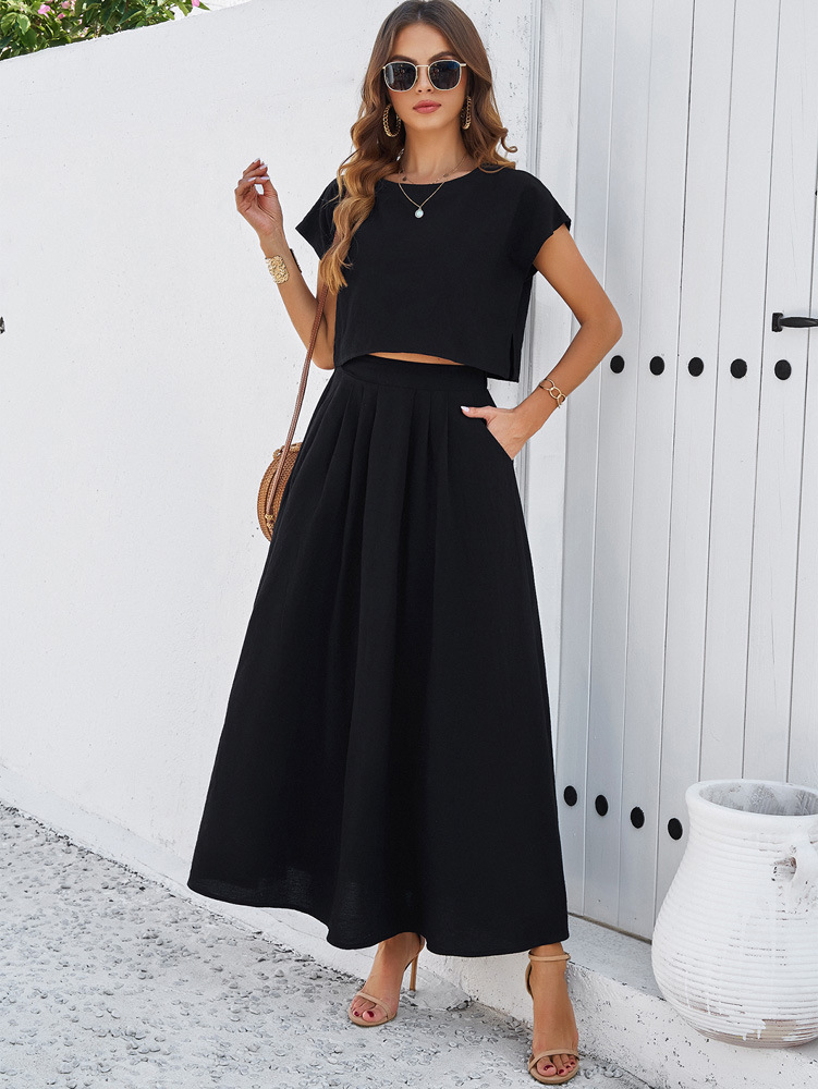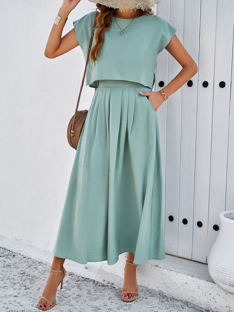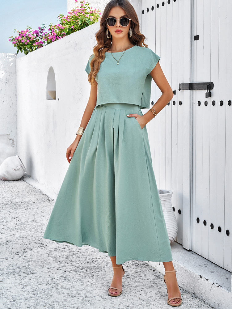 Di Yun 국경 여성 의류 아마존 유럽과 미국 2024 봄과 여름 기질 레저 단색 민소매 조끼 탑 원피스 세트