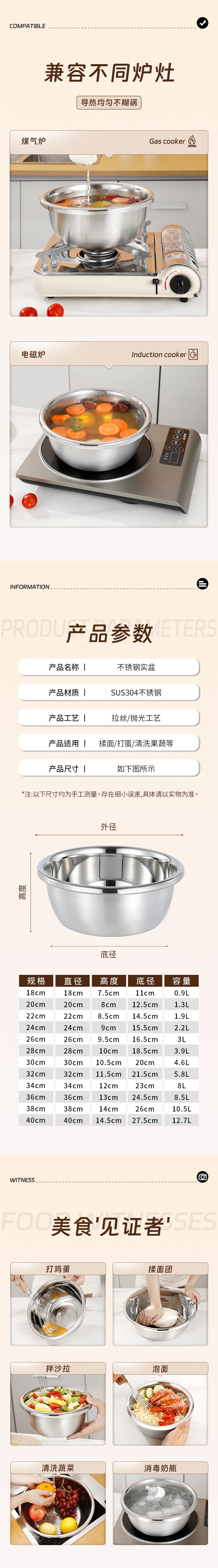 스테인레스 스틸 분지 304 식품 등급 가정용 그릇 주방 작은 분지 야채 세척 분지 수프 쌀 분지 배수 바구니 대형 철 분지