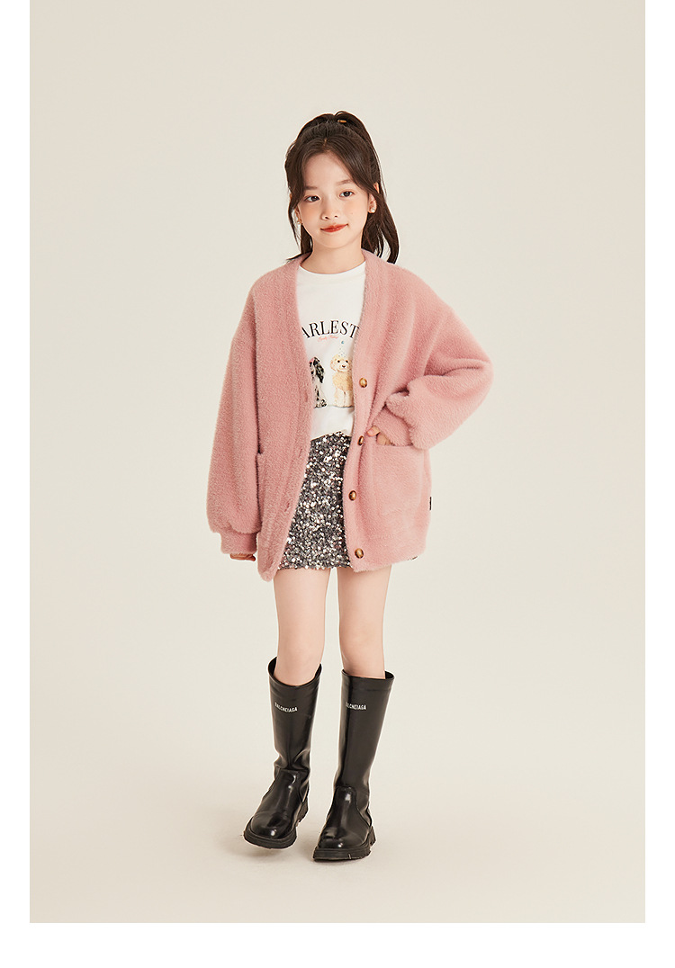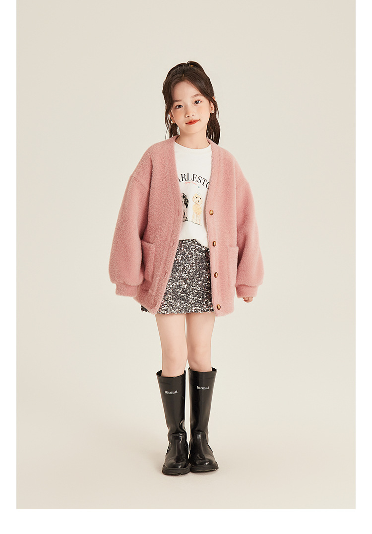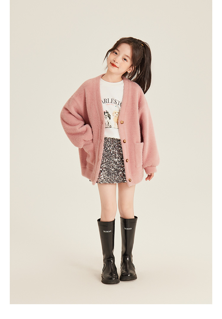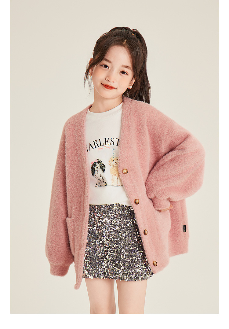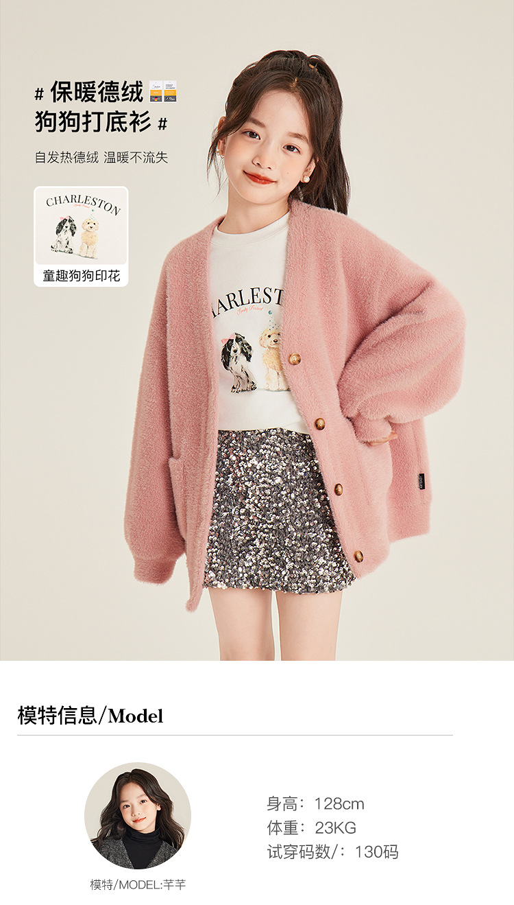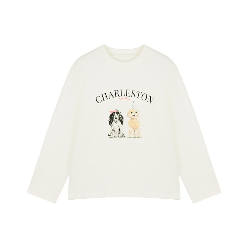 Amybaby 소녀의 최고 겨울 2024 새로운 두꺼운 벨벳 따뜻한 만화 개 인쇄 긴 소매 티셔츠