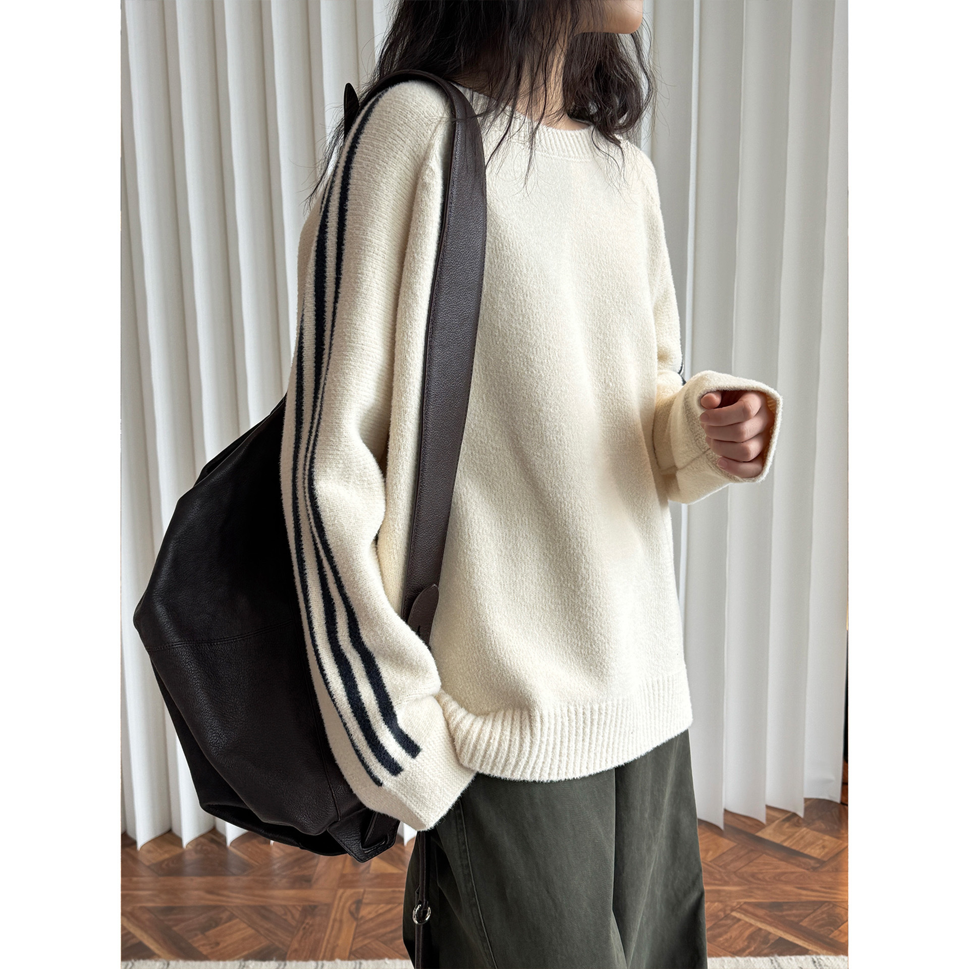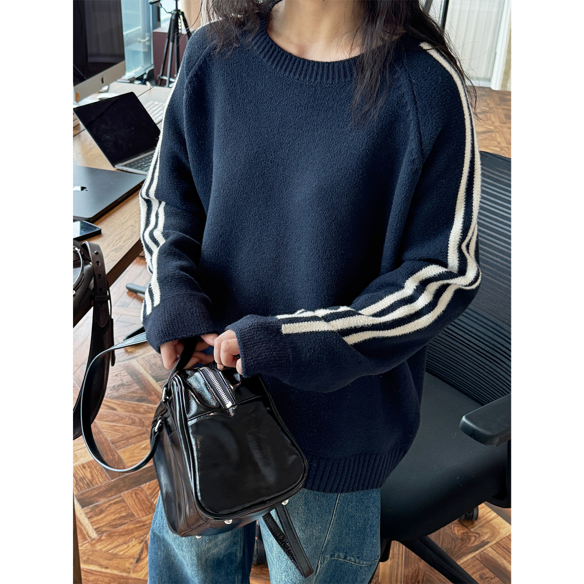 루푸 이른 봄 새로운 한국식 간단한 스포티 스트라이프 풀오버 스웨터, 여성용 스토클 슬림 핏 캐주얼 탑스토어 가기