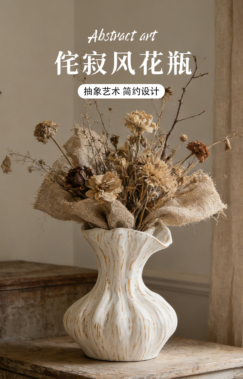 새로운 스타일 흰색 창조적 인 세라믹 꽃병 고급 감각 예술 꽃 배열 거실 바탕 화면 간단한 장식 장식품 국경