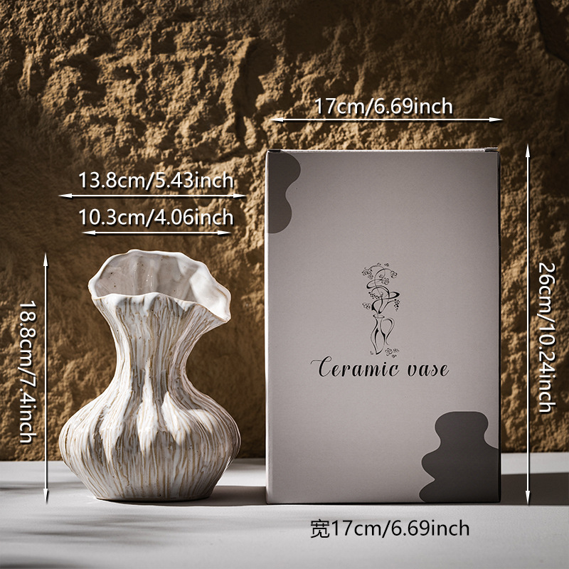 새로운 스타일 흰색 창조적 인 세라믹 꽃병 고급 감각 예술 꽃 배열 거실 바탕 화면 간단한 장식 장식품 국경스토어 가기