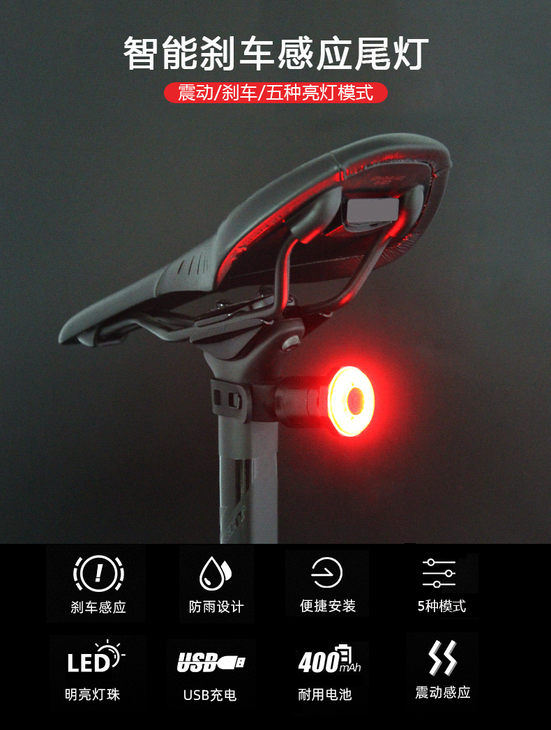 자전거 스마트 센서 브레이크 테일 라이트 USB 충전 로드 바이크 산악 자전거 브라더스 경고등 초고휘도