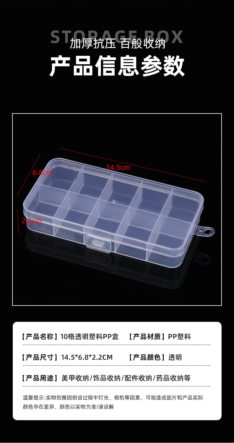 공장 10 투명 플라스틱 PP 상자 도매 고정 한 조각 버클 보석 구슬 생선 후크 나사 저장 상자