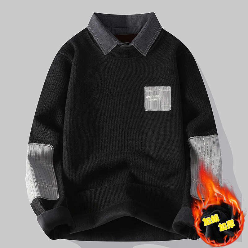 국경 간 대외 무역 세대 남성 스웨터 새로운 벨벳 스웨터 남성 기모 두꺼운 셔츠 칼라 스웨터 남성스토어 가기