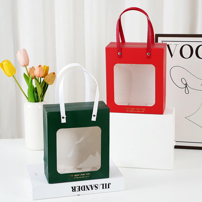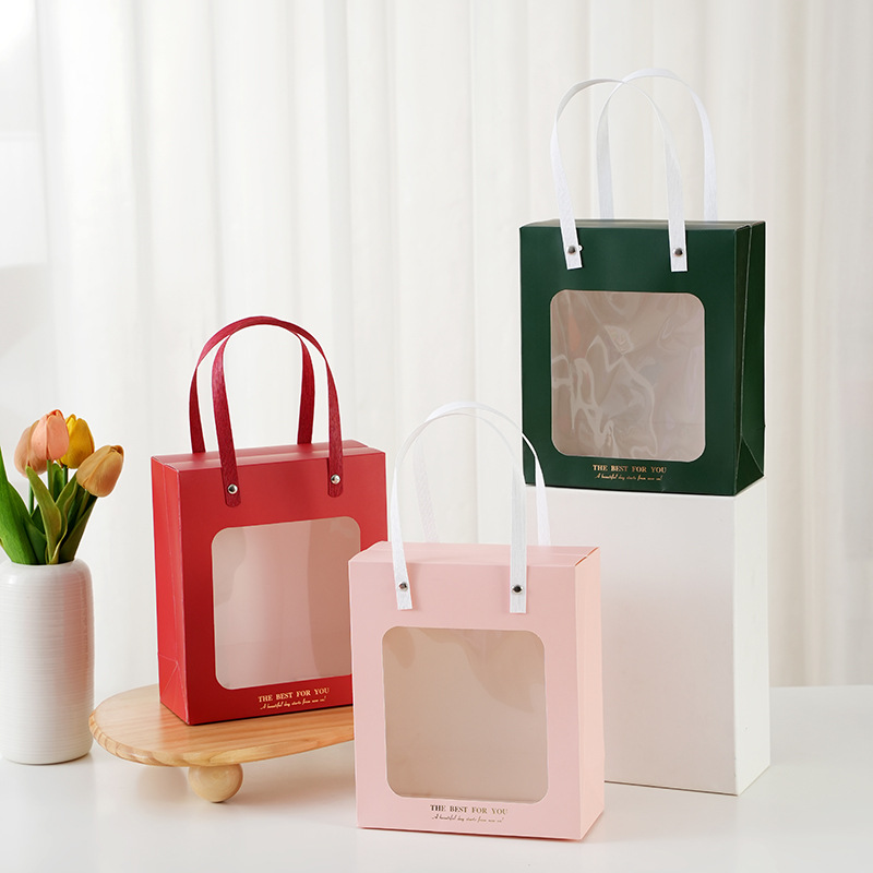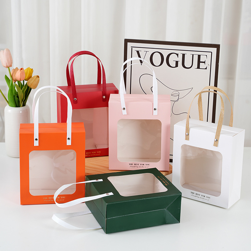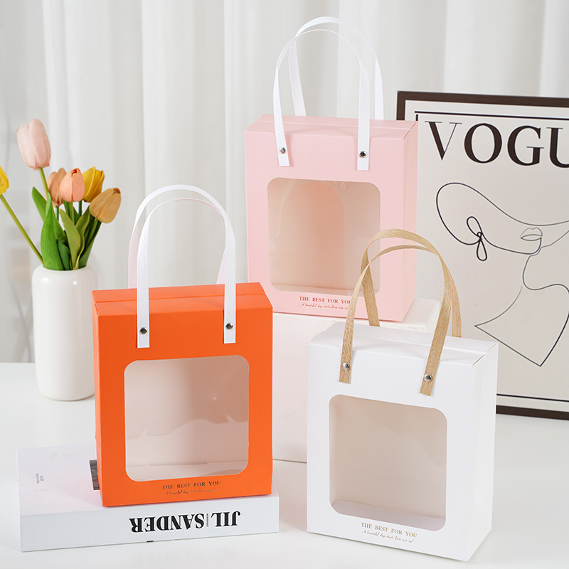 창 가방 리벳 버클 투명 창 핸드백 창조적 인 선물 창 종이 가방 절묘한 화장품 핸드백