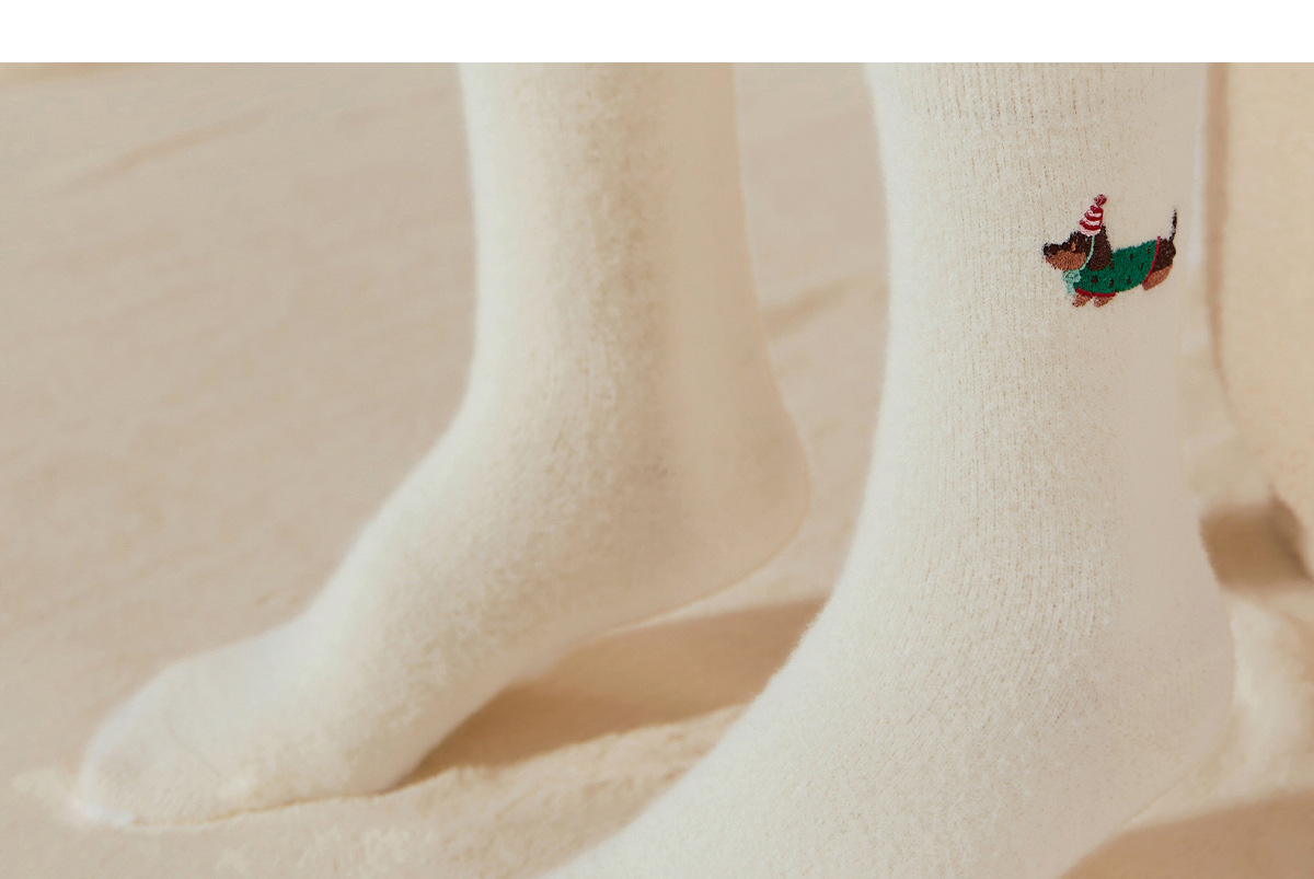 겨울 두꺼운 양말 어린이 호주 벨벳 따뜻한 중간 튜브 귀여운 닥스 훈트 자수 여성 양말 도매 뼈없는 바닥 양말스토어 가기