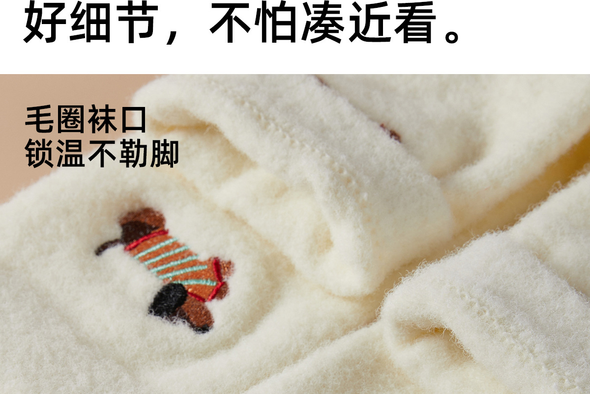 겨울 두꺼운 양말 어린이 호주 벨벳 따뜻한 중간 튜브 귀여운 닥스 훈트 자수 여성 양말 도매 뼈없는 바닥 양말