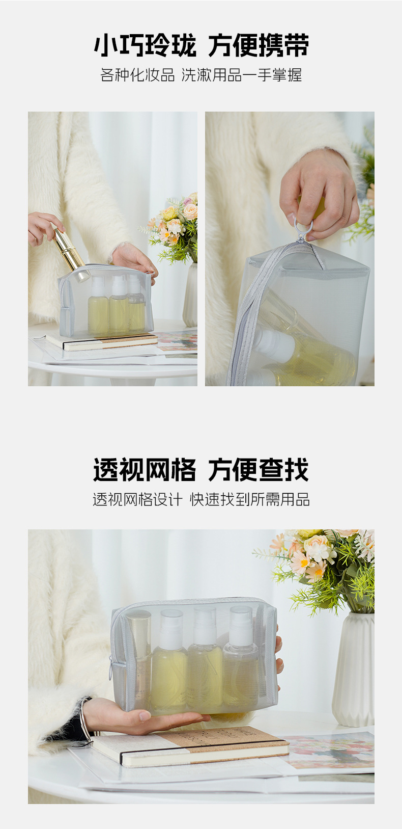 메쉬 가방 화장품 가방 여성용 소형 립스틱 가방 통기성 세면도구 보관 가방 휴대용 보관 가방 잡화 보관 소형 가방스토어 가기