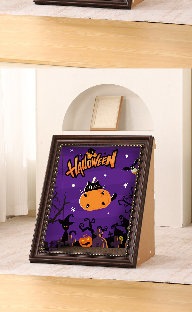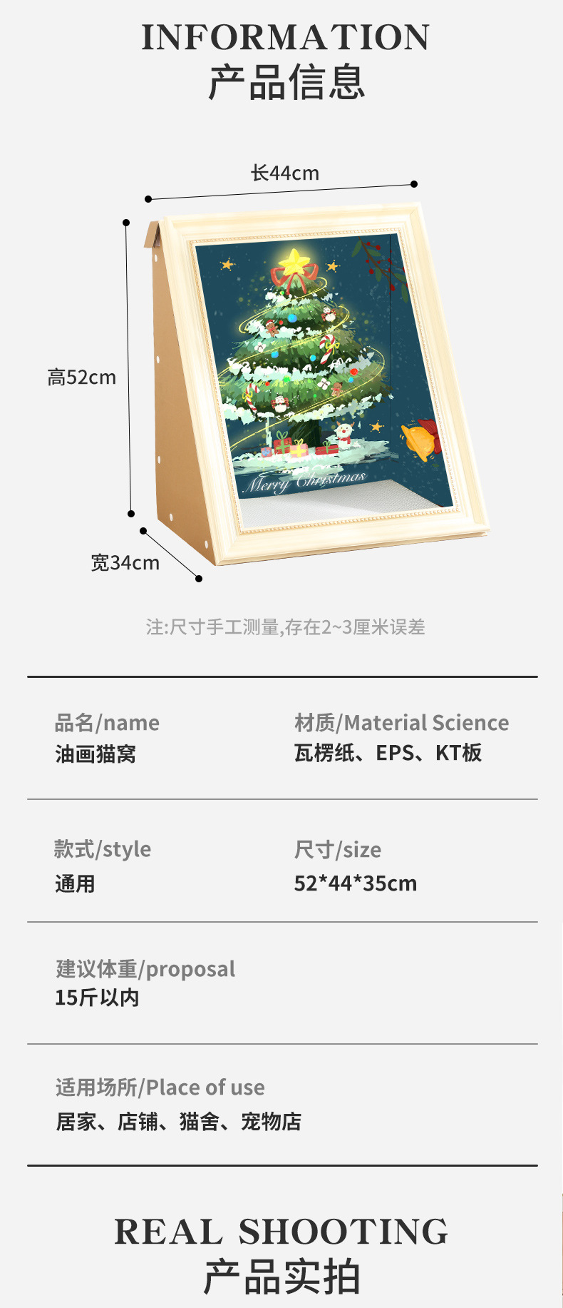特点4:相框猫窝采用三角结构 能有效防止翻塌 给爱宠打造一个安静的小世界。专属定制加密猫抓板,让猫咪尽情的释放活力。