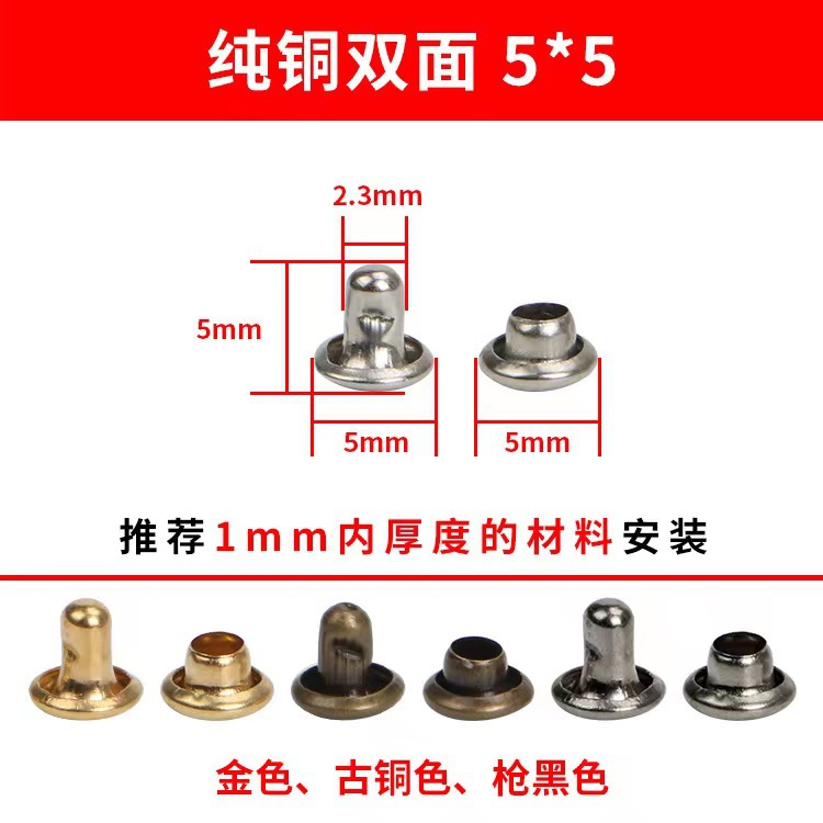 순수 구리 양면 네일 가죽 가방 네일 리벳 라운드 캡 더블 캡 네일 DIY 의류 액세서리 수하물 액세서리