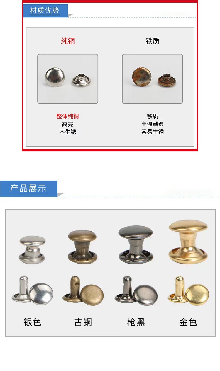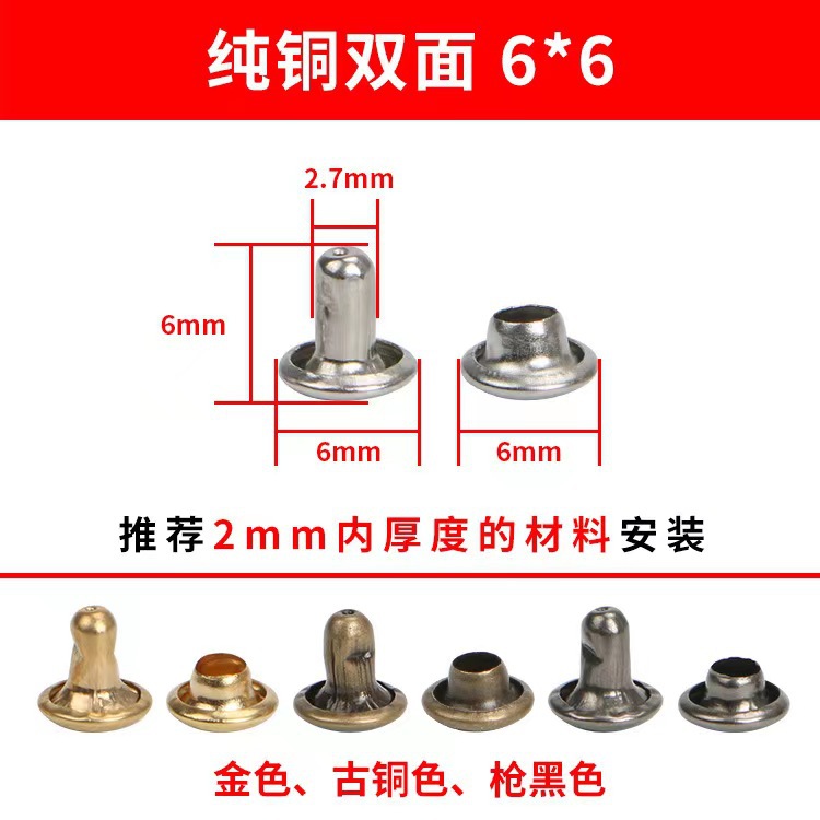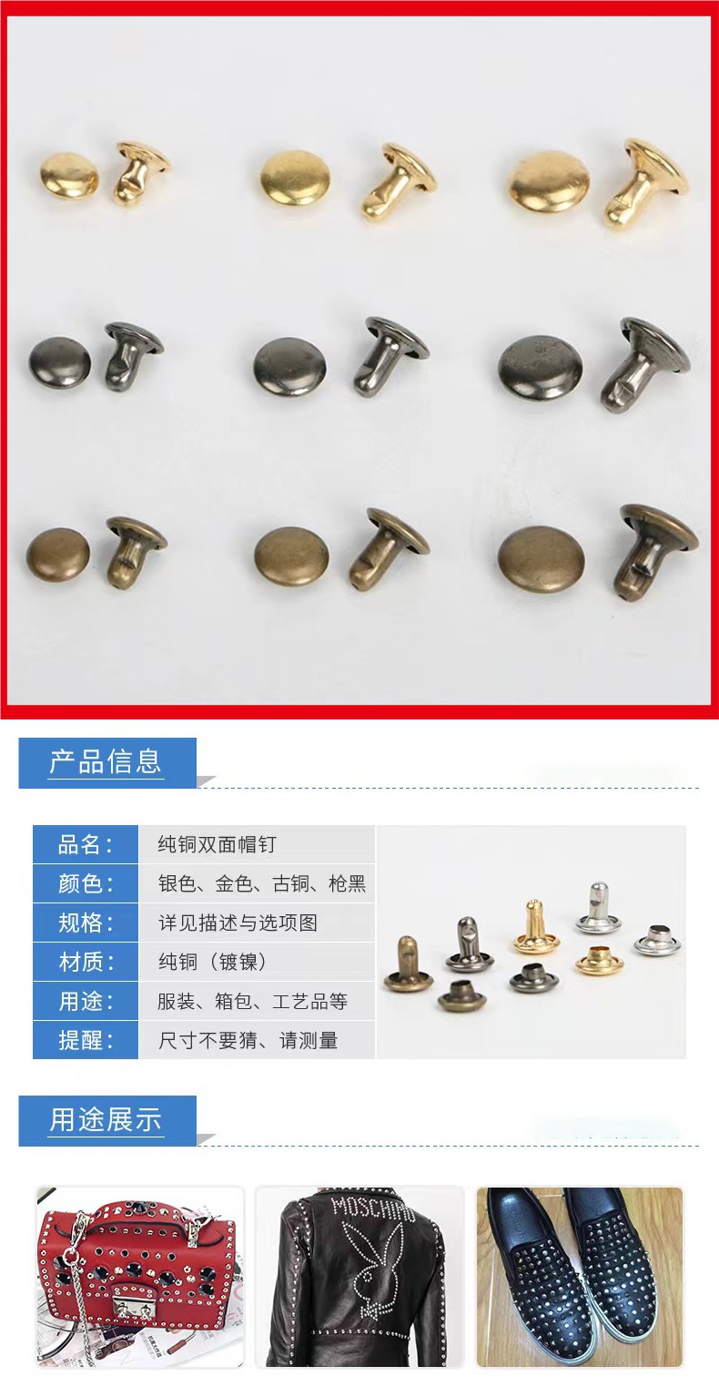 순수 구리 양면 네일 가죽 가방 네일 리벳 라운드 캡 더블 캡 네일 DIY 의류 액세서리 수하물 액세서리스토어 가기