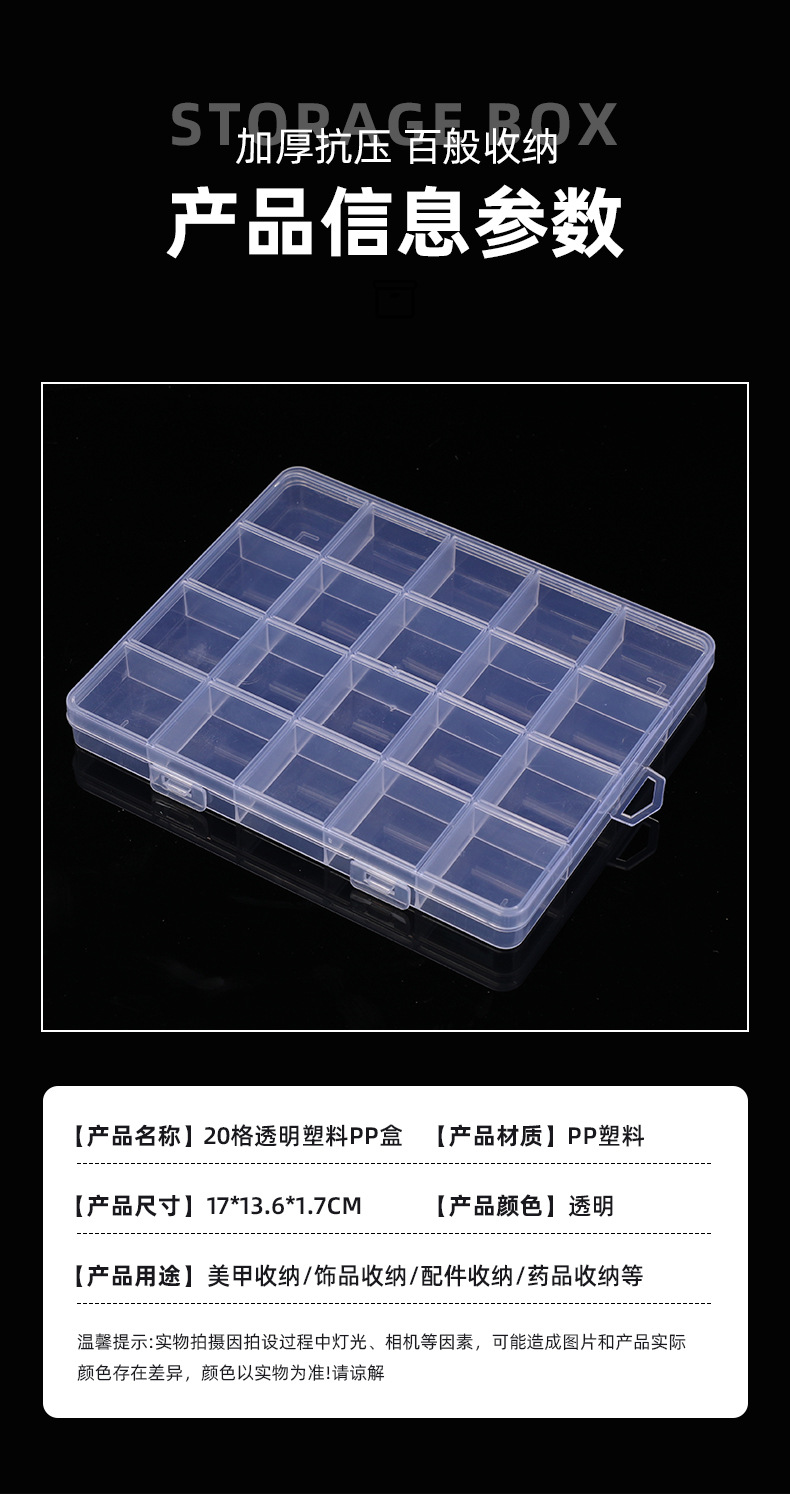 공장 도매 플라스틱 pp 저장 상자 뚜껑 20 그리드 멀티 그리드 하드웨어 부품 알약 보석 저장 상자