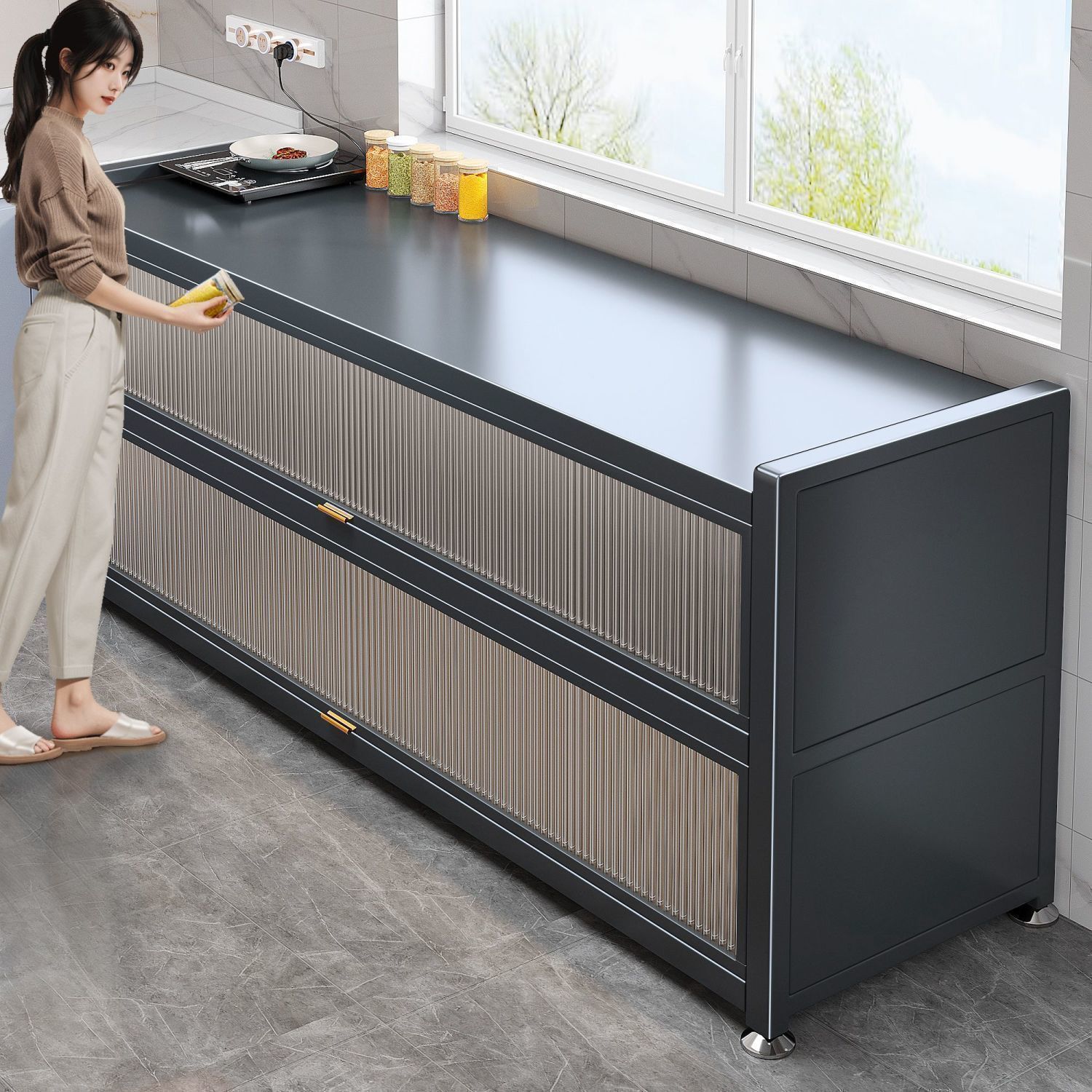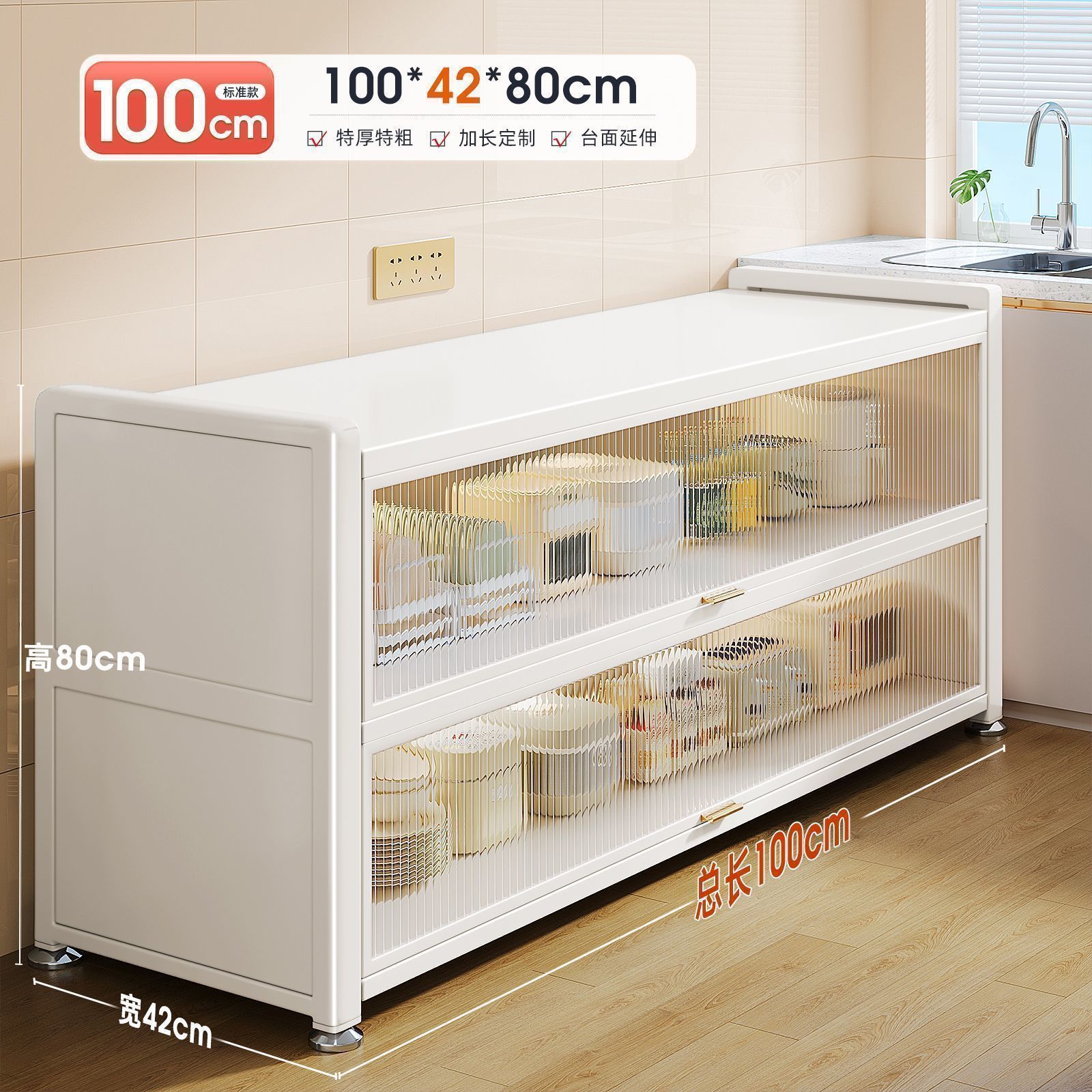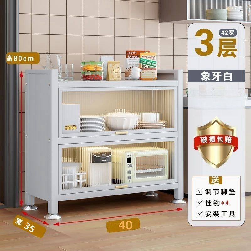 새로운 주방 이중층 보관 캐비닛 측면 그릇 캐비닛 다기능 전자 레인지 보관 캐비닛 바닥 랙
