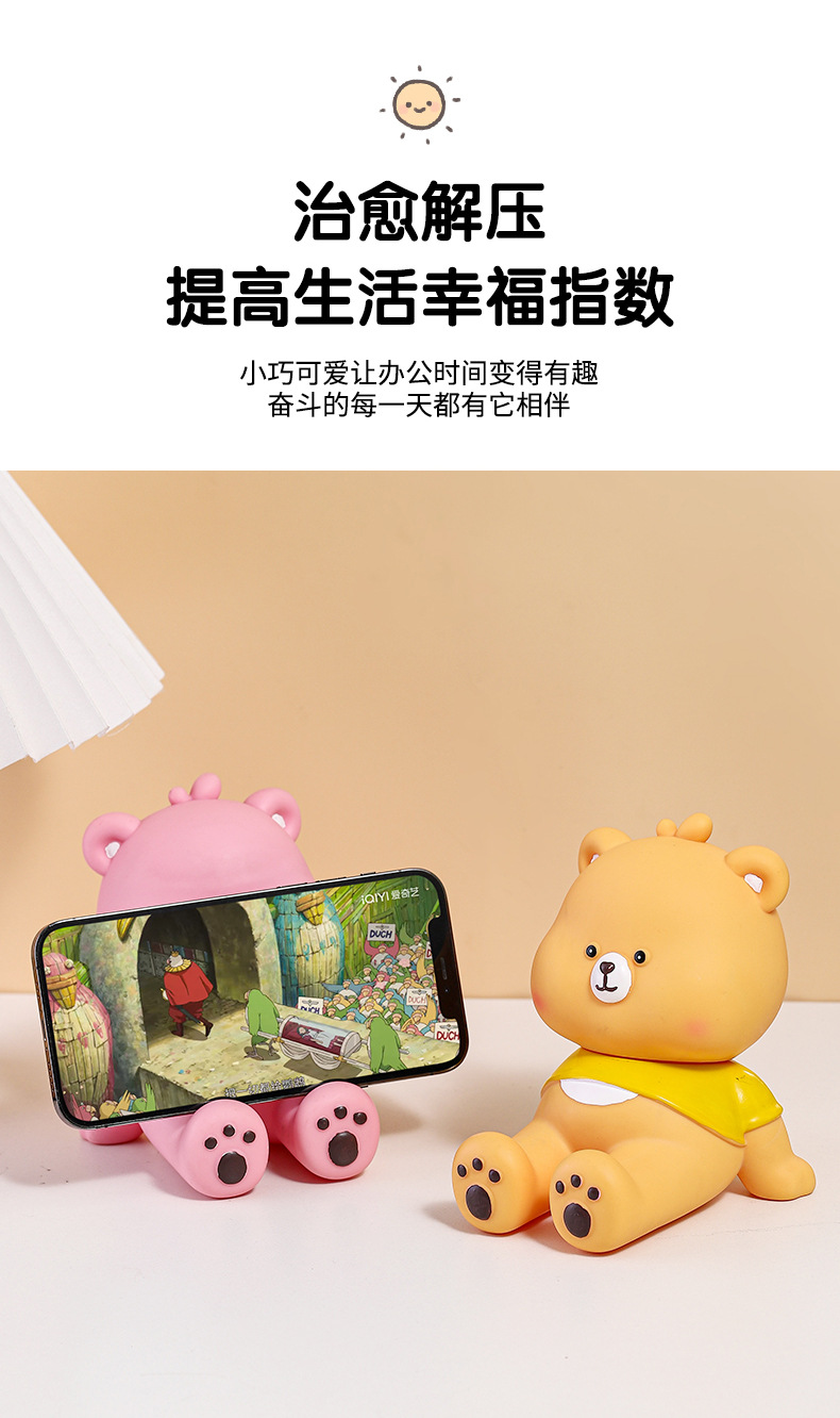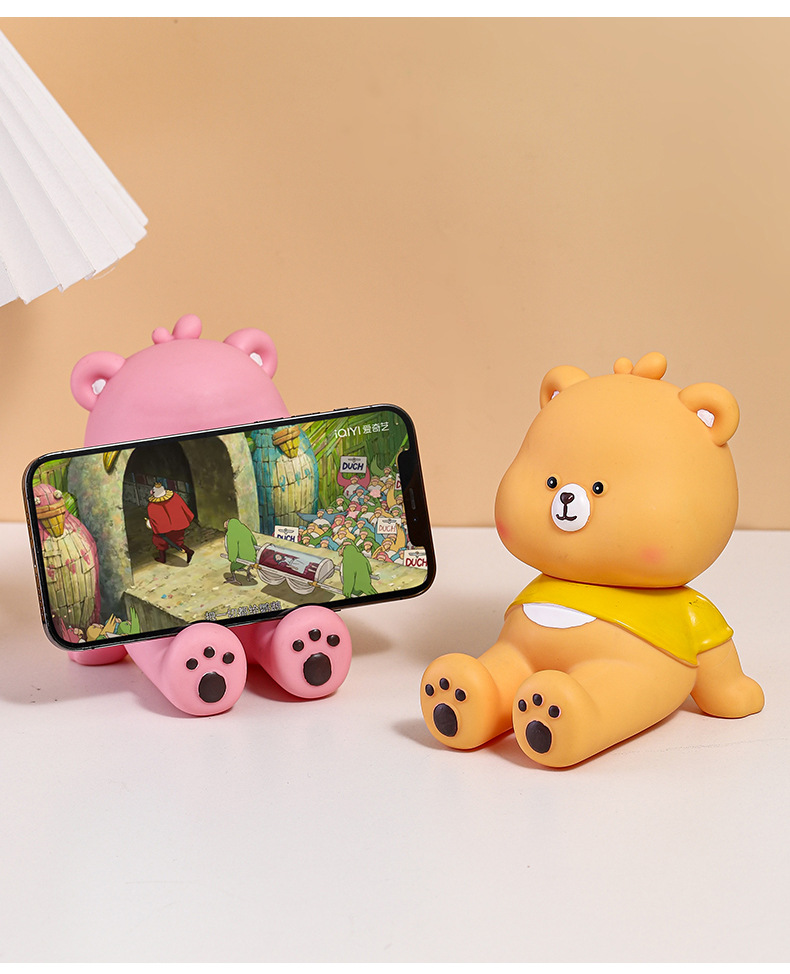구이 빙 개 곰 휴대 전화 브래킷 게으른 남자 휴대 전화 홀더 수제 움직일 수있는 모델 귀여운 데스크탑 인형 선물