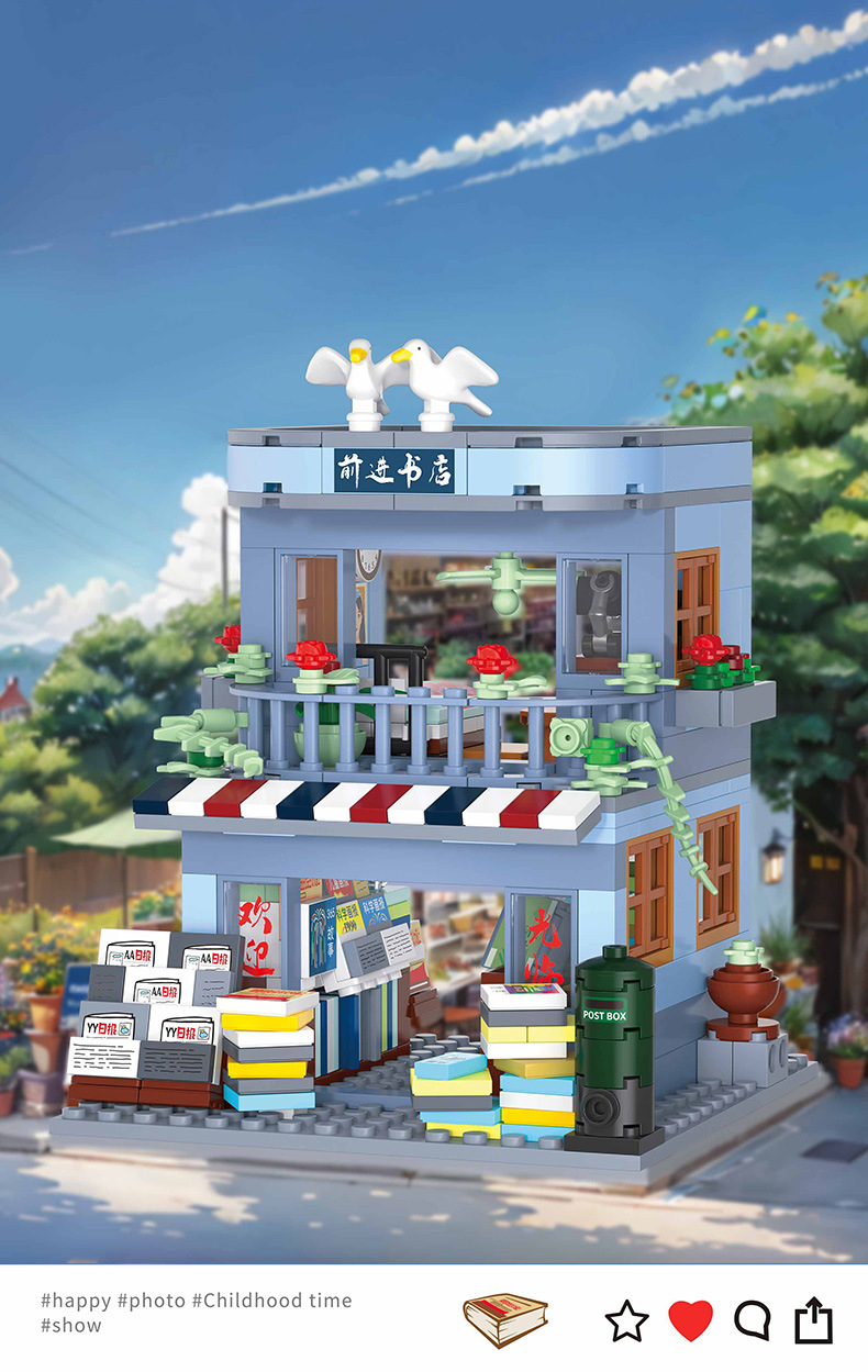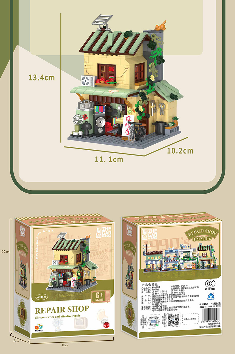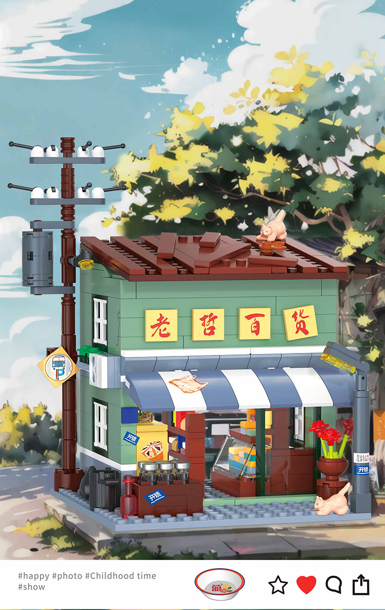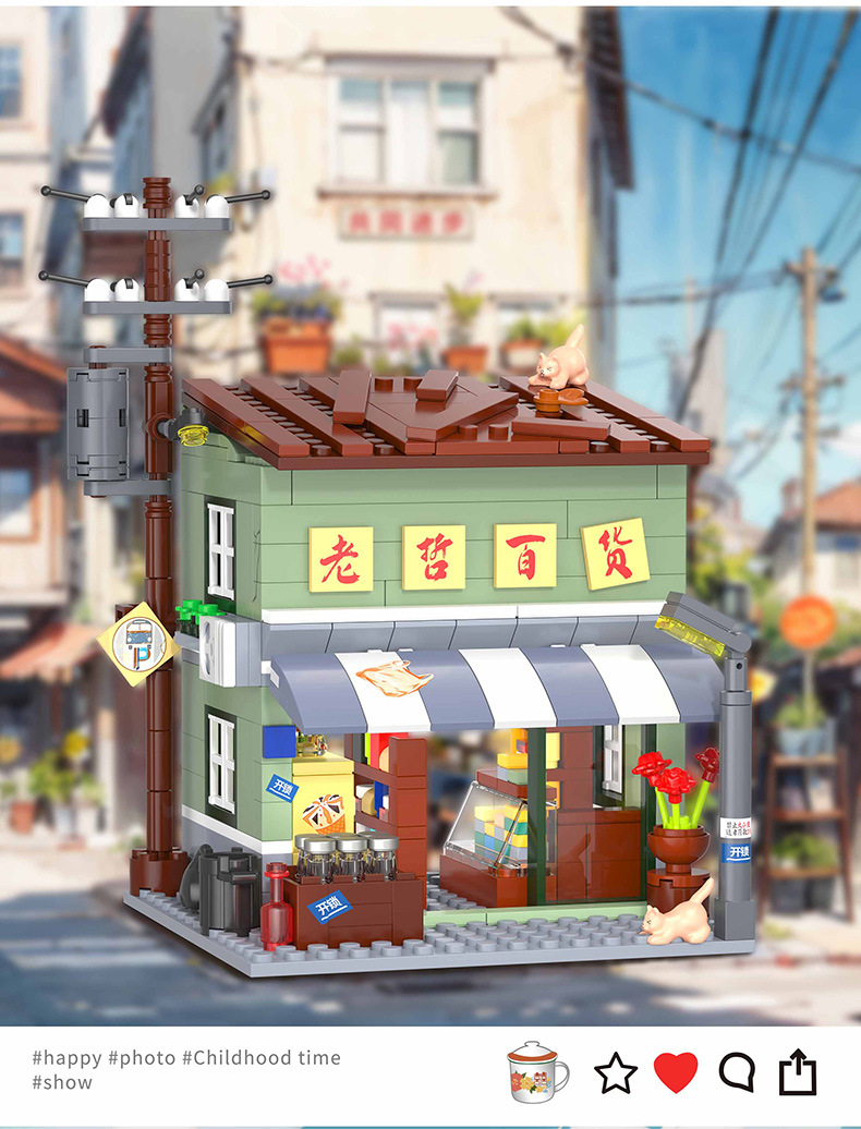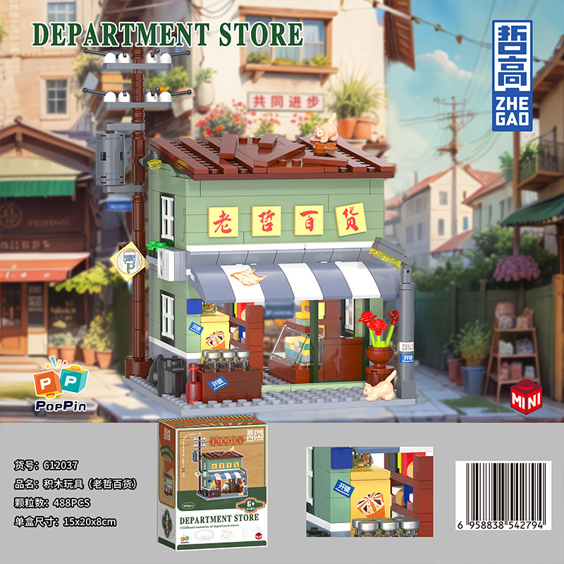 Zhegao 612037-612040 레트로 스트리트 뷰 추억 빌딩 퍼즐 빌딩 블록 어린이 조립 장난감스토어 가기