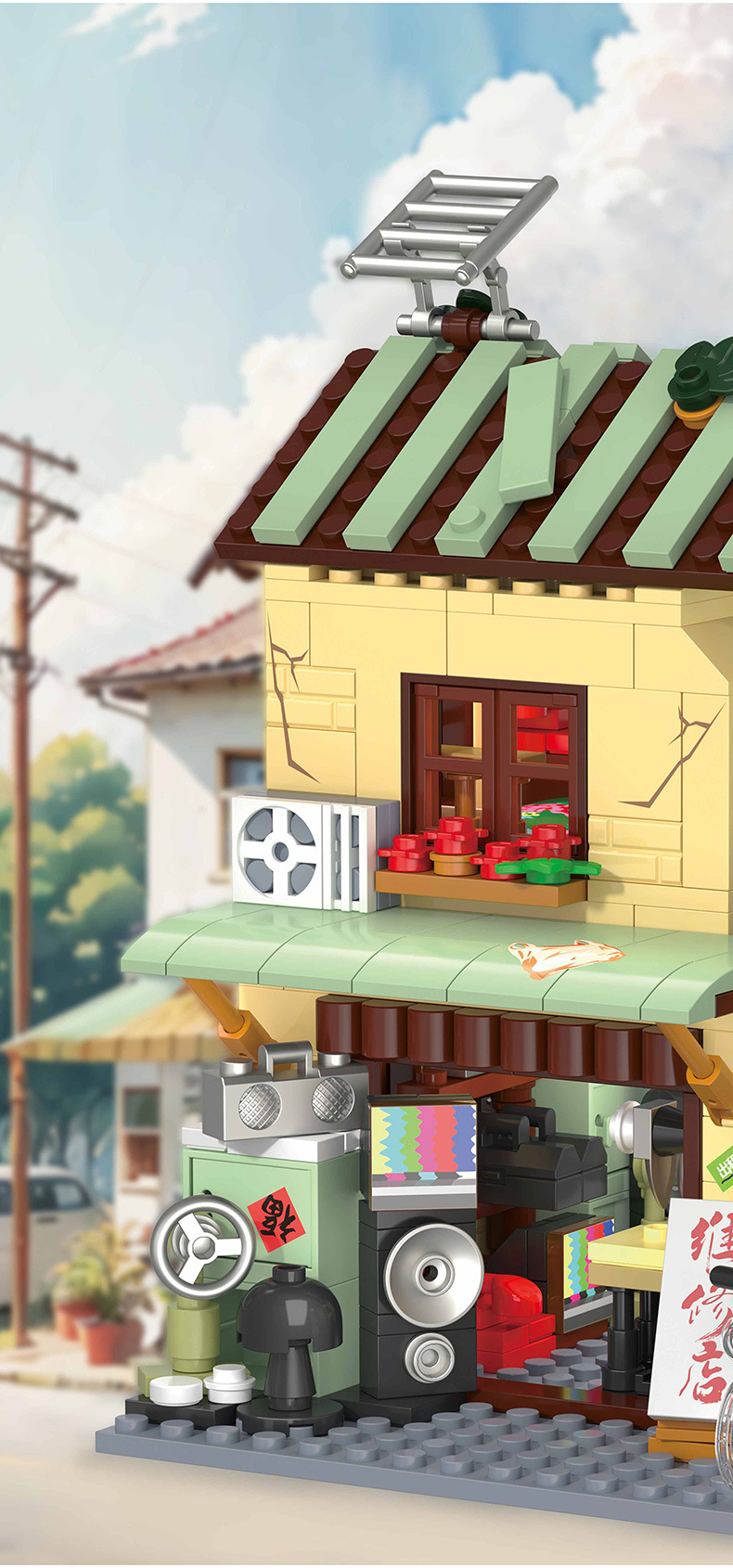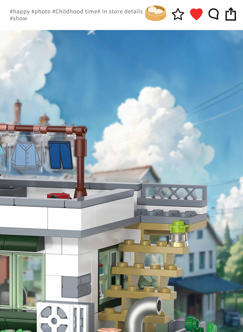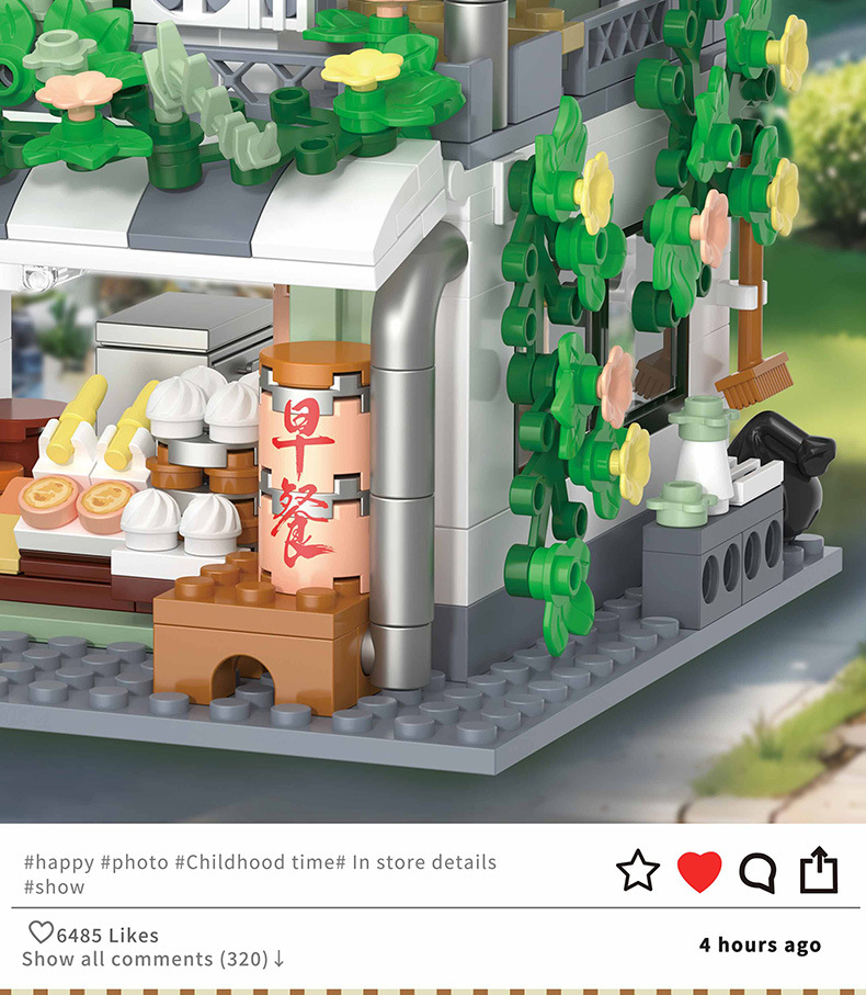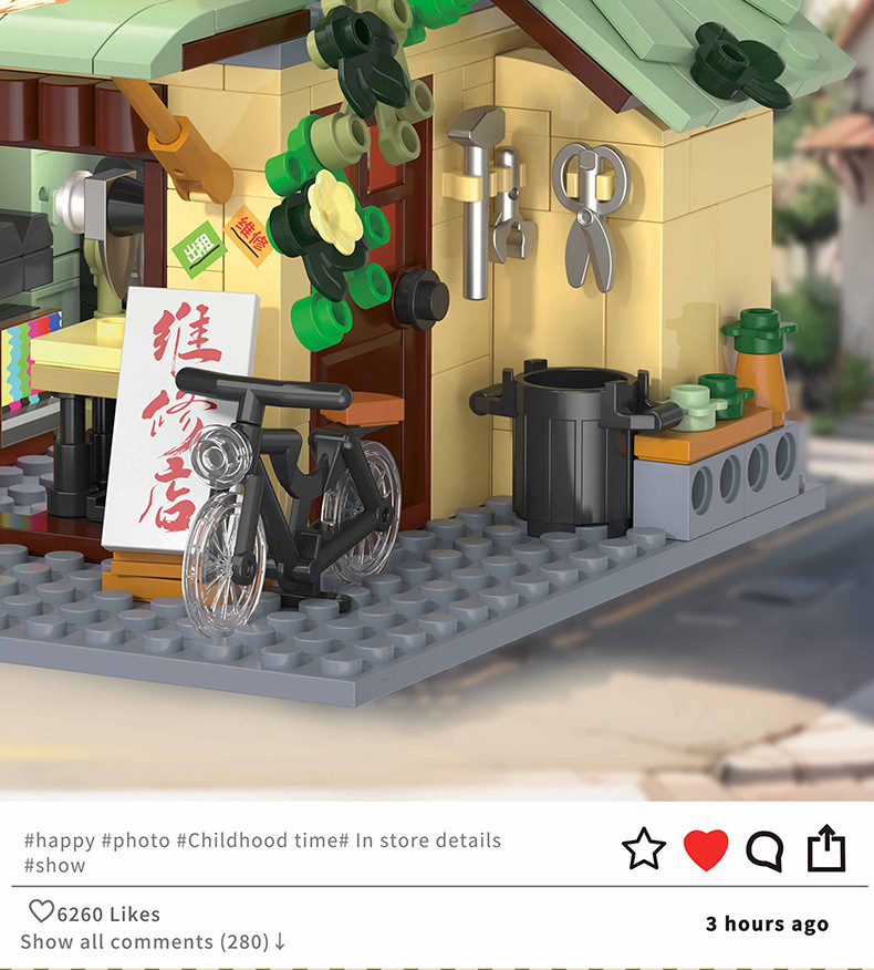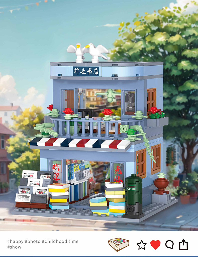 Zhegao 612037-612040 레트로 스트리트 뷰 추억 빌딩 퍼즐 빌딩 블록 어린이 조립 장난감스토어 가기