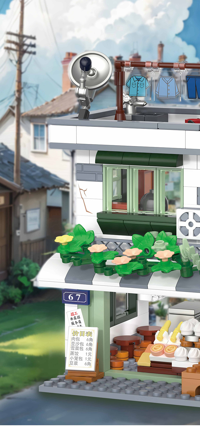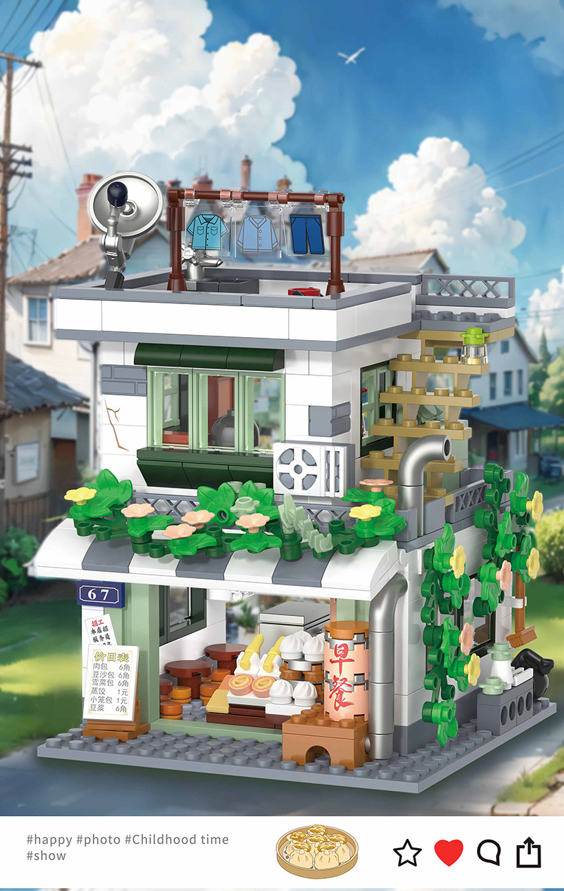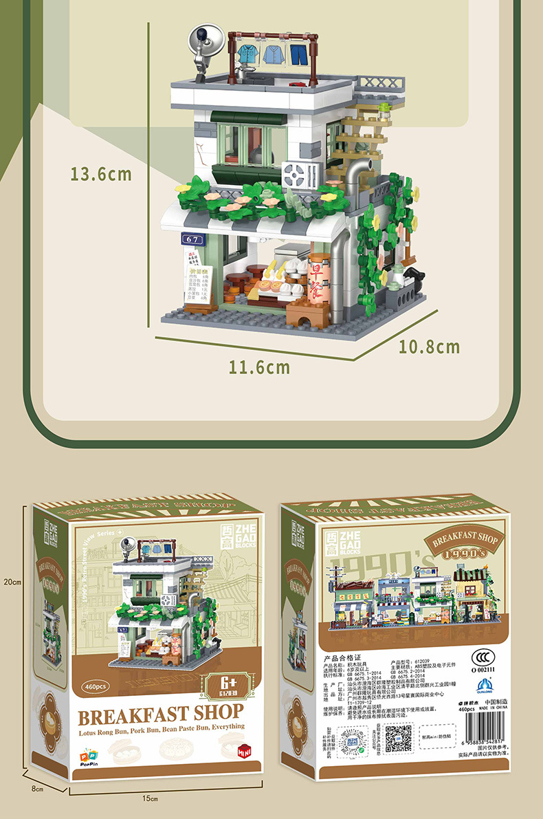 Zhegao 612037-612040 레트로 스트리트 뷰 추억 빌딩 퍼즐 빌딩 블록 어린이 조립 장난감